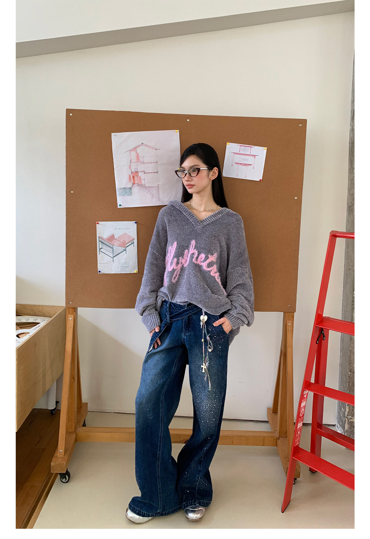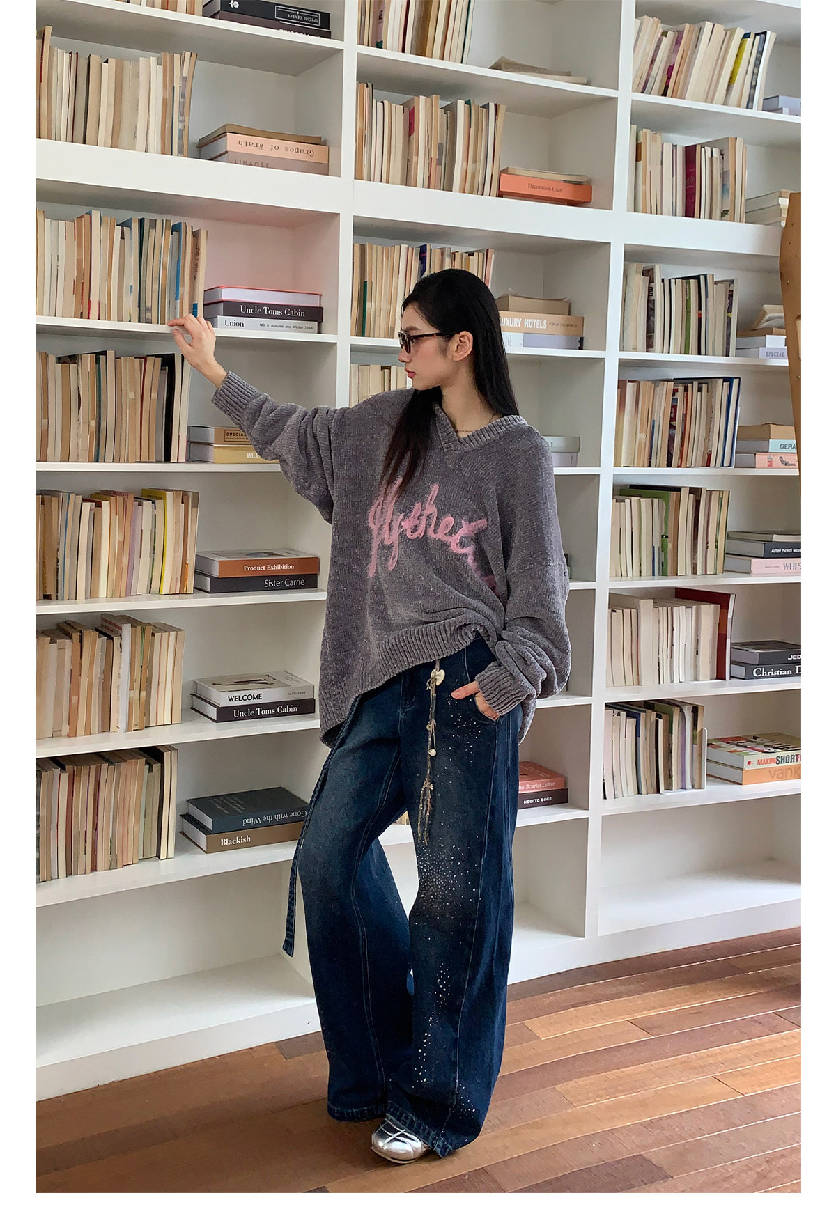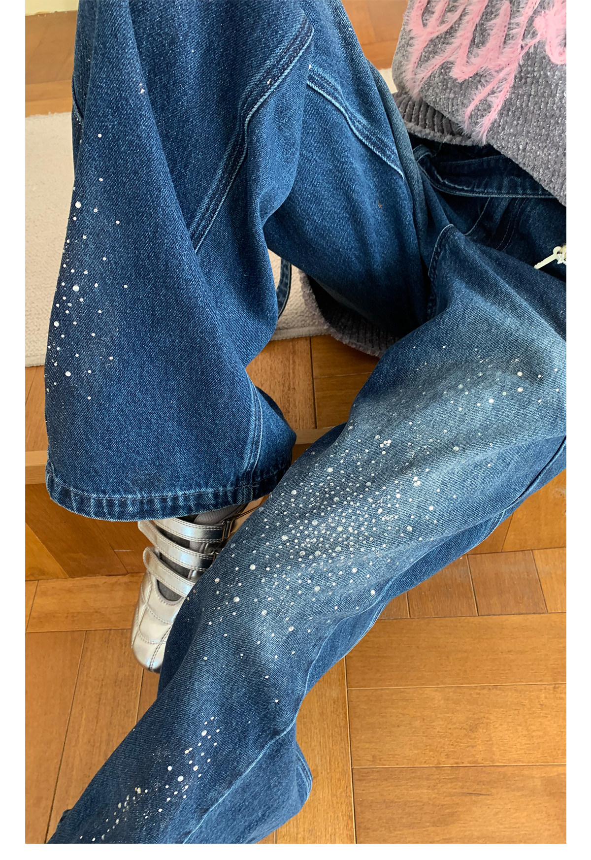 FTT FlyTheTruth『银河丹宁』 重工烫钻牛仔裤女秋季设计感阔腿裤