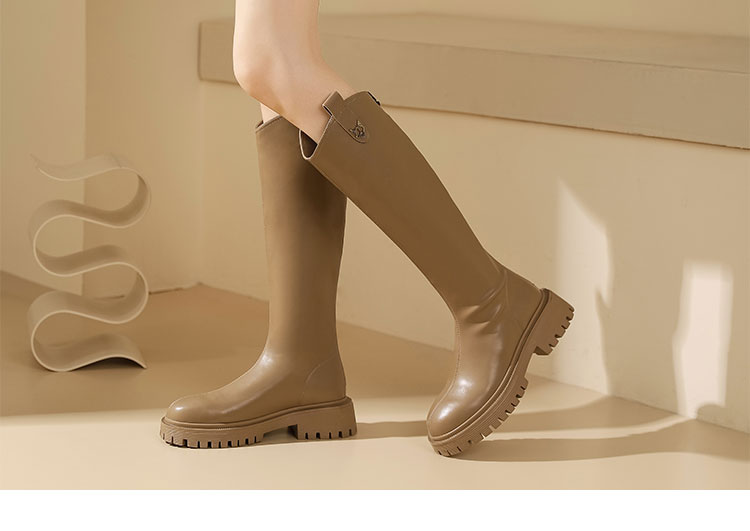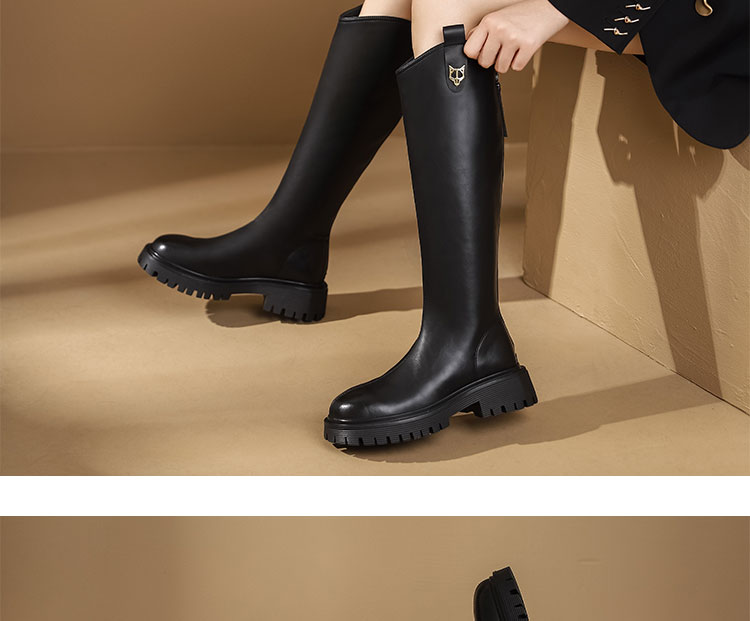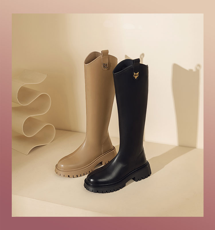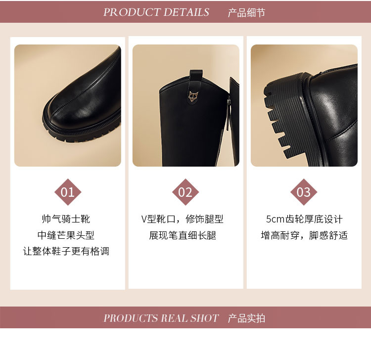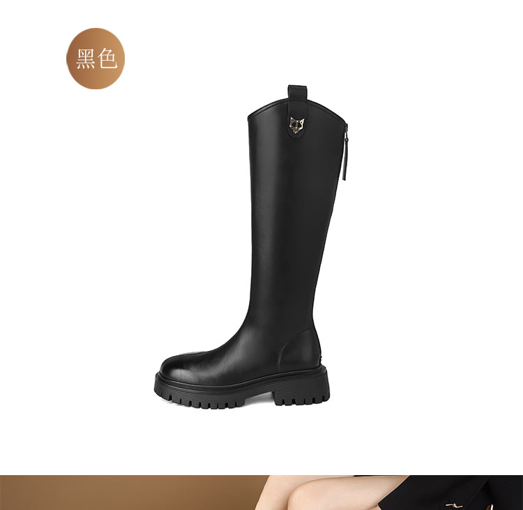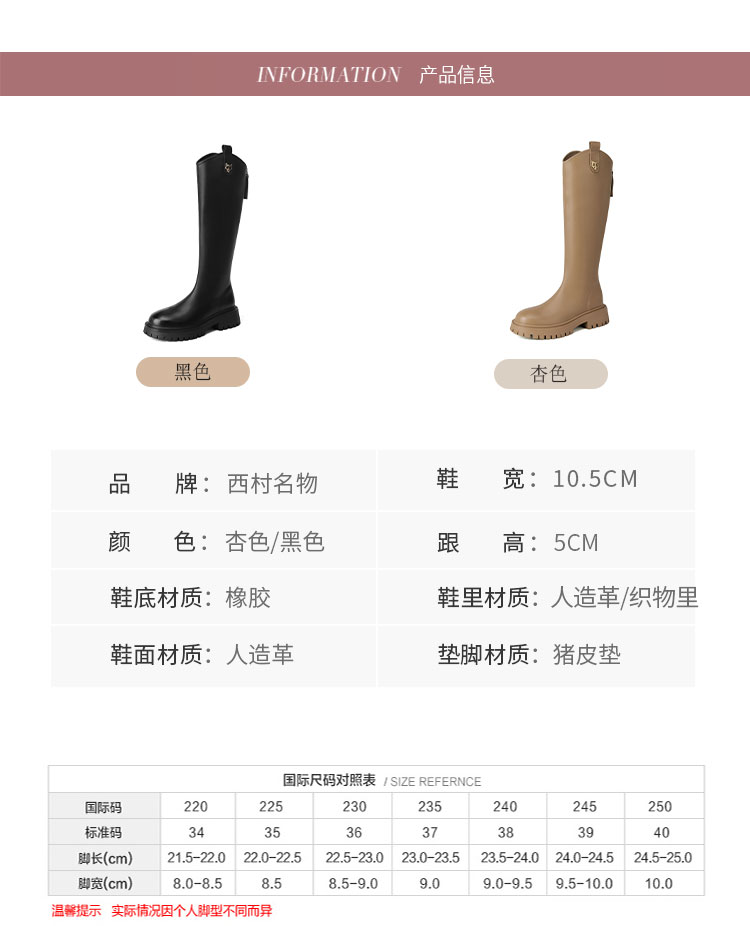 西村名物2023年秋冬新款长靴高筒靴直筒厚底增高骑士靴女秋冬【修饰腿型T23DQ45801