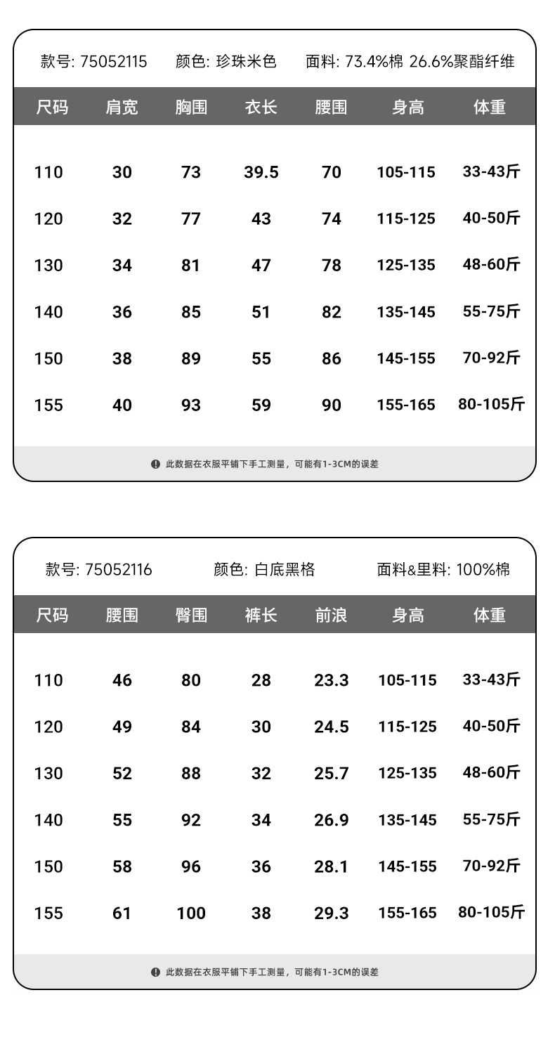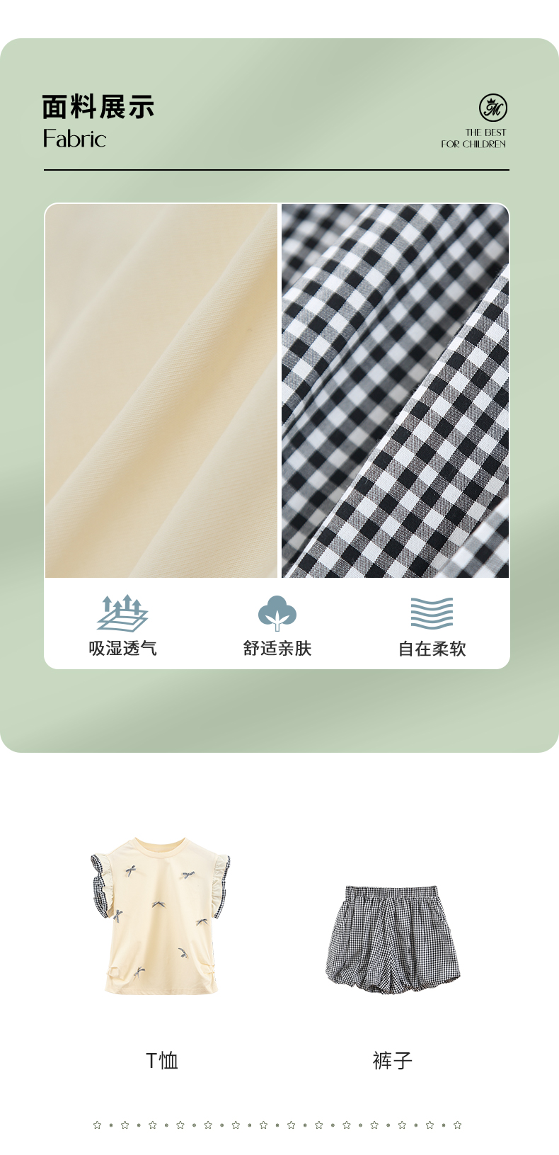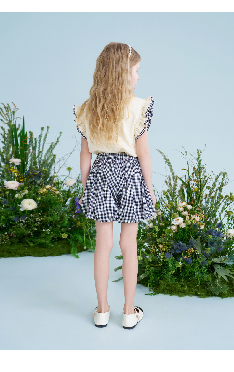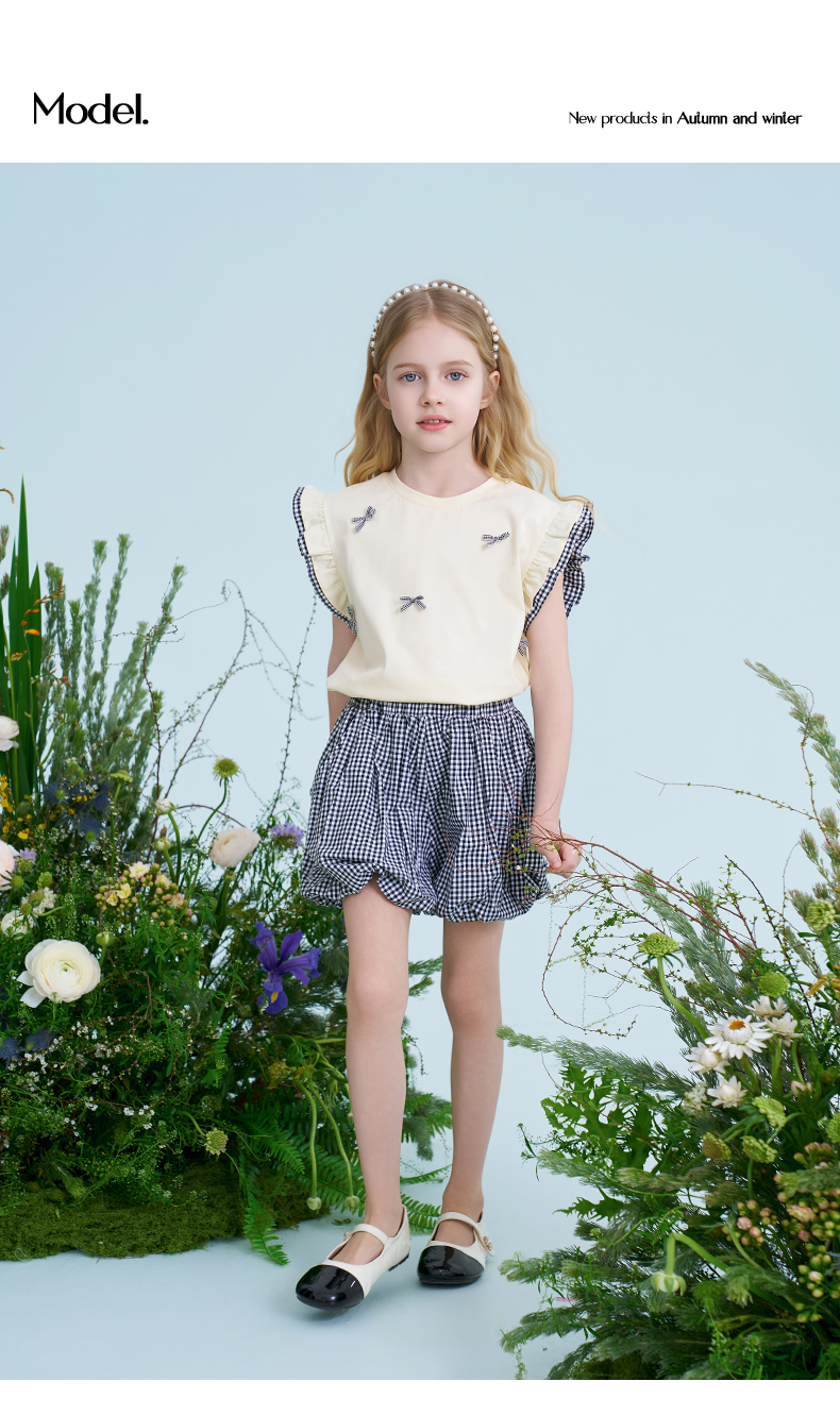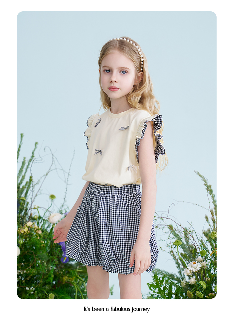 mettekids儿童T恤2025夏季新款女童洋气上衣格子短裤中大童套装