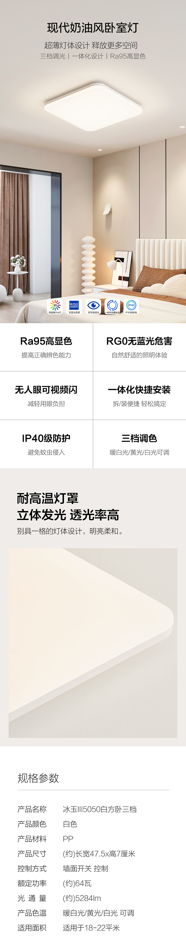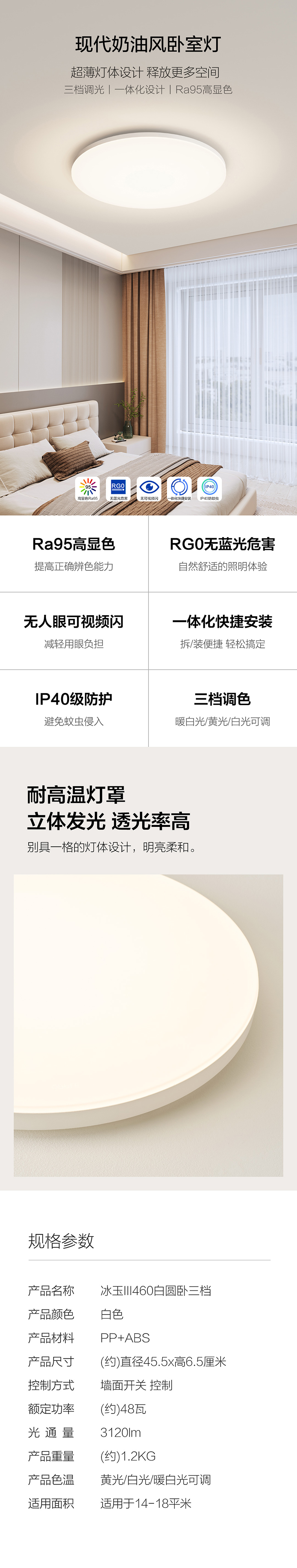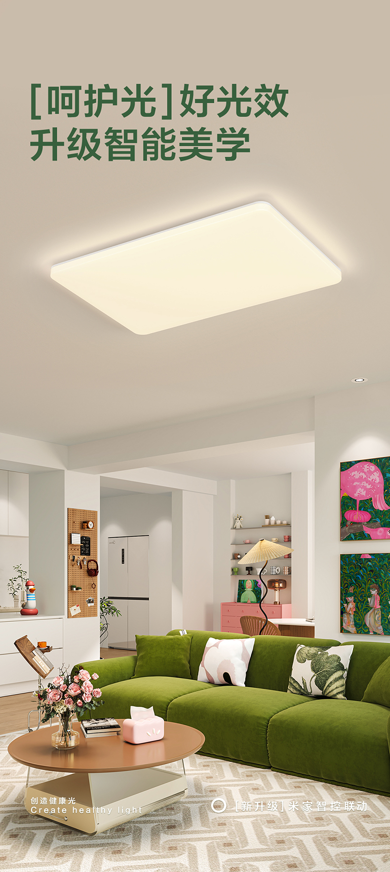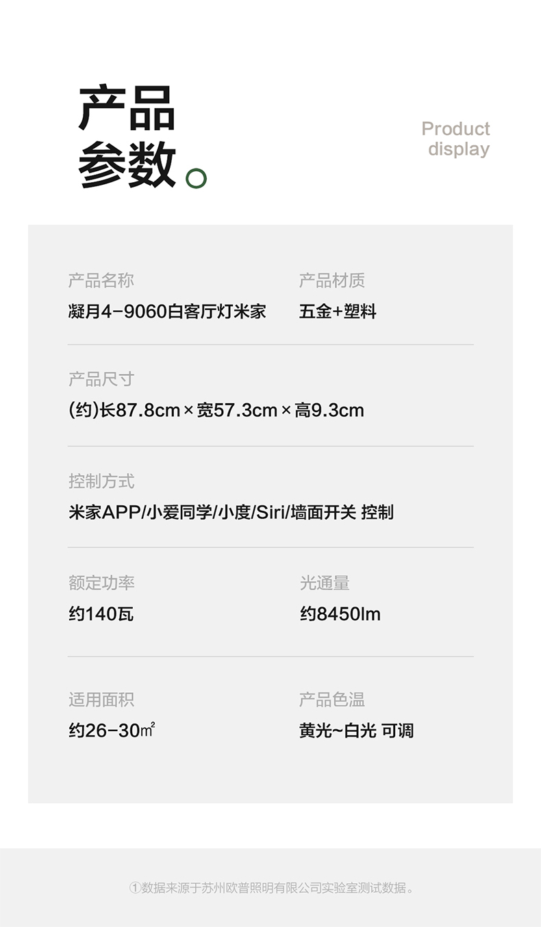 欧普(OPPLE)吸顶灯客厅超薄led全光谱现代简约卧室灯具凝月小白灯智控