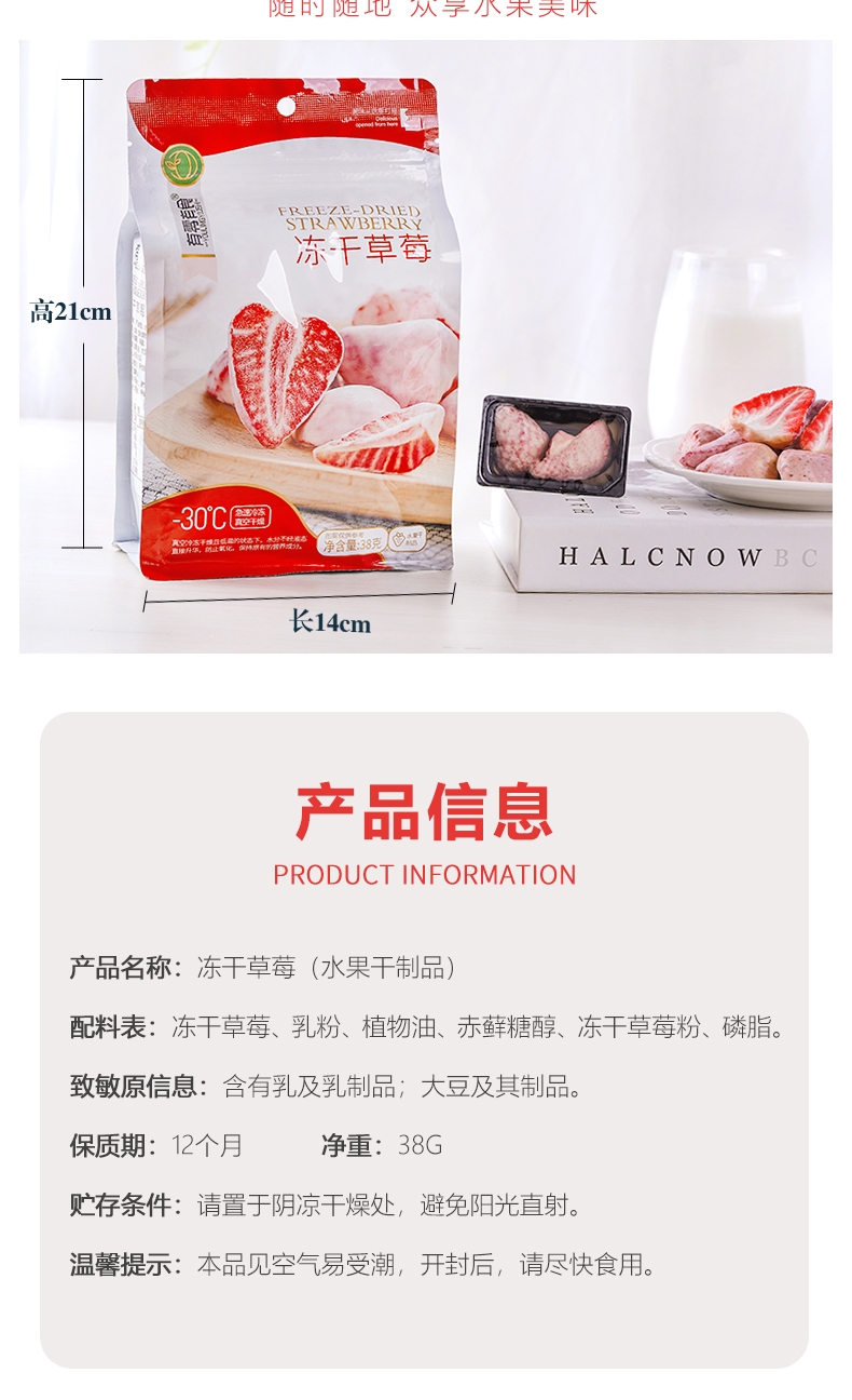 【分销】有零有食冻干草莓38g*3袋 草莓脆干整颗 酸甜酥脆