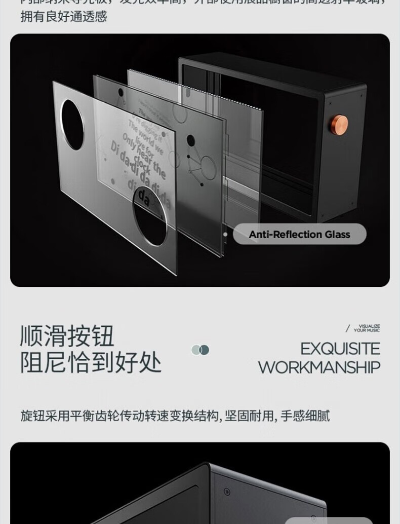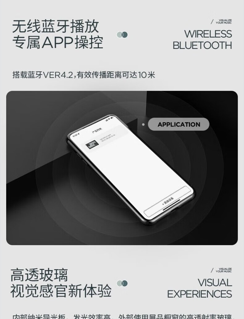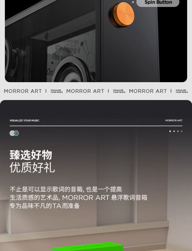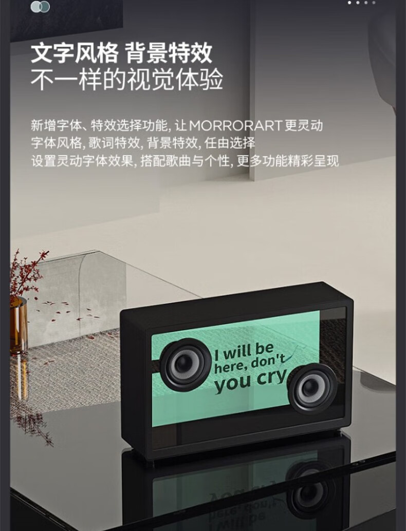 MORRORART 悬浮歌词透明可视化字幕弹幕透明无线蓝牙音箱重低音桌面音响hifi扩音器 黑色ZB