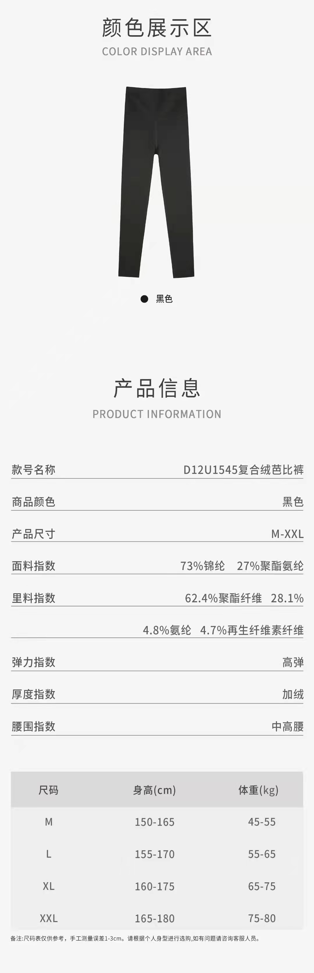 复合绒芭比裤 保暖裤 棉裤 打底裤 提臀收腹 塑性抗寒裤D12U1545