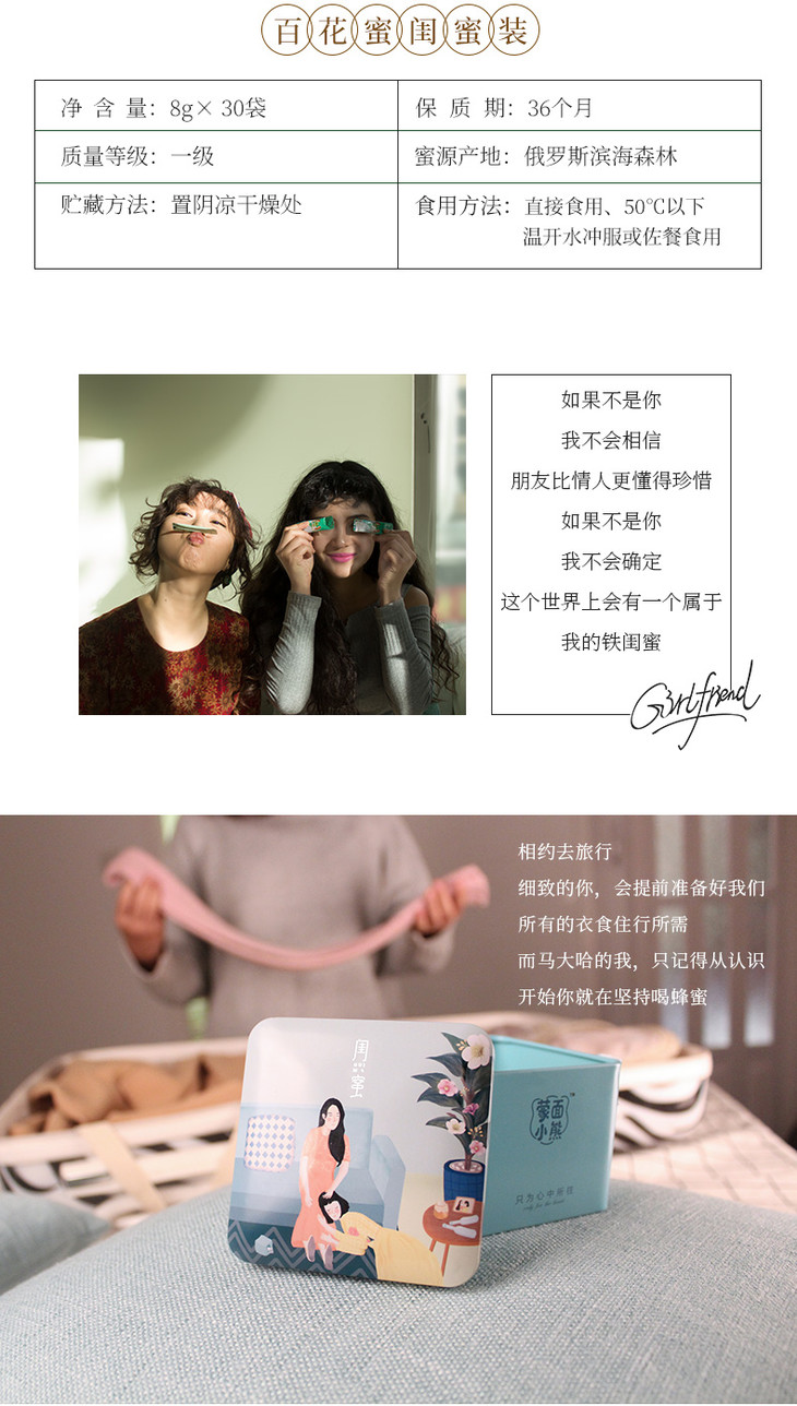 【蒙面小熊】蒙面小熊俄罗斯进口蜜源百花蜜黑蜂蜂蜜小包装便携装蜂蜜30袋