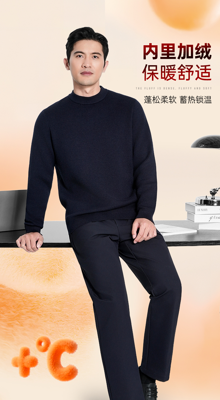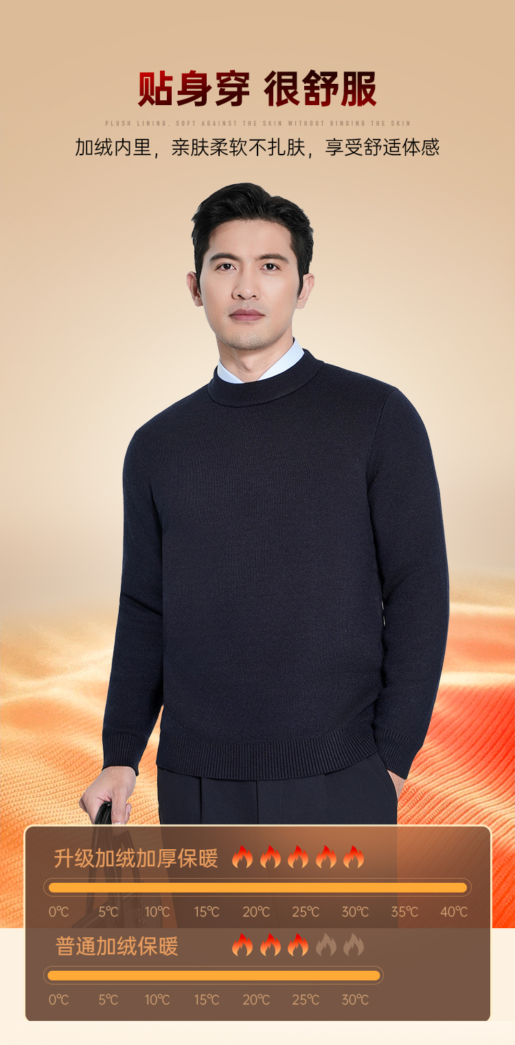 【实付满399送保温杯】【加绒加厚聚暖圆领毛衣】休闲保暖毛衣毛衫通勤打底长袖上衣MZ405