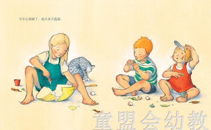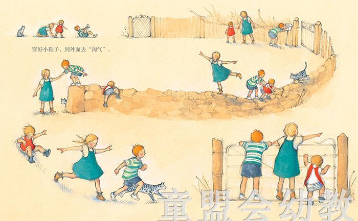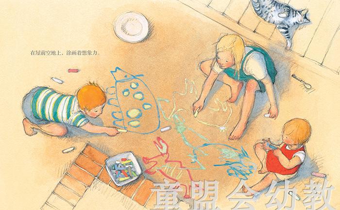 绘本用诗意简洁的语言和轻松自然的笔触描绘和勾勒出了姐姐弟弟妹妹三个人完美的一天。他们吃完早饭,在家里乱涂乱画、和稀泥、摔破瓷碗之后,跑出了家门,爬上墙头,再跳下来,沿着歪脖子树走过,趟过小河,奔跑着放飞风筝,来到大海边挖沙子,在山雨欲来之际,及时地回到家里,趴在窗户上看大雨倾盆而下,画画,逗小猫玩,看书,*后安然地进入梦乡……