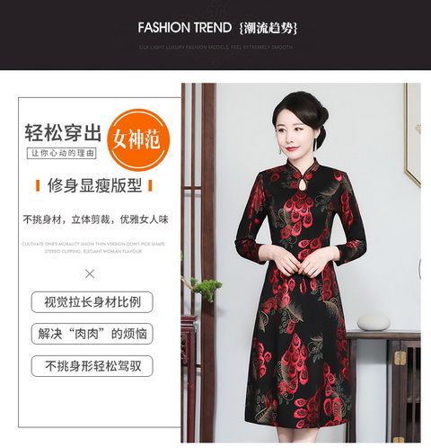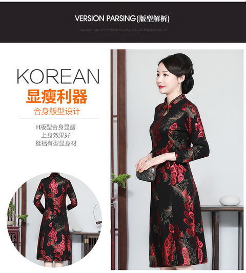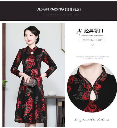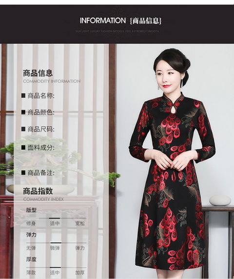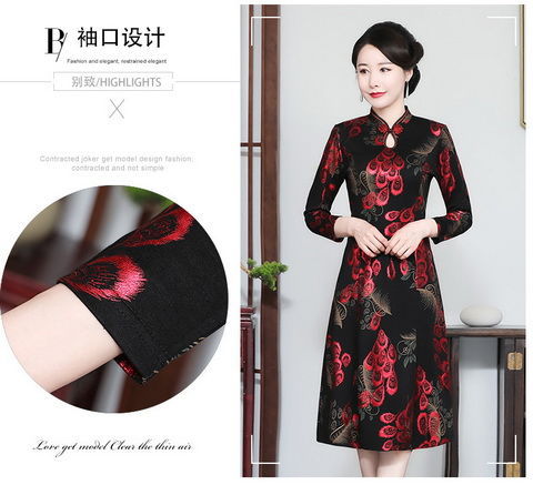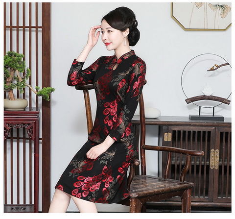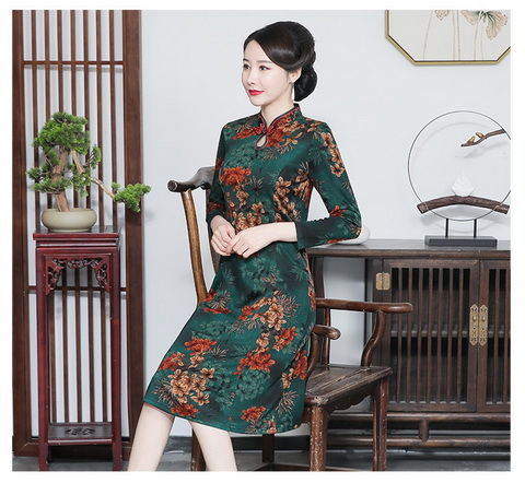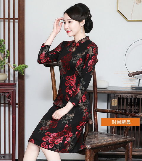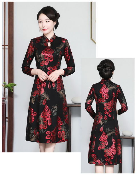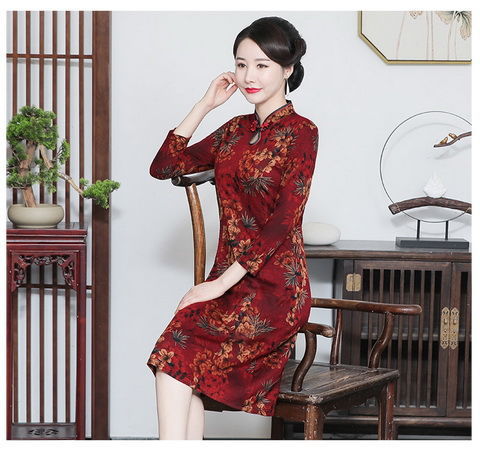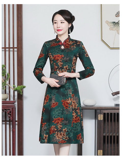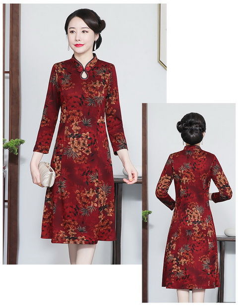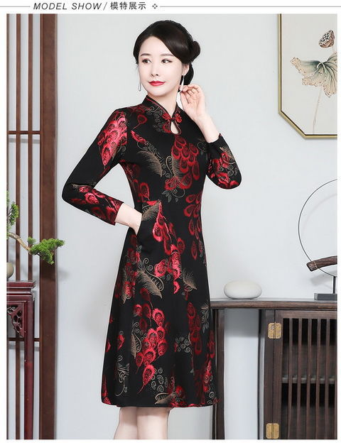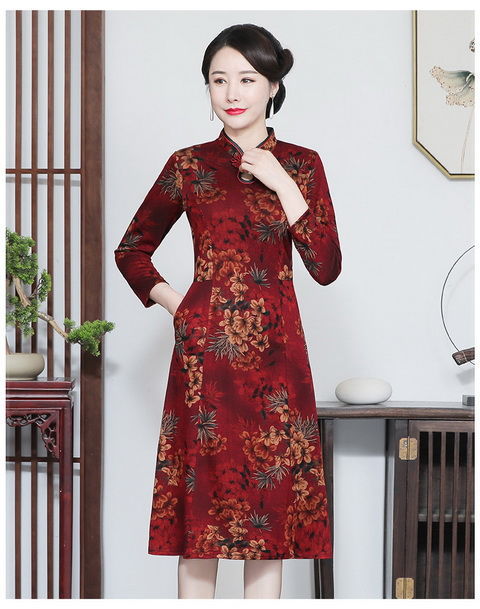 黛唯梵2022春秋冬新款加绒加厚改良旗袍裙复古女装宽松大码连衣裙中长款