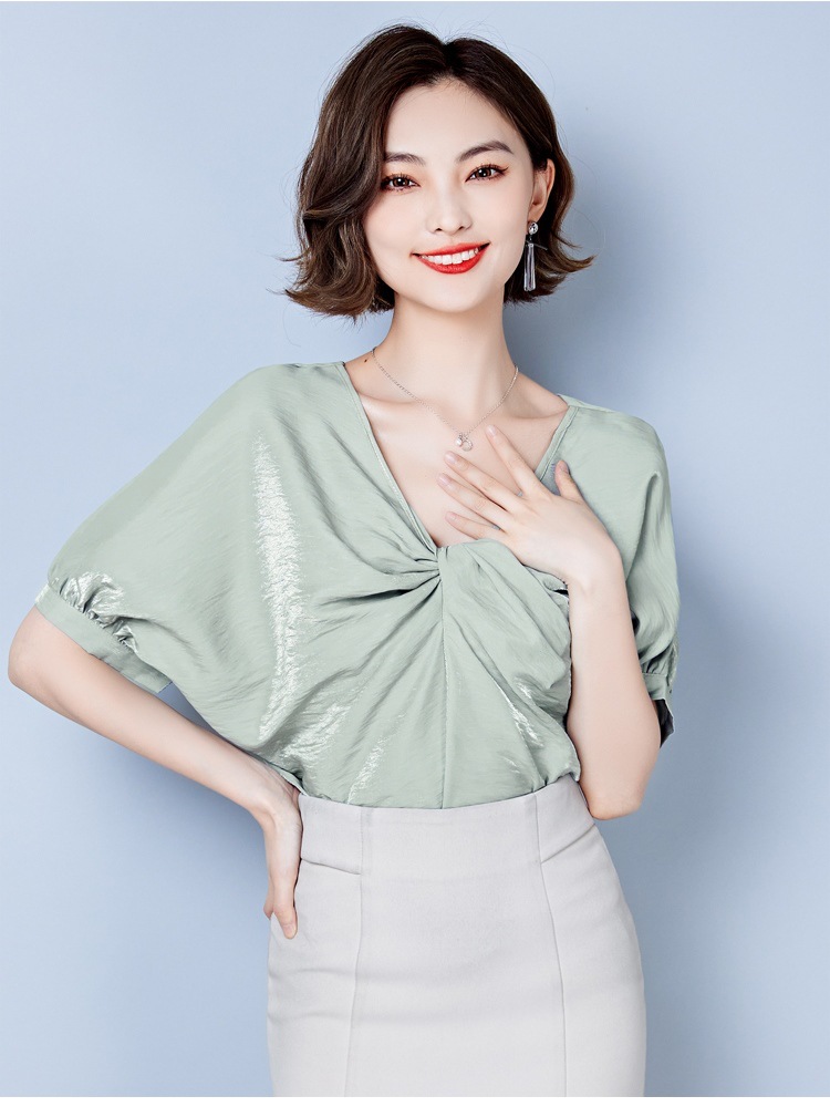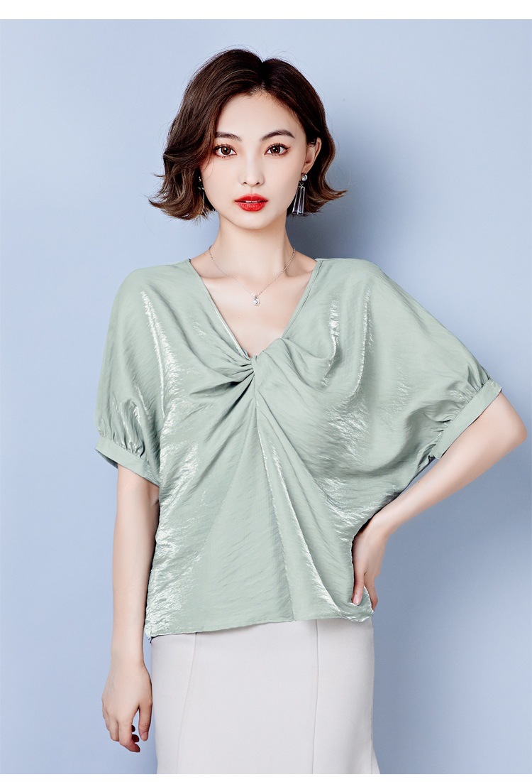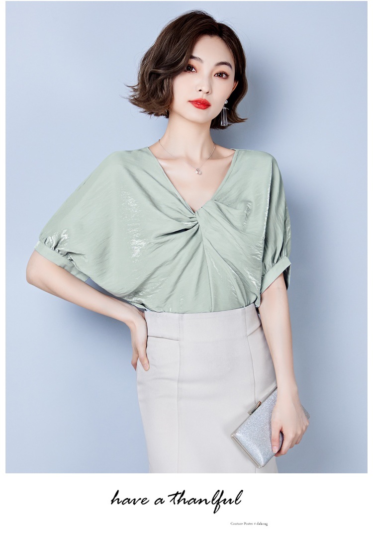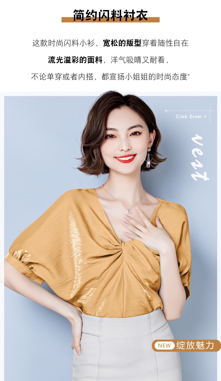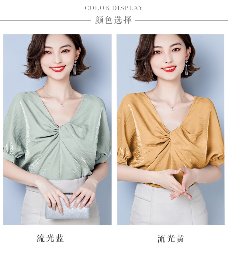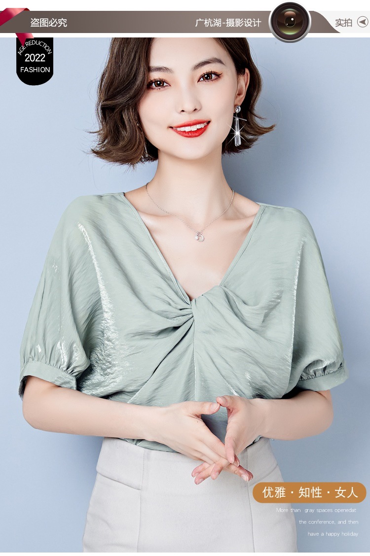 法式小众优雅,宽松两面穿别致高级感时髦洋气V领雪纺衫KQL-2536