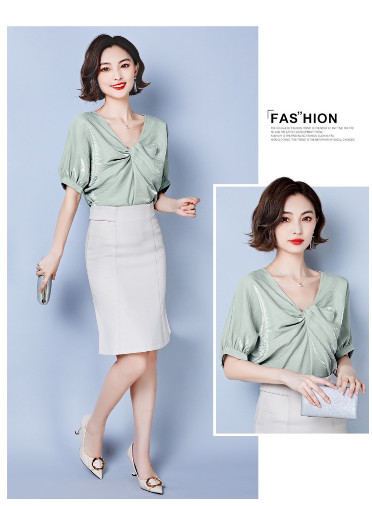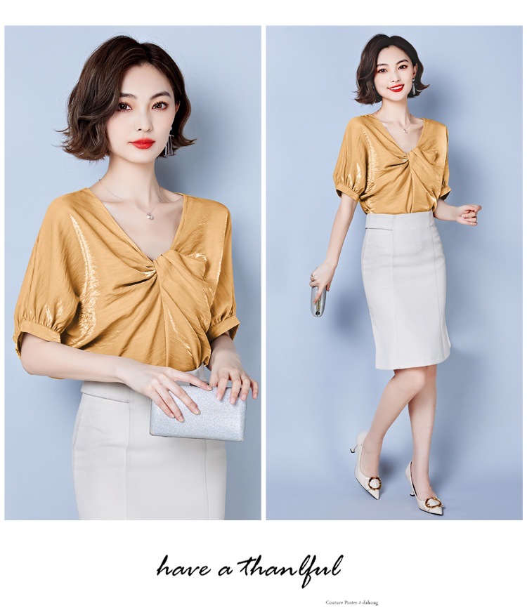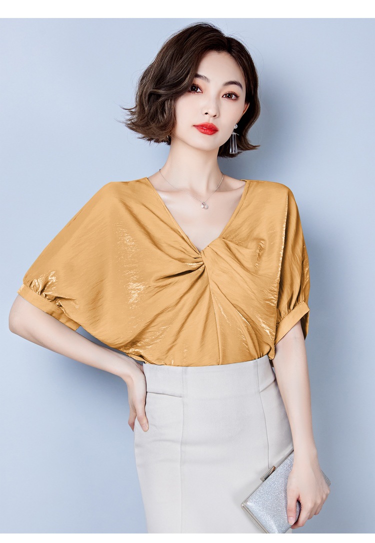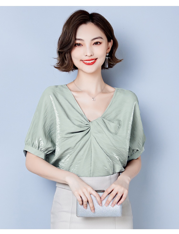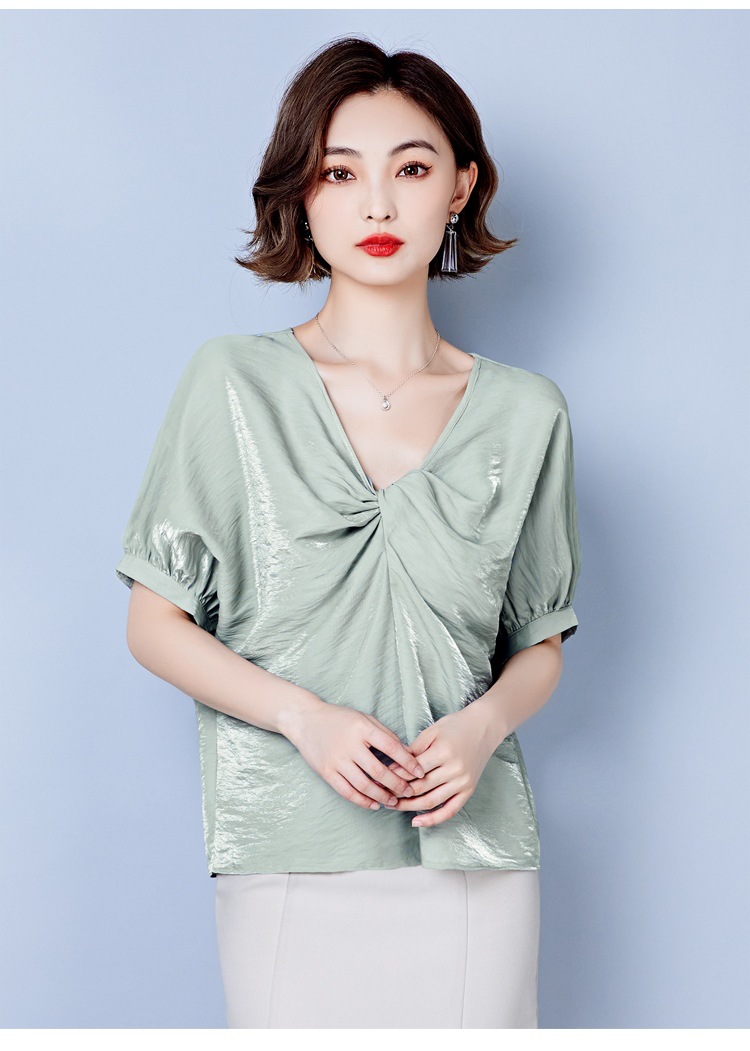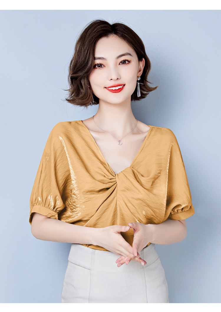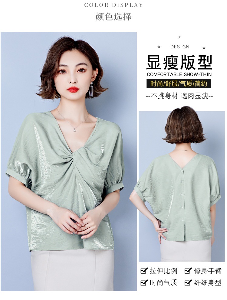 法式小众优雅,宽松两面穿别致高级感时髦洋气V领雪纺衫KQL-2536