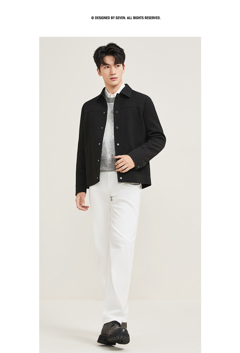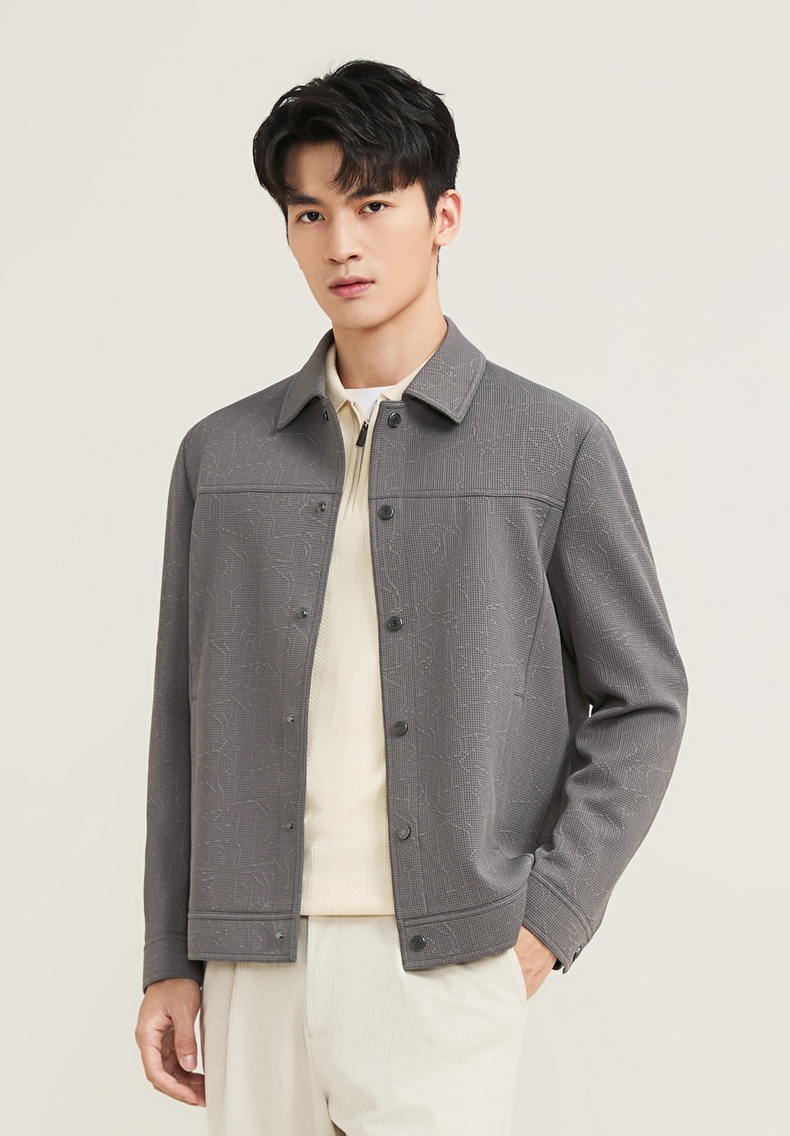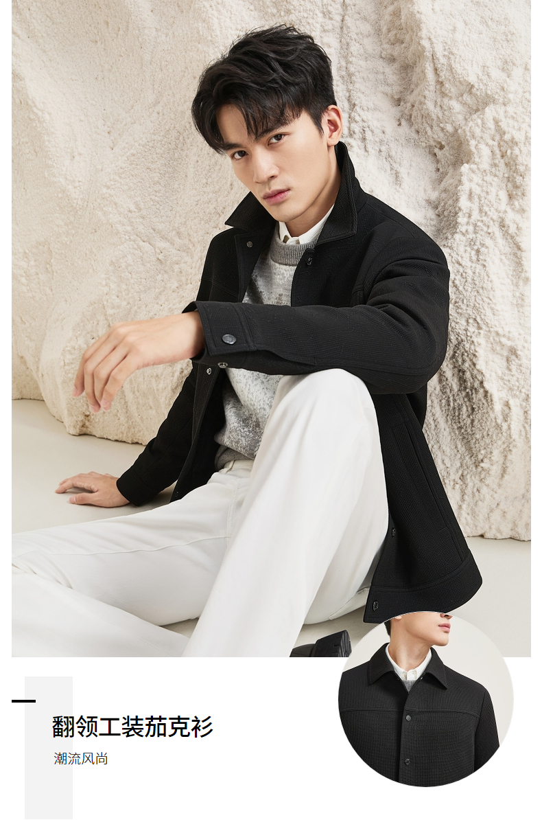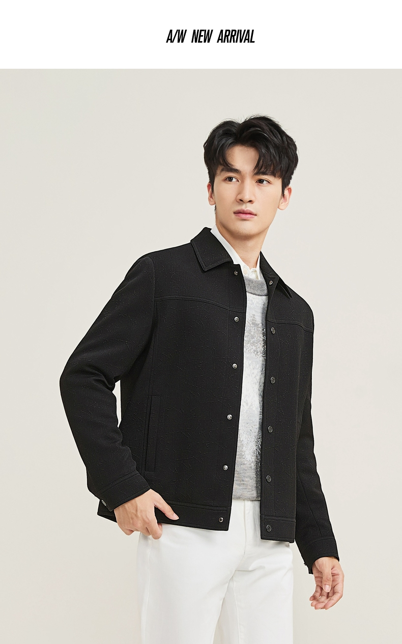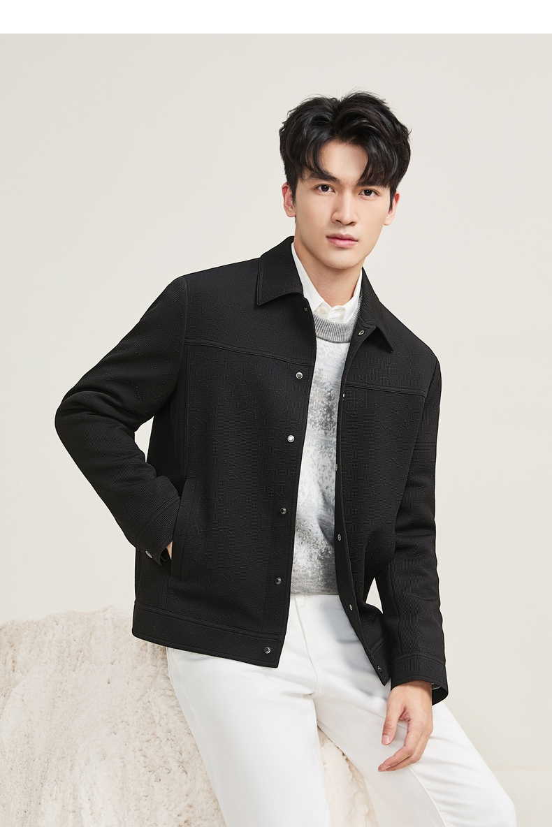 【华夫格提花茄克】柒牌夹克男士秋冬新款商务休闲男装翻领外套129K70710