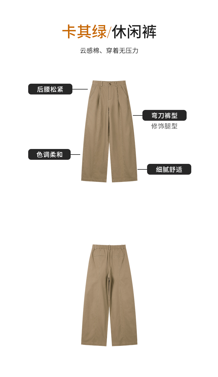 【商场同款】CNT6348 “ 零压裤 ” 轻松舒适 穿出随性腔调 弯刀裤型卡其绿色休闲裤