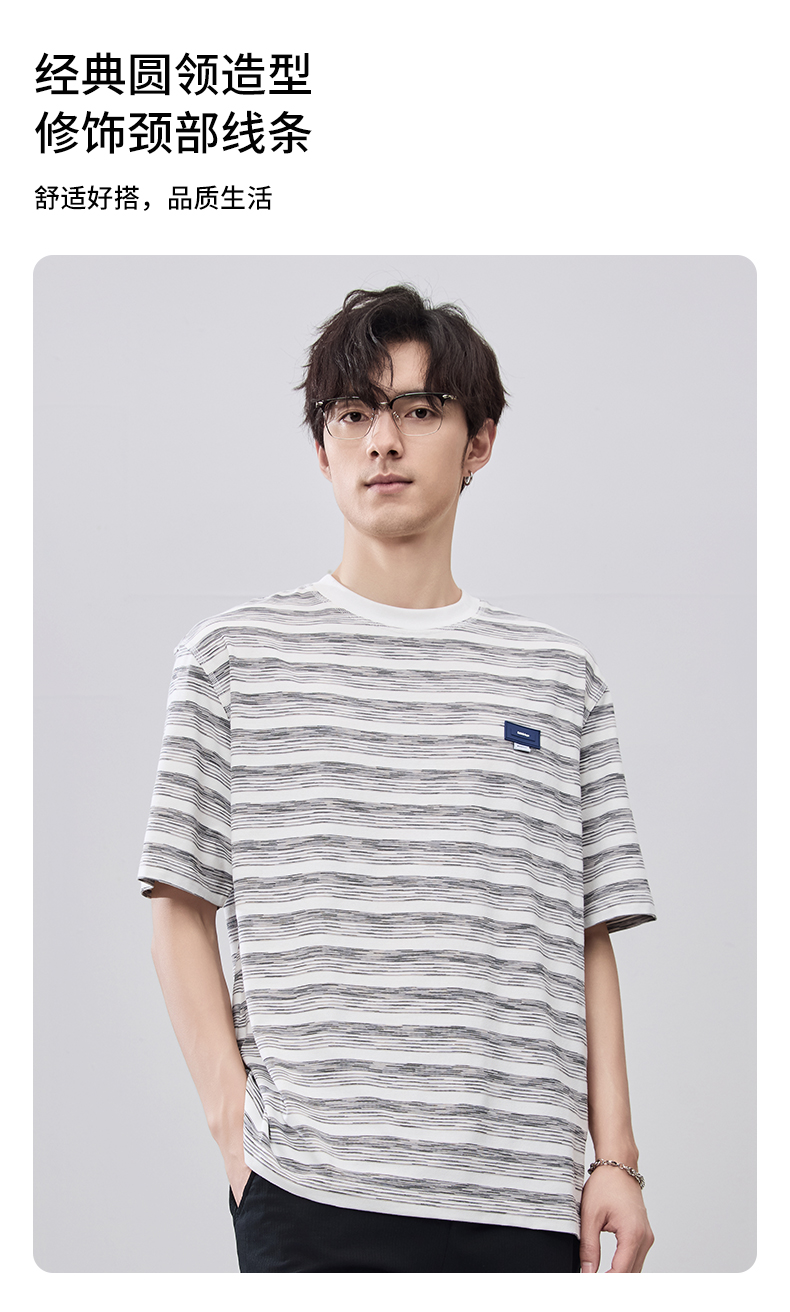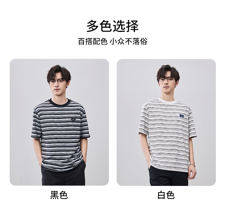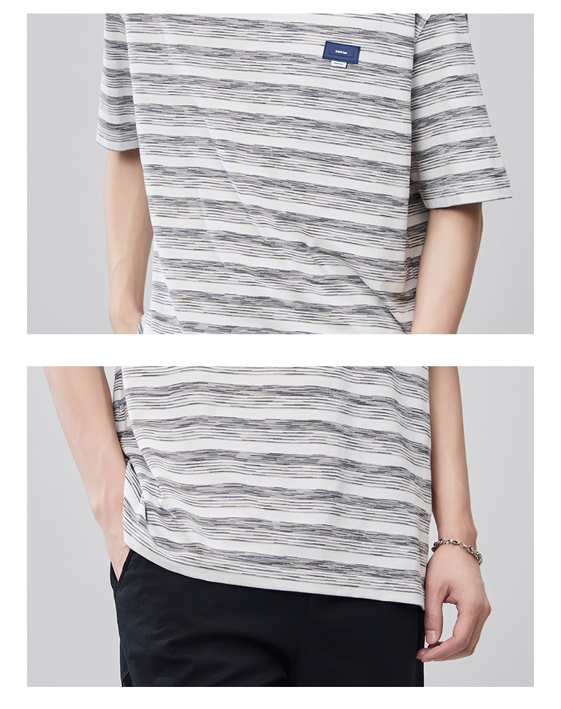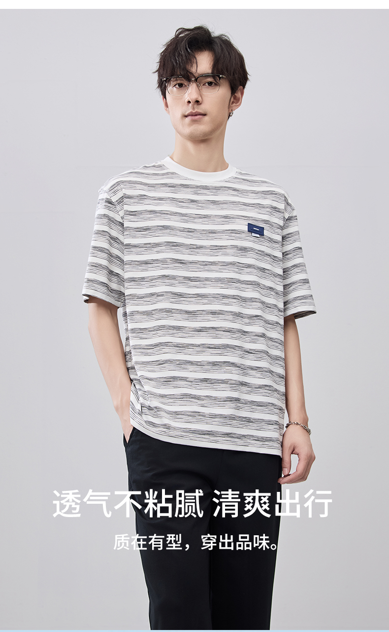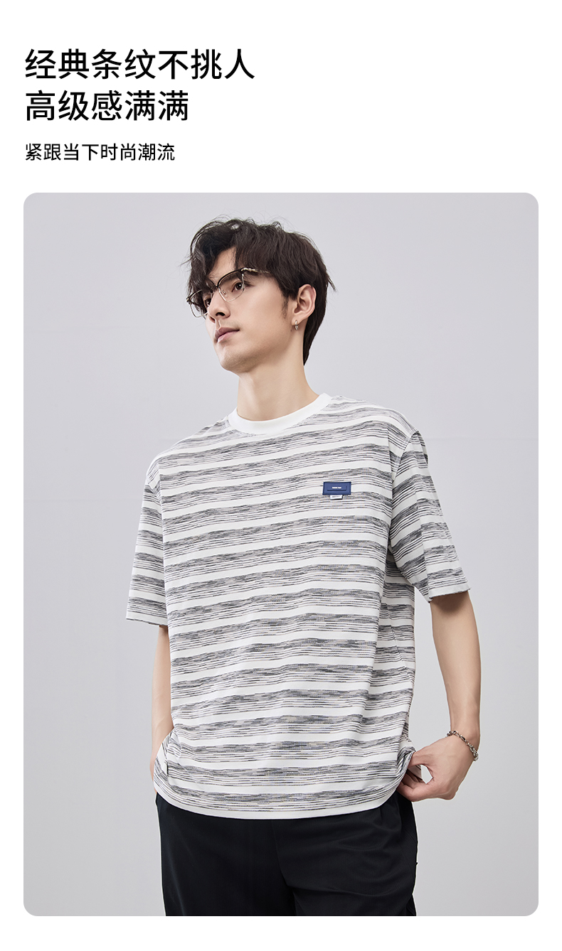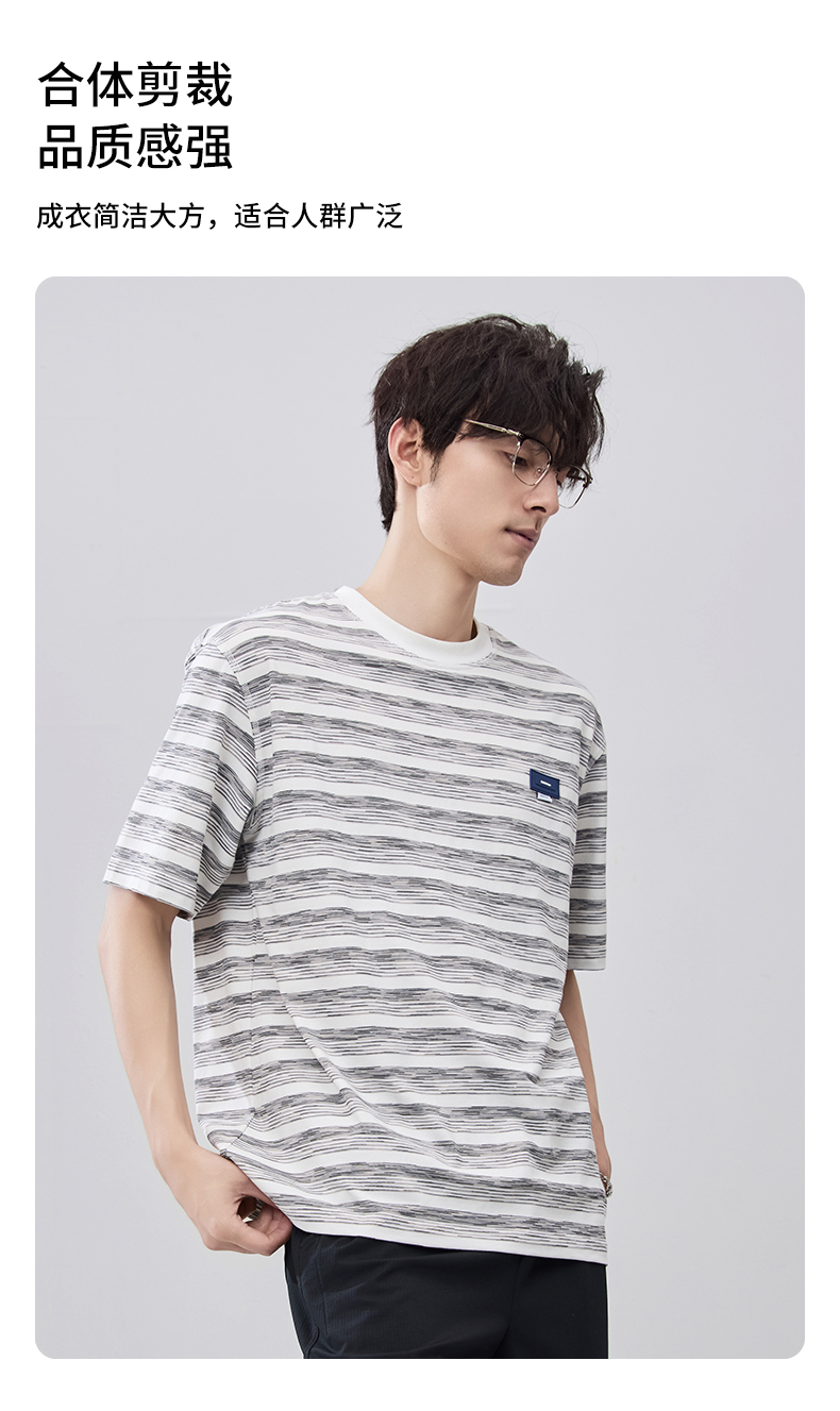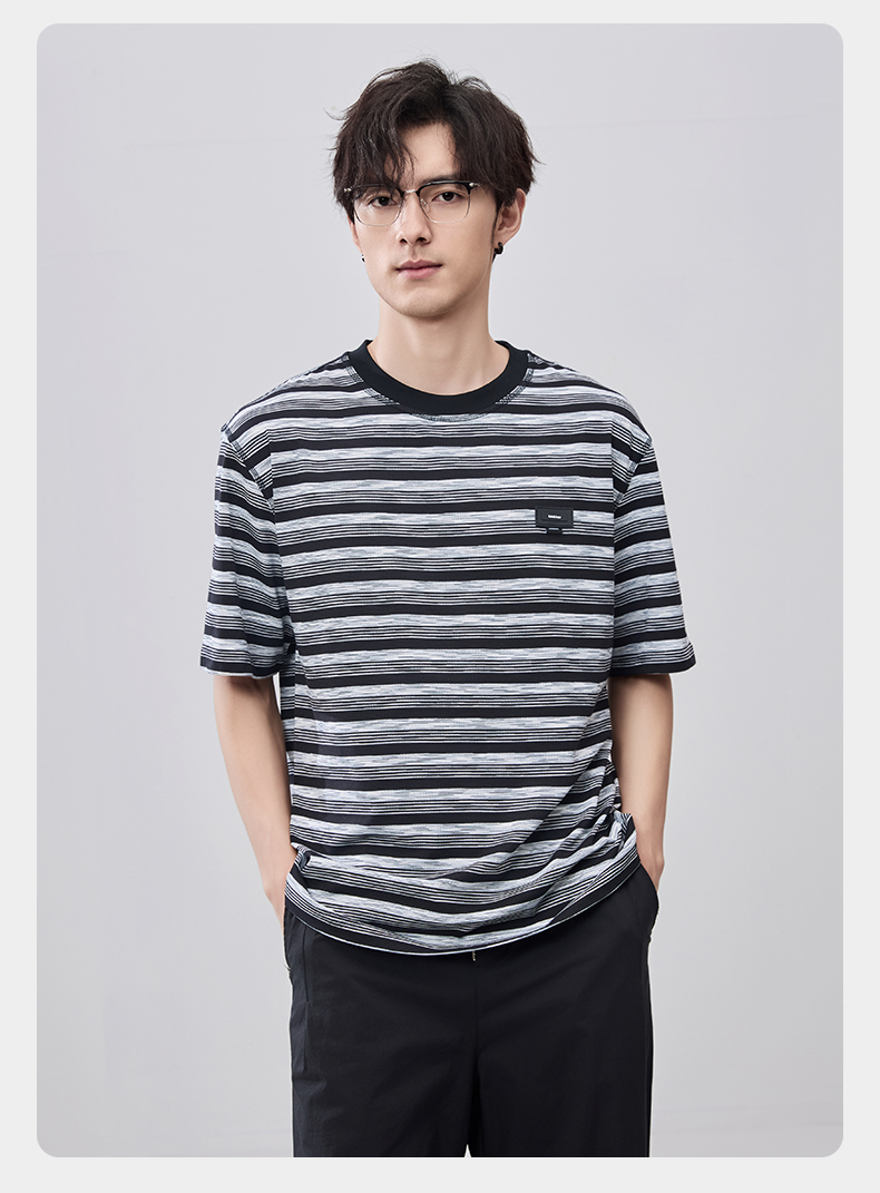 贝纳川微肌理提花条纹针织短袖T恤ECF214011