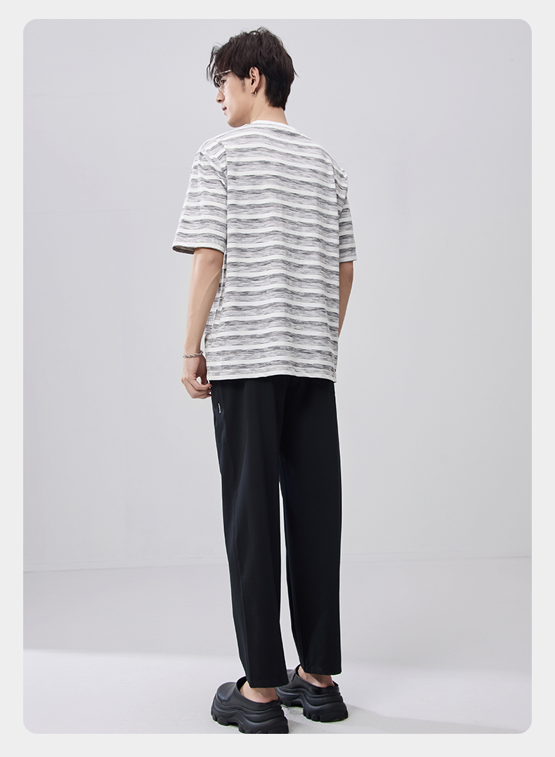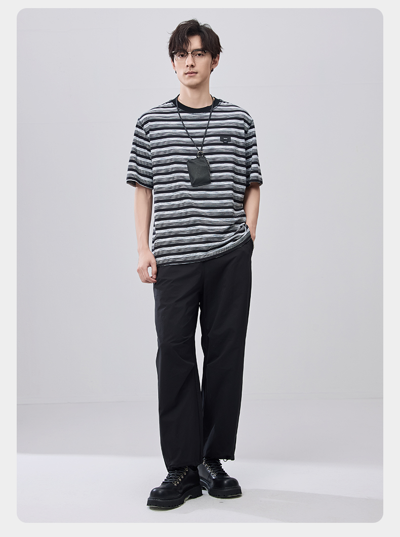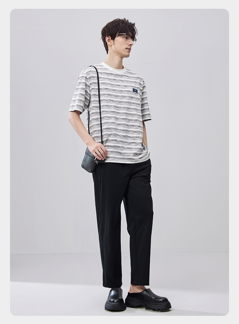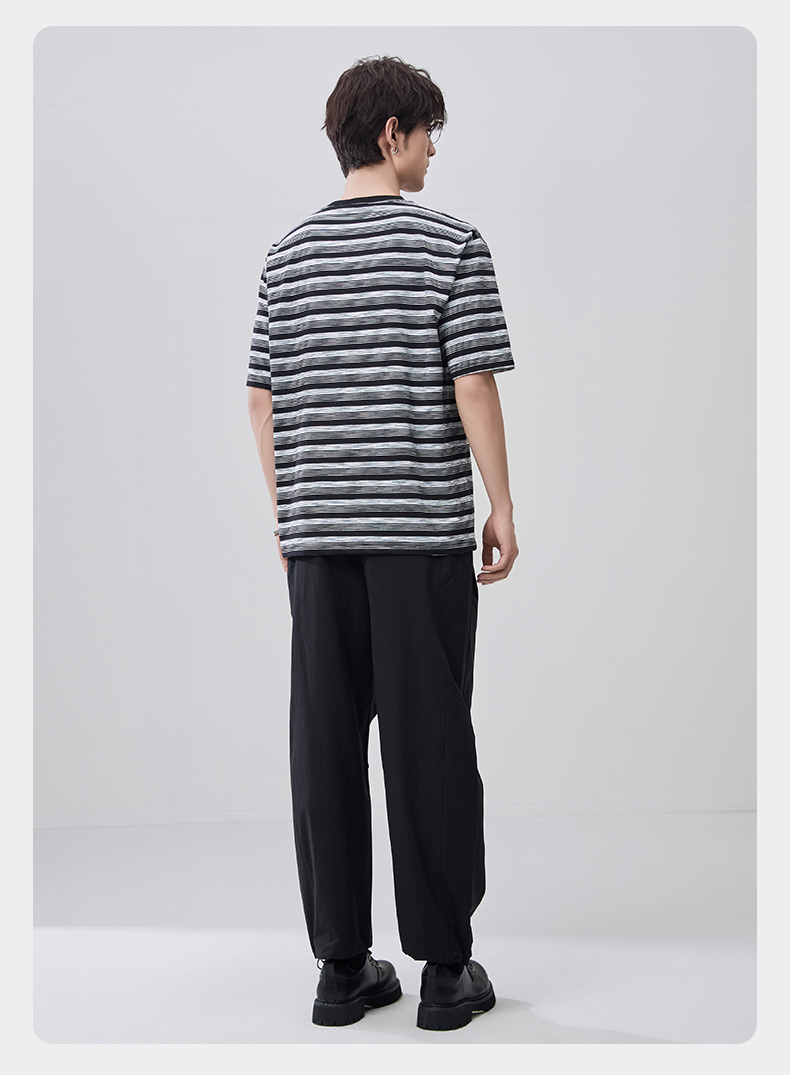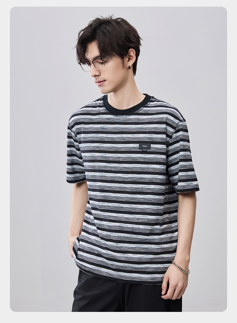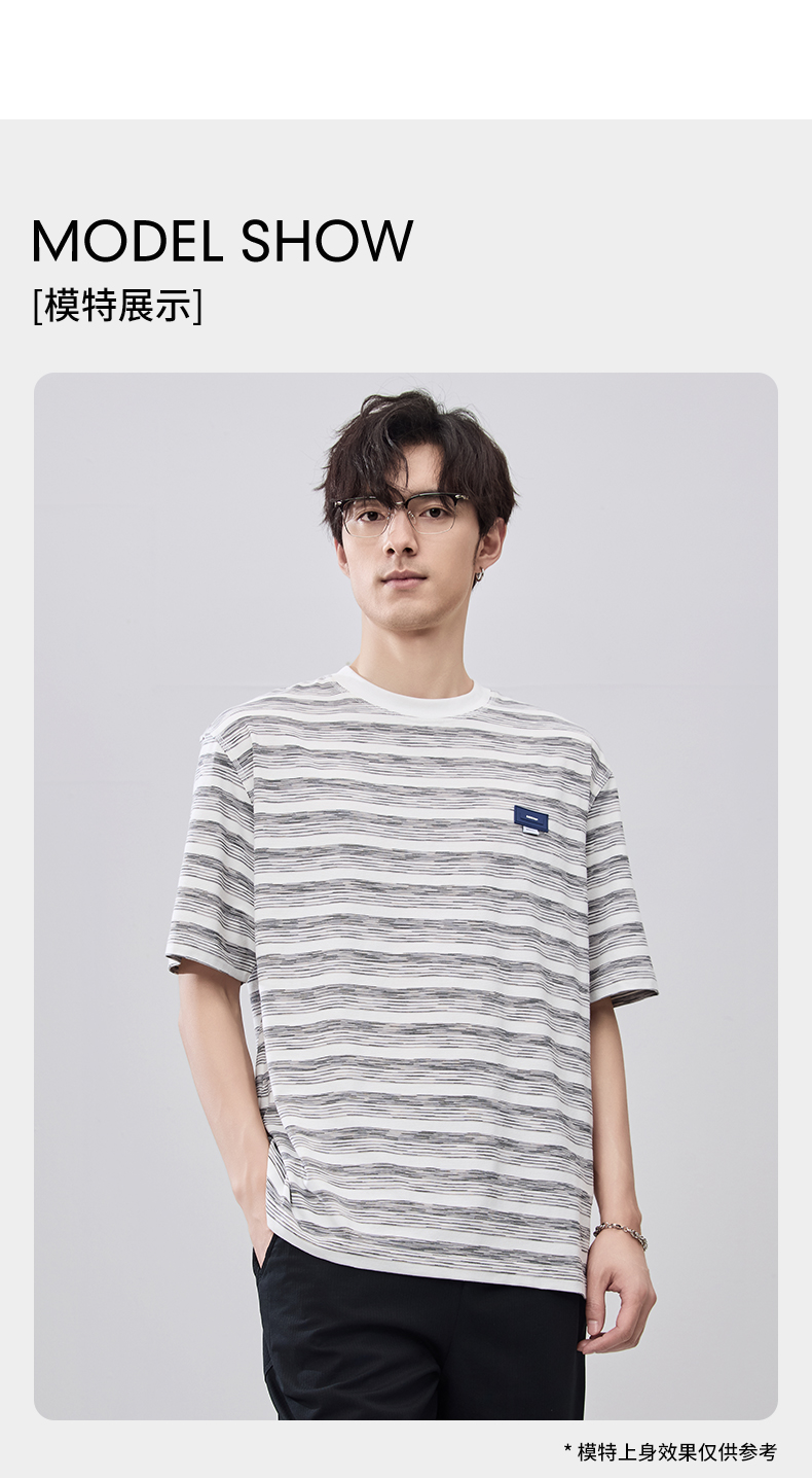 贝纳川微肌理提花条纹针织短袖T恤ECF214011