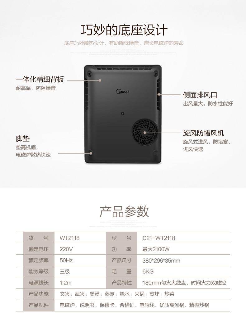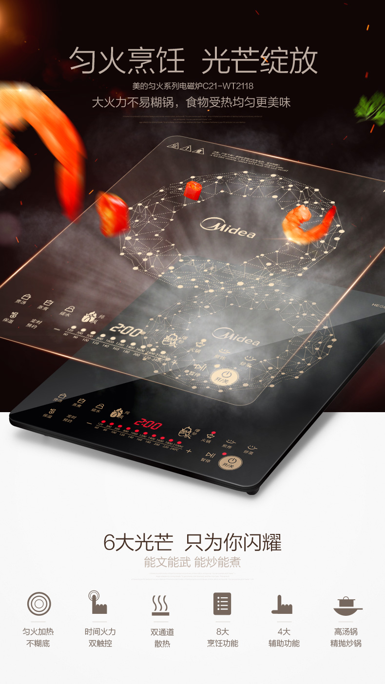 Midea/美的 C21-WT2118酷薄电磁炉家用火锅爆炒电磁灶