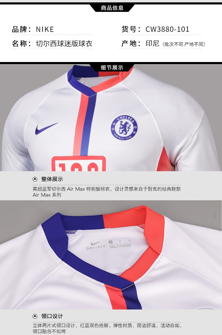 NIKE耐克20-21赛季切尔西AIR MAX杯赛客场球迷版球衣男CW3880-101