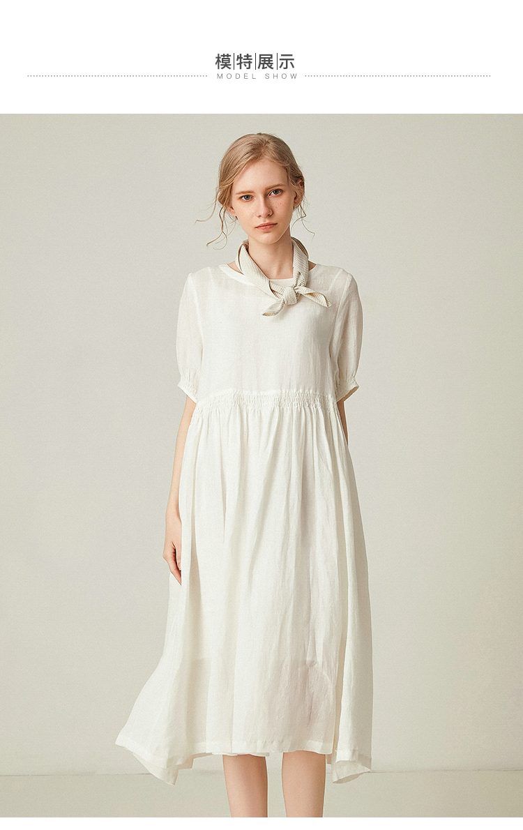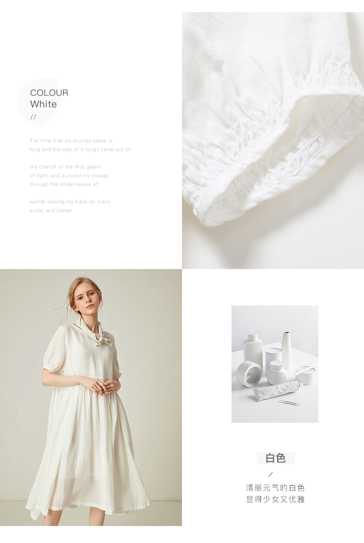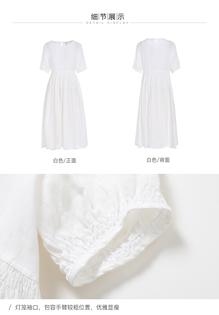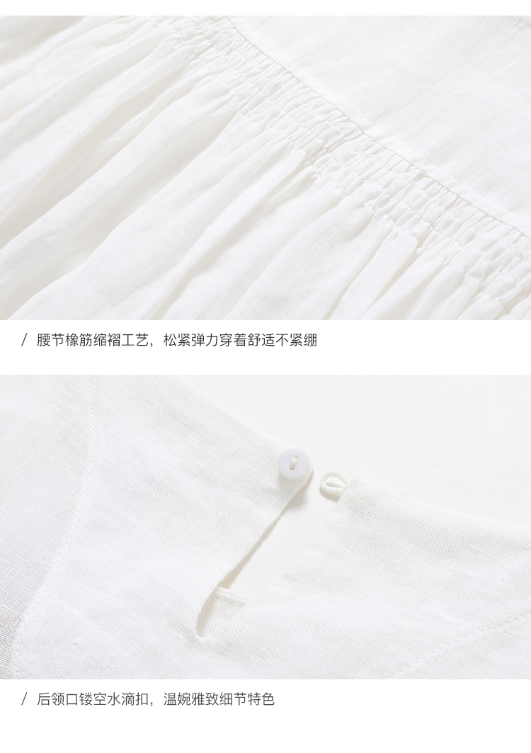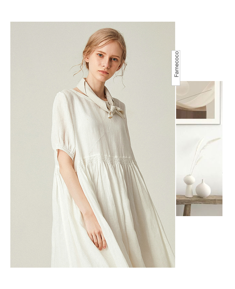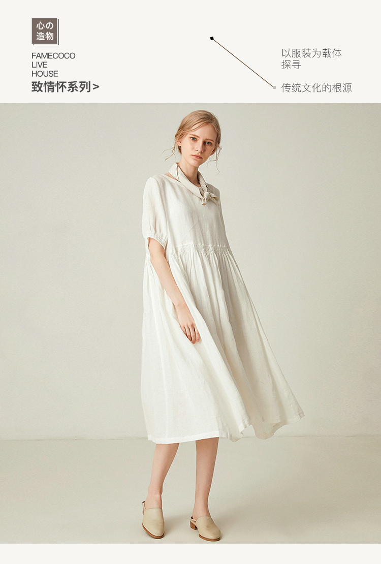 famecoco范可儿棉麻娃娃裙女夏季宽松遮腹高腰亚麻a字裙F193FA015