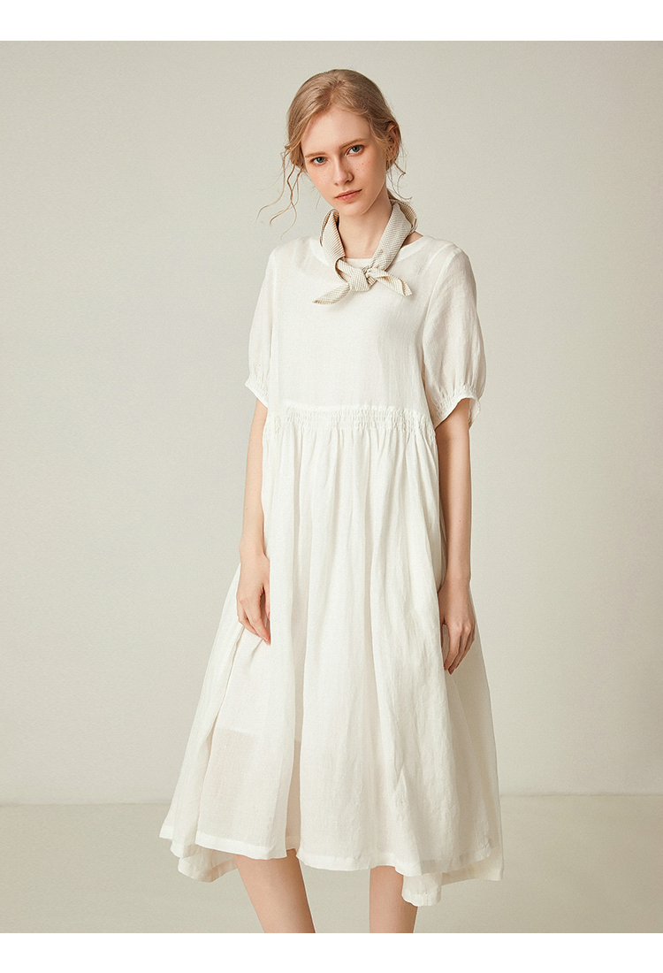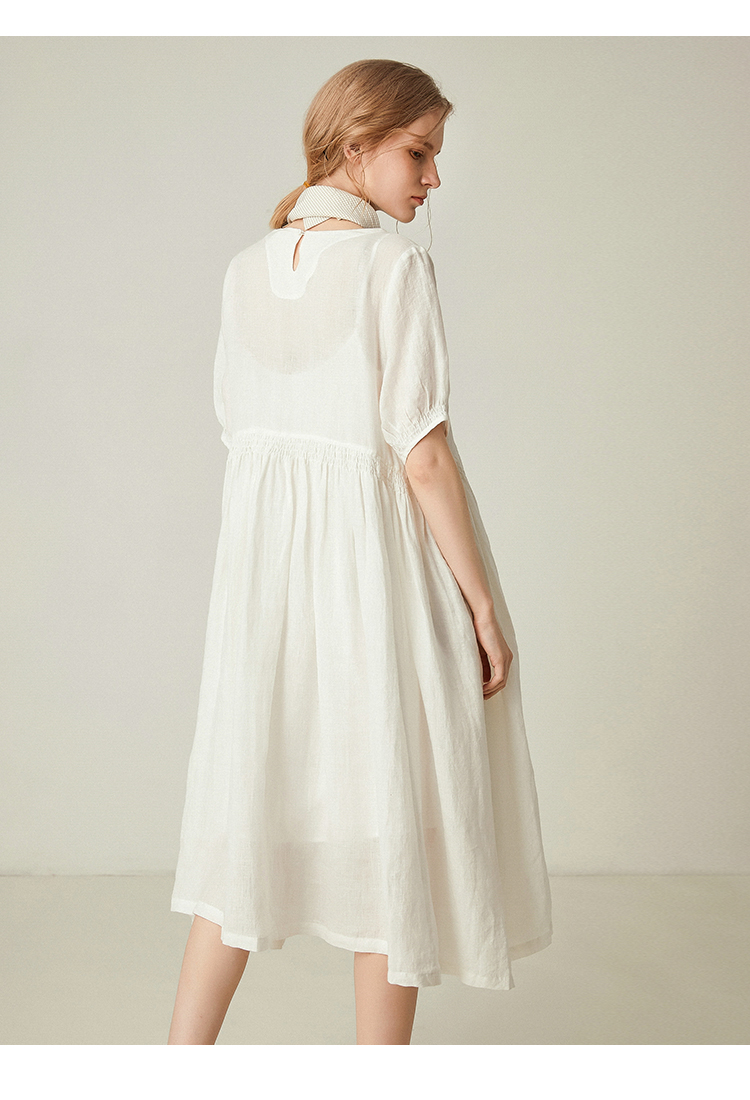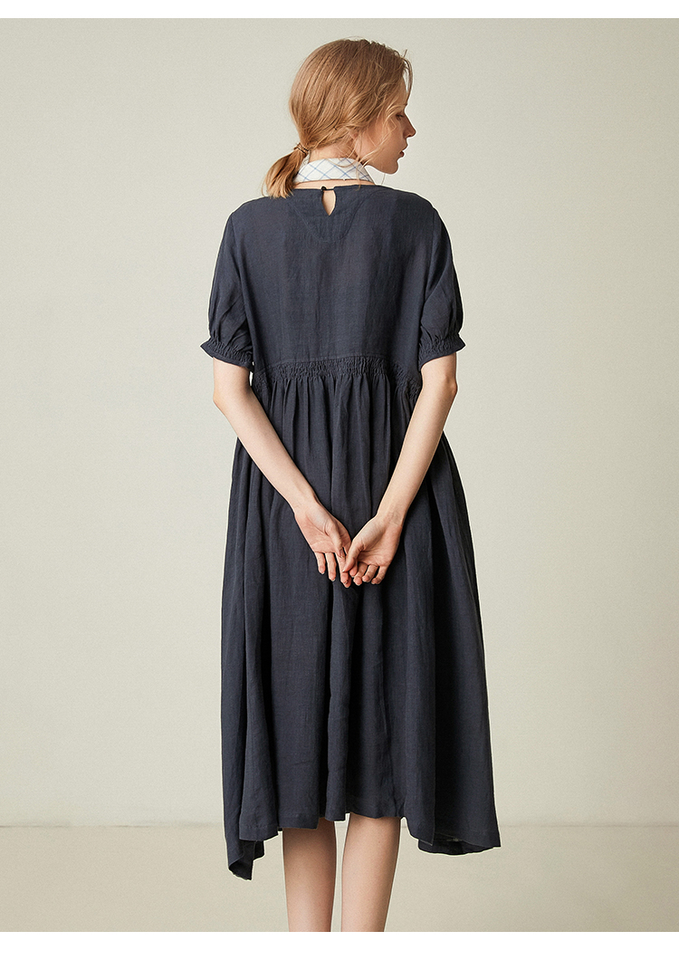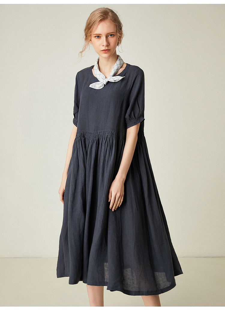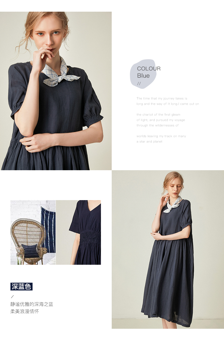 famecoco范可儿棉麻娃娃裙女夏季宽松遮腹高腰亚麻a字裙F193FA015