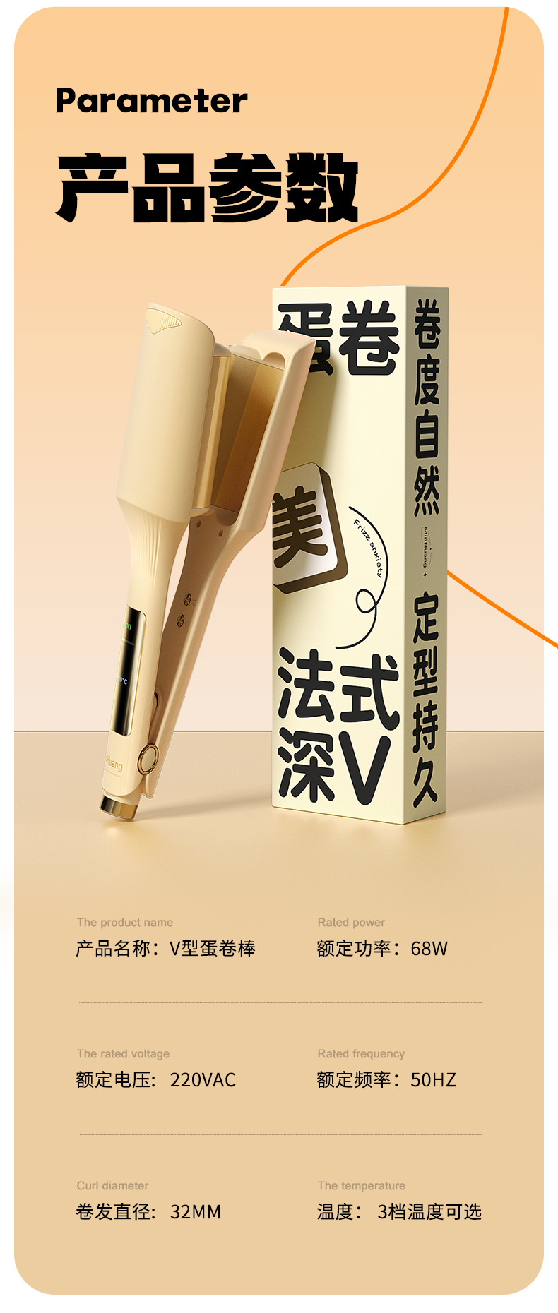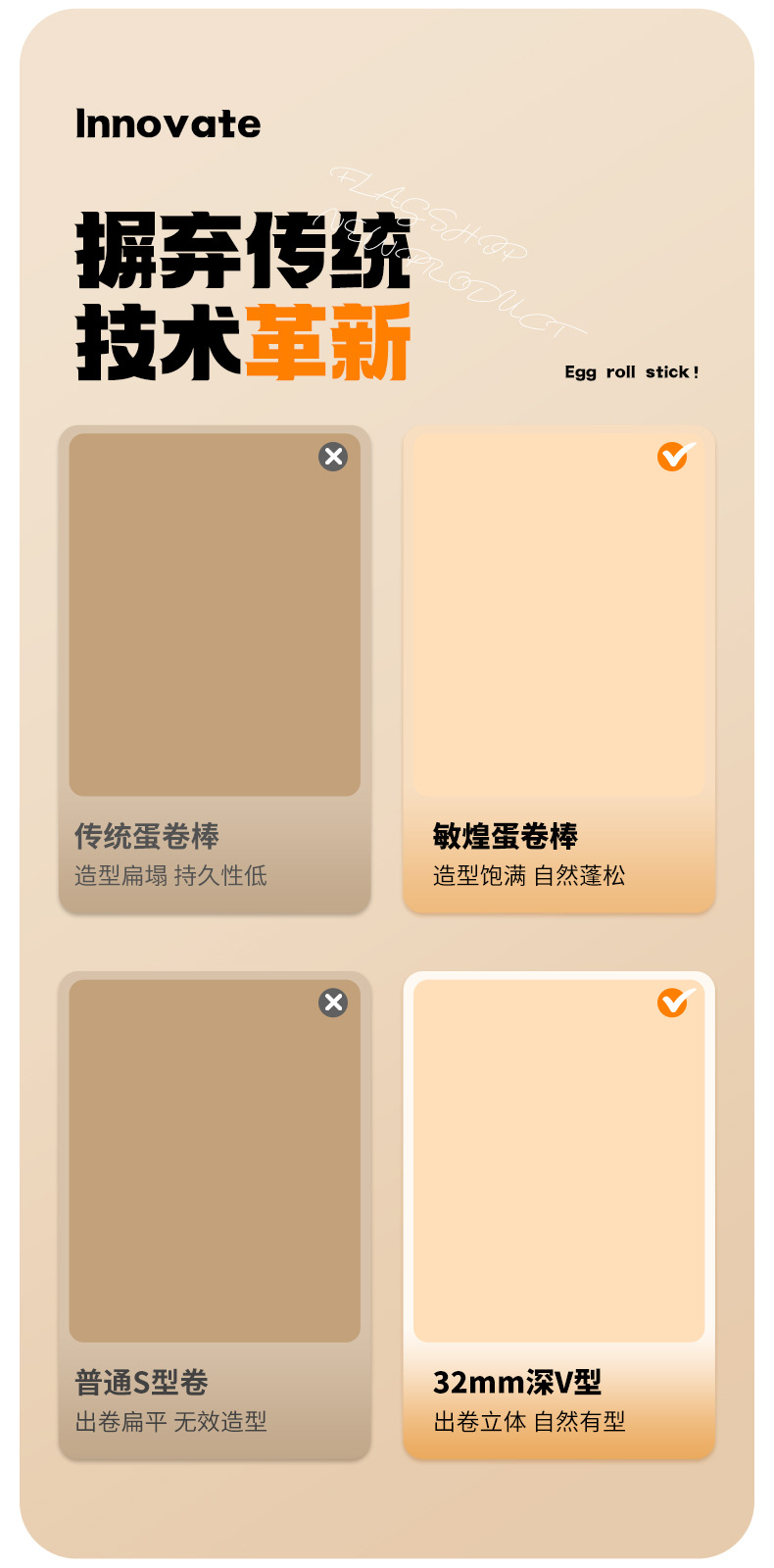 【弧度更自然❗️定型时间久】敏煌蛋卷头卷发棒32mm水波纹深V卷蛋糕卷卷发神器羊毛大卷负离子。jc