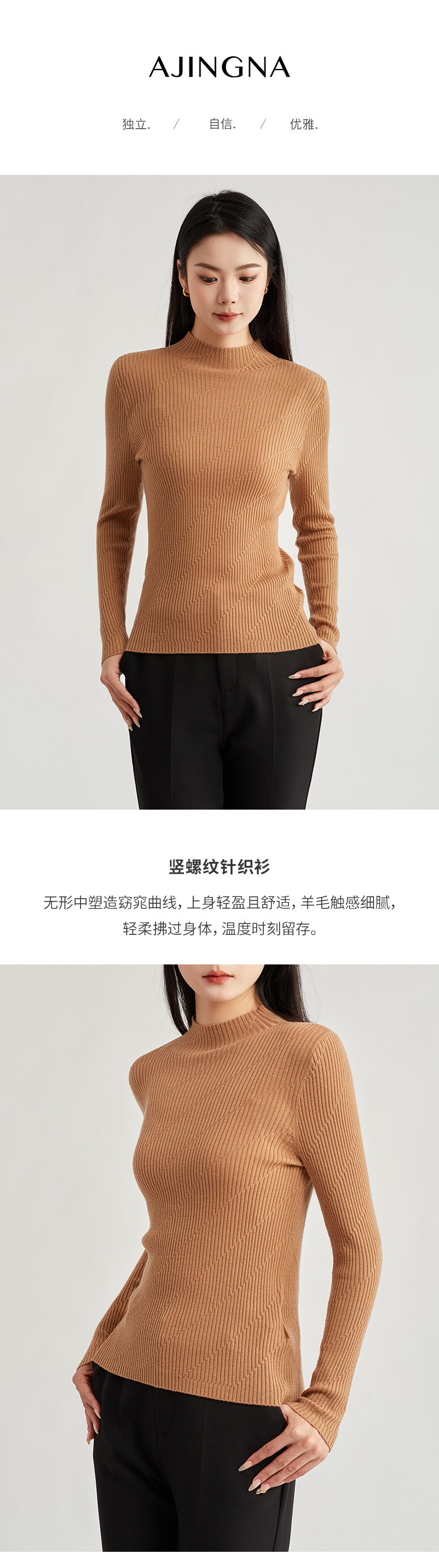【商城同款】阿菁娜修身显瘦竖螺纹羊毛针织衫A28D301019