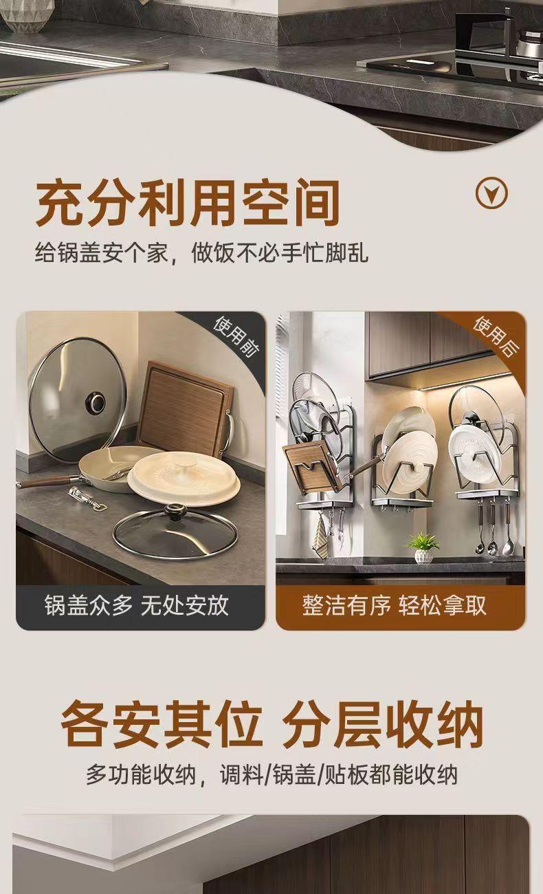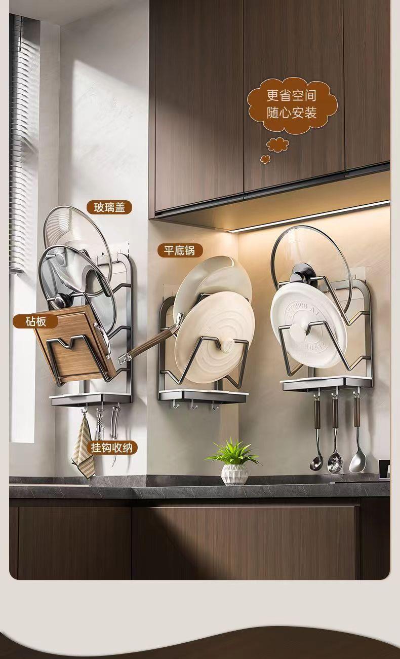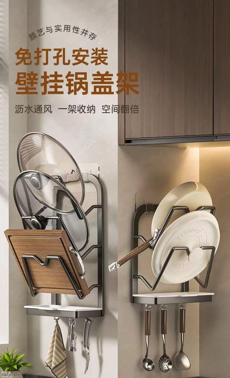 锅盖架子免打孔壁挂式厨房置物架砧板放置架案板菜板支架收纳神器