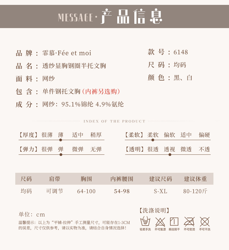 霏慕 透纱显胸钢圈半托文胸6148 性感透明网纱内衣套装女超薄胸罩