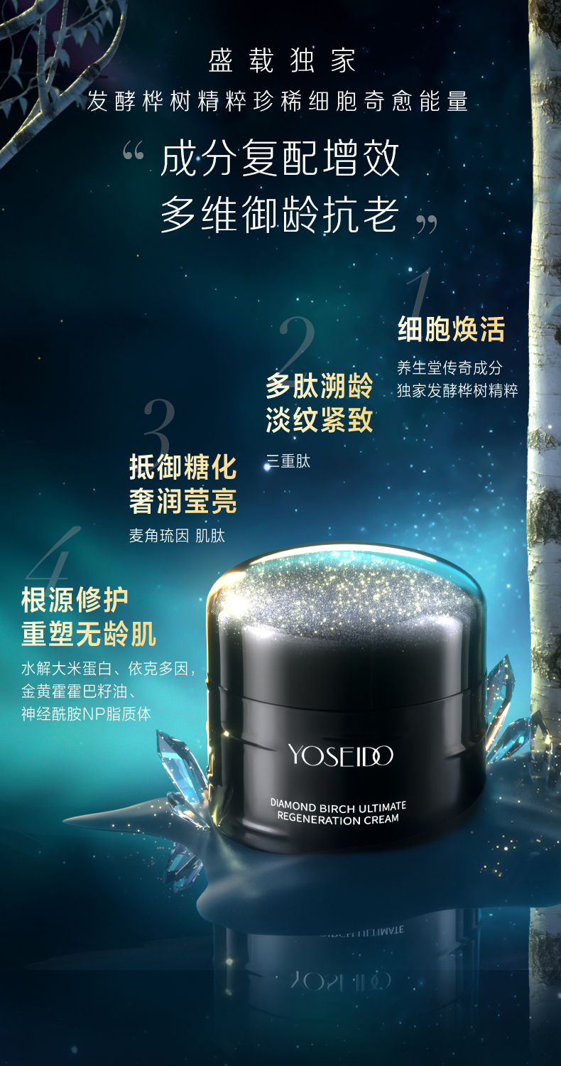 - 养生堂YOSEIDO,高端护肤品牌。专研白桦原液•来自北纬45° 的细胞抗老成分,源自1772年《丹麦药典》。不额外添加一滴水,让青春永续。