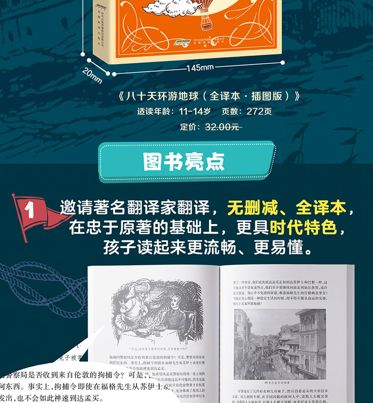 【插图版•全译本】八十天环游地球 凡尔纳科幻经典世界名著儿童文学 正版书 小学生课外阅读书籍 一二三四五六年级课外书必读书目