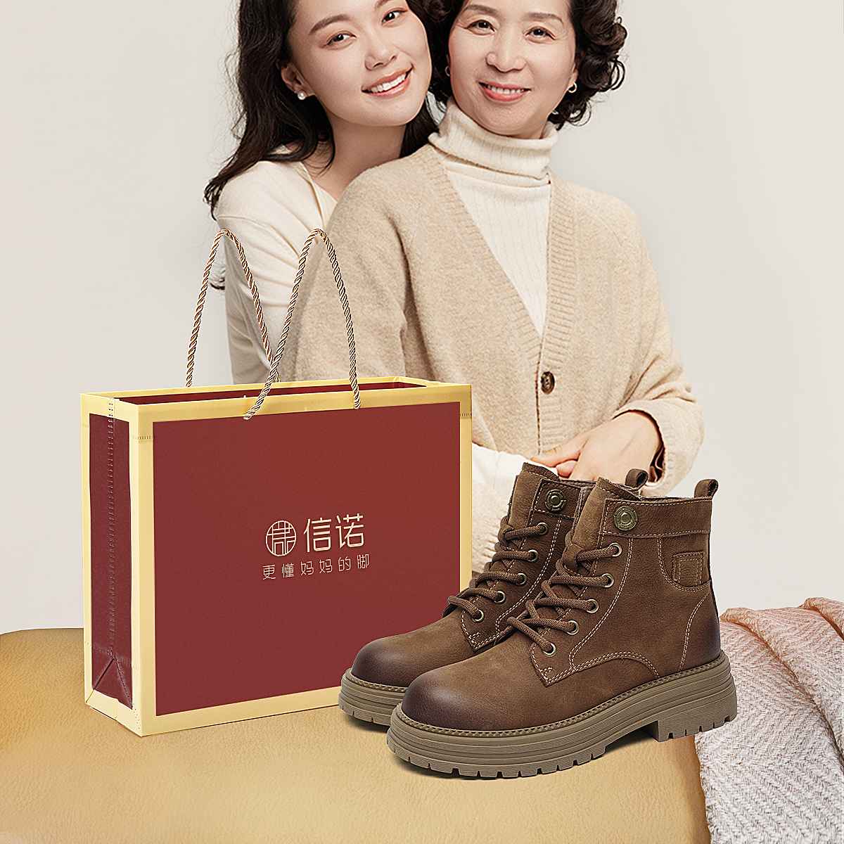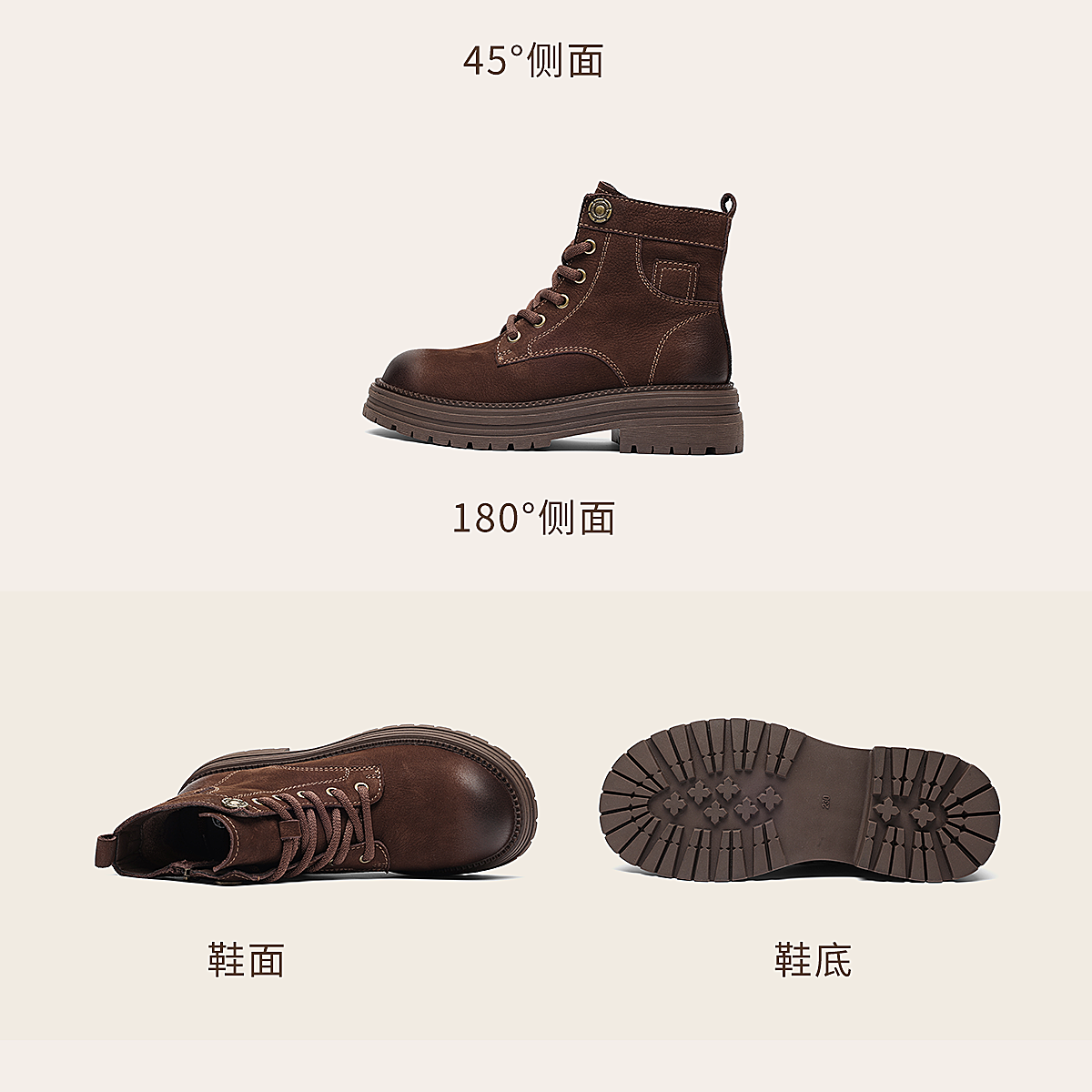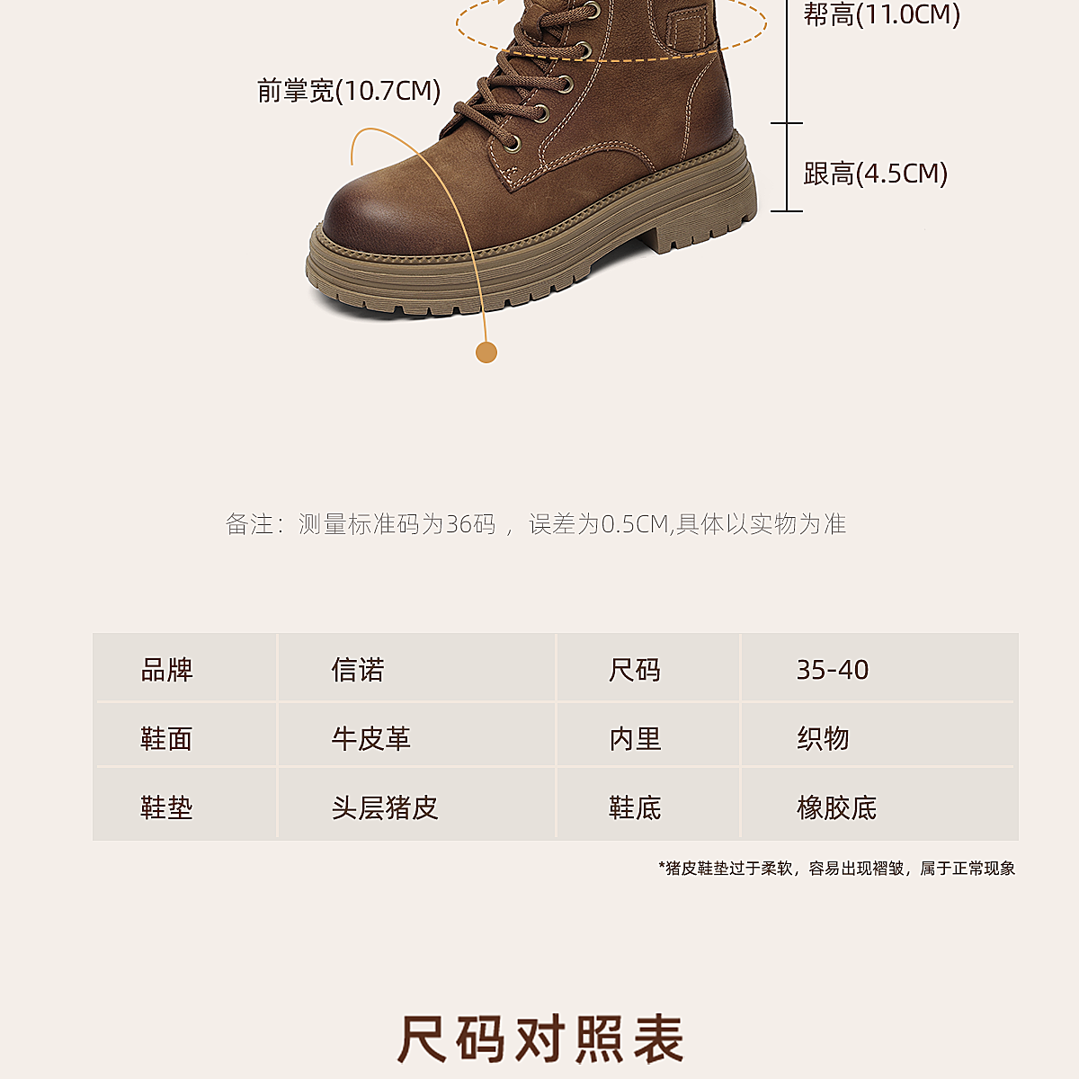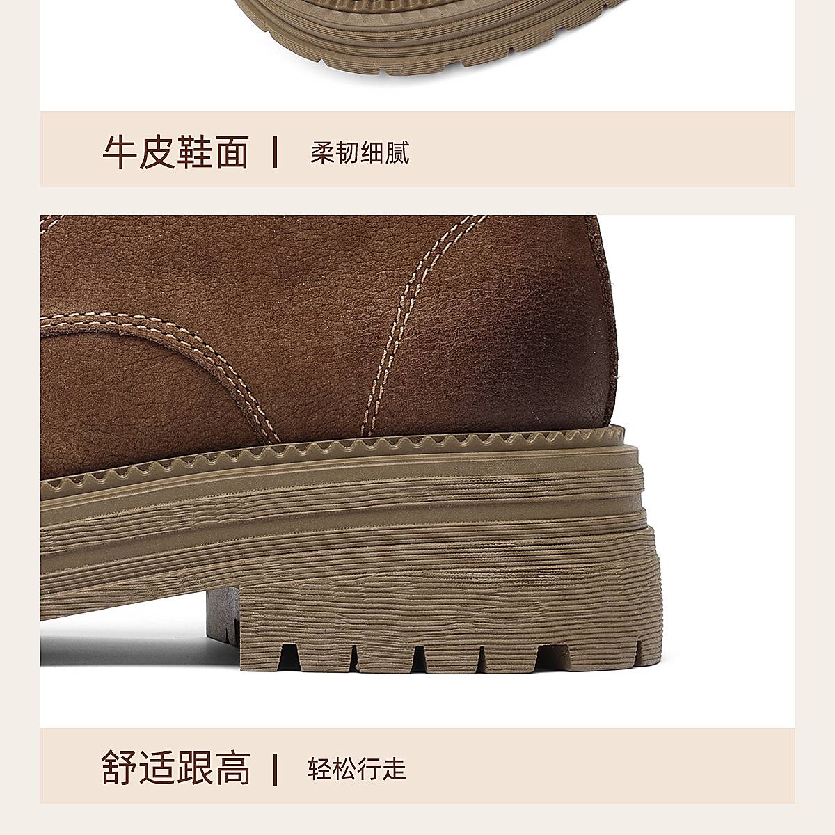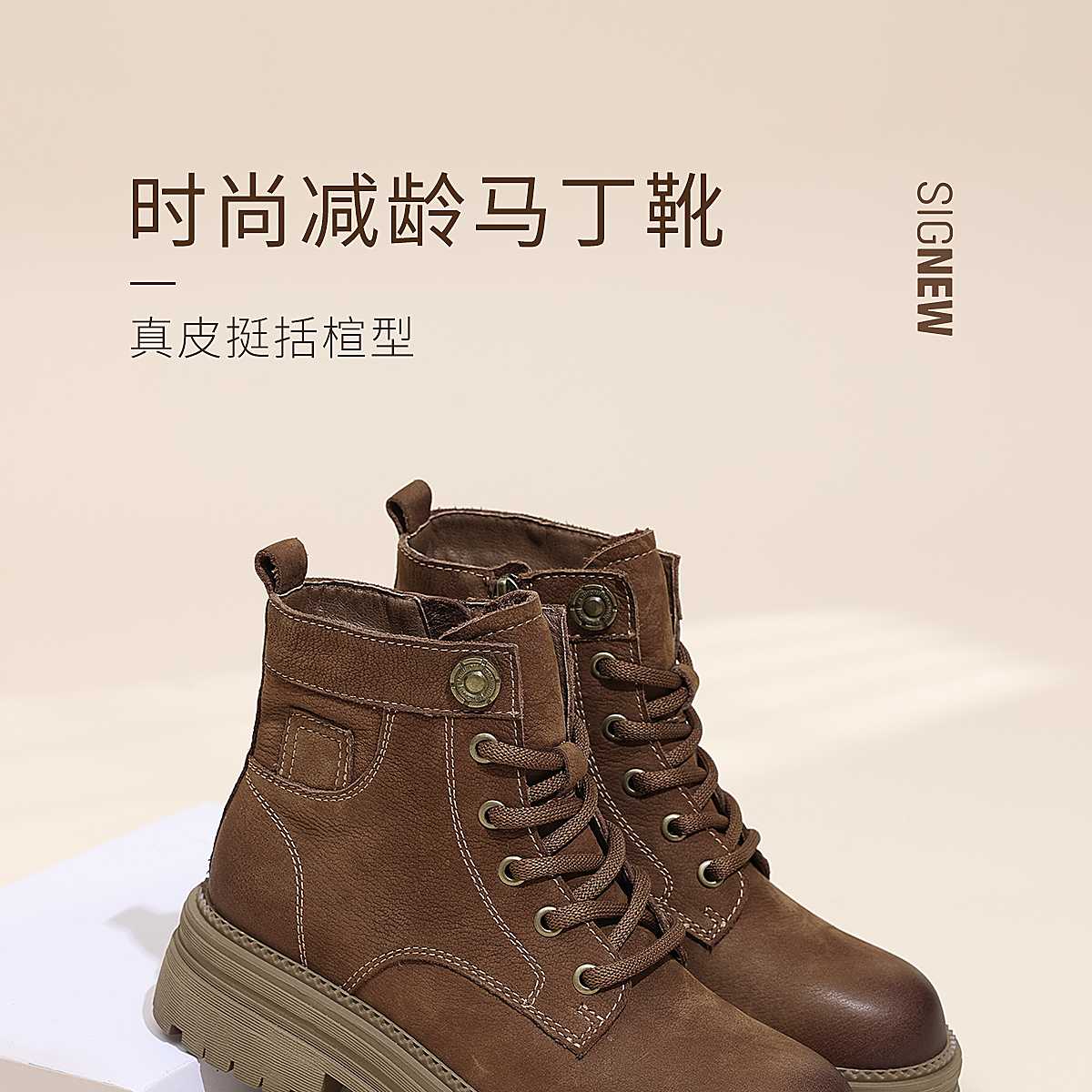 信诺时尚妈妈鞋英伦风复古马丁靴女软底舒适真皮短靴2025秋冬新款X5M036-163