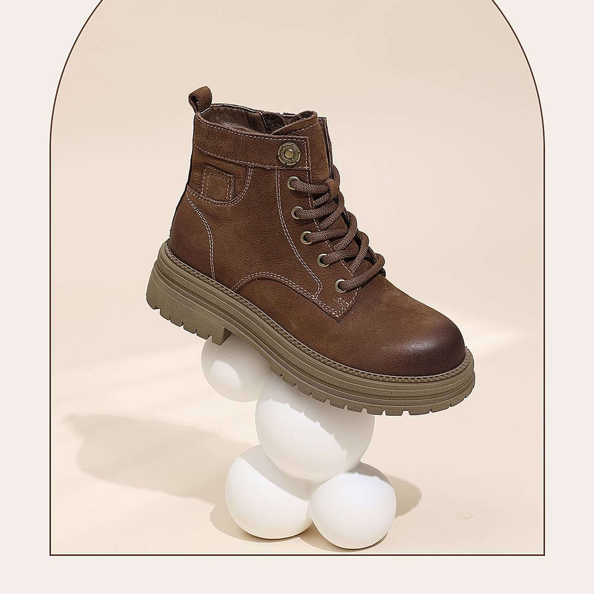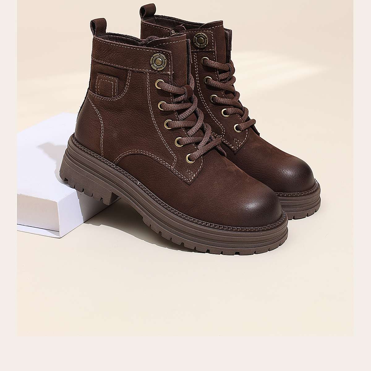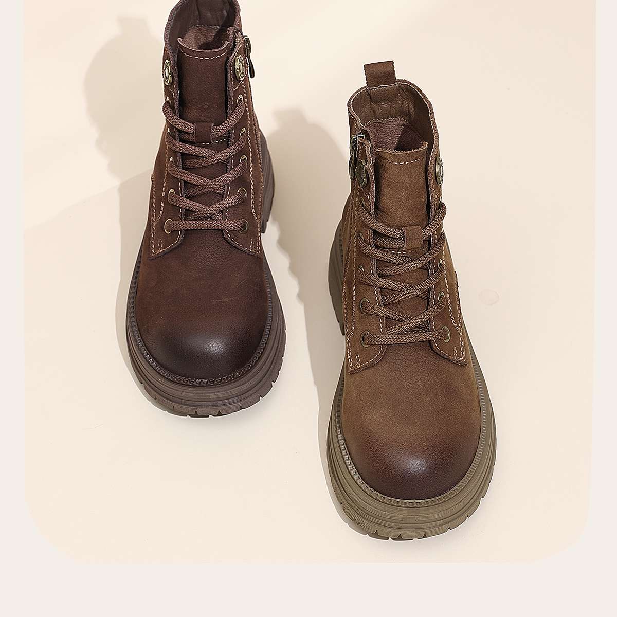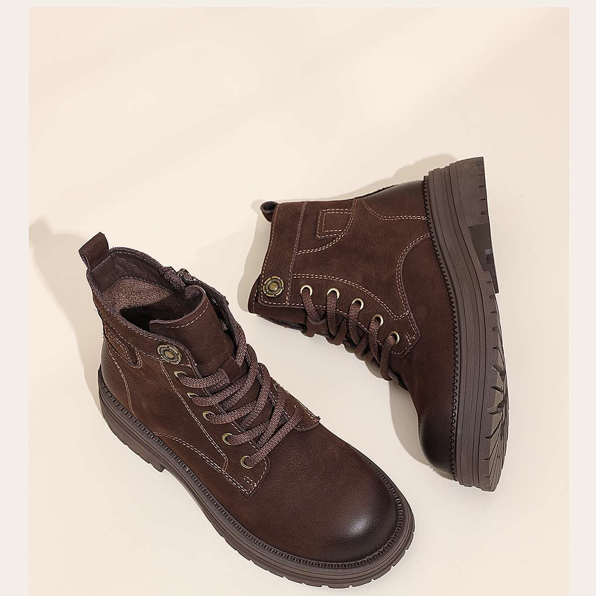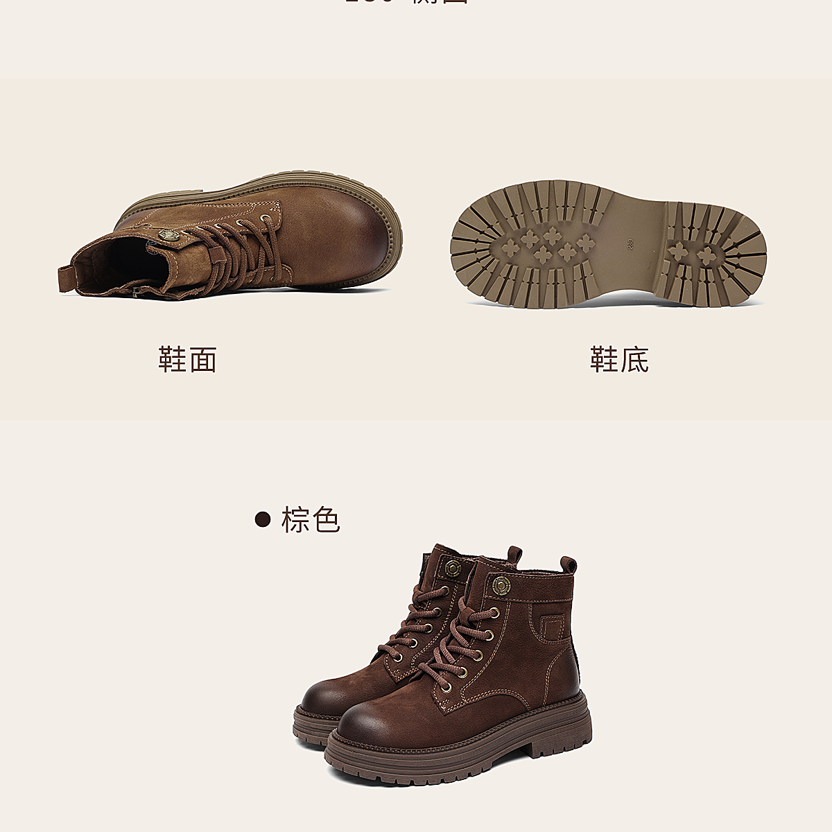 信诺时尚妈妈鞋英伦风复古马丁靴女软底舒适真皮短靴2025秋冬新款X5M036-163
