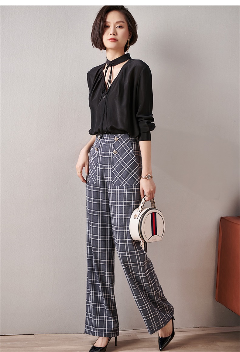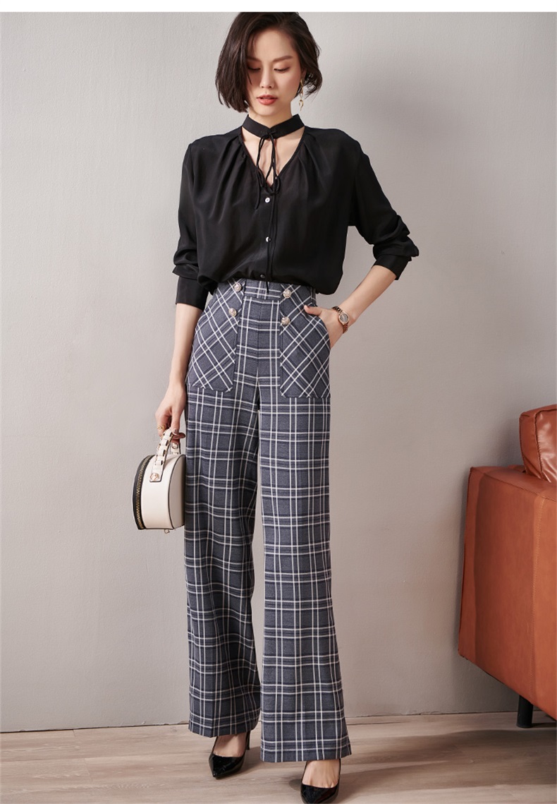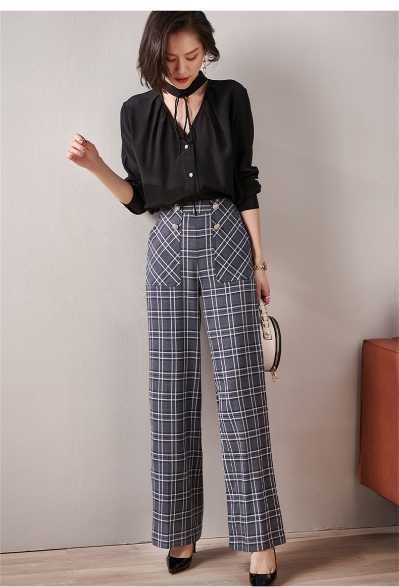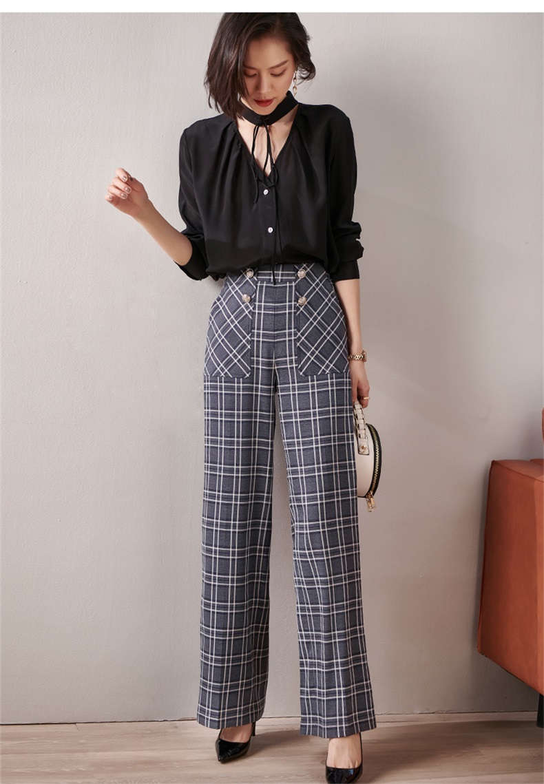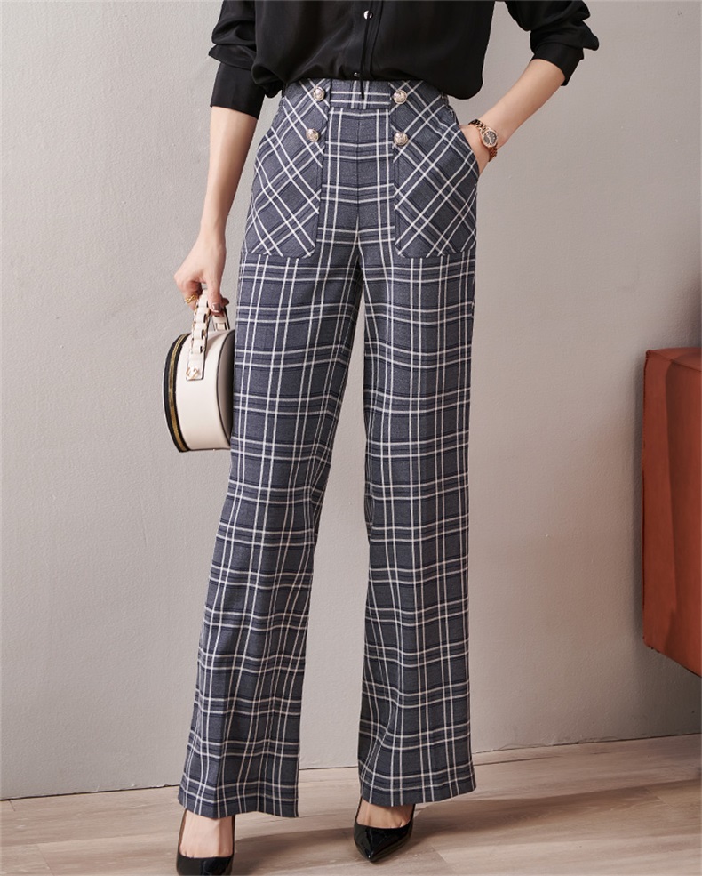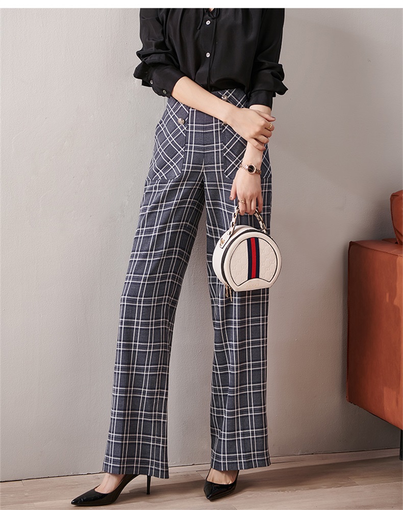 剩S 芳外新款格纹梭织垂感阔腿裤高腰显瘦长腿式裤子女8T21AH0002