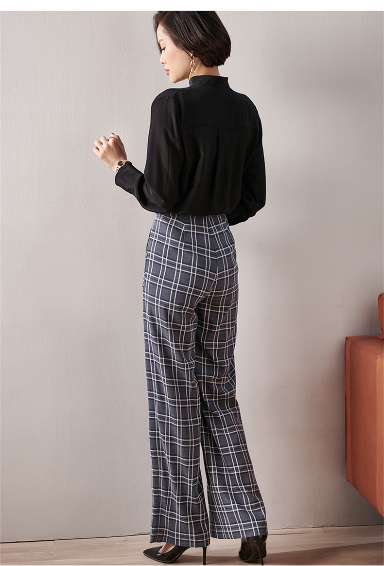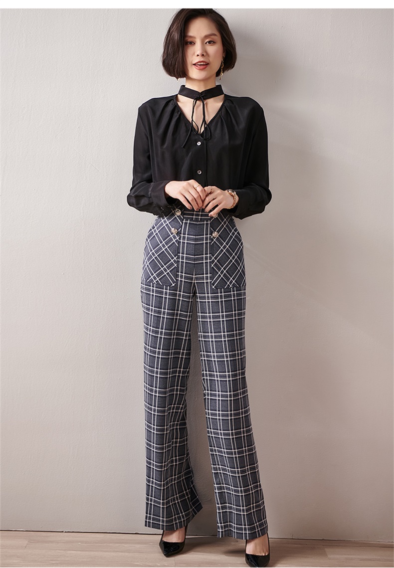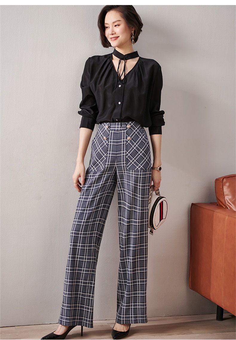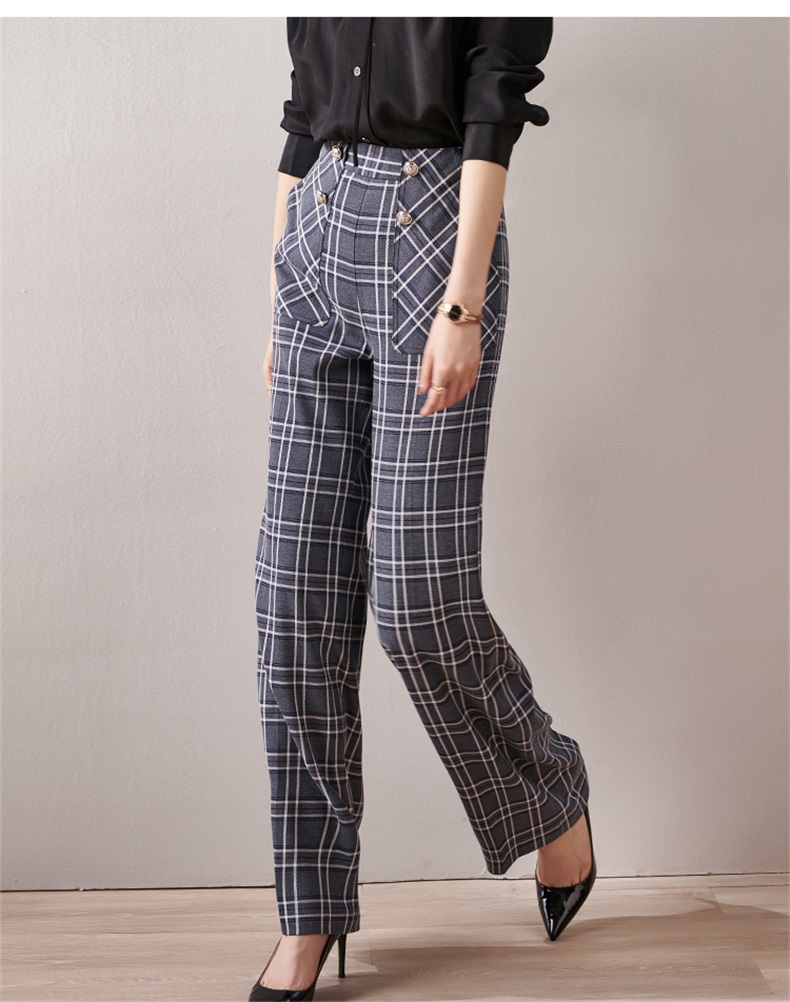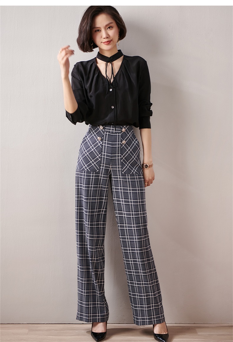 剩S 芳外新款格纹梭织垂感阔腿裤高腰显瘦长腿式裤子女8T21AH0002