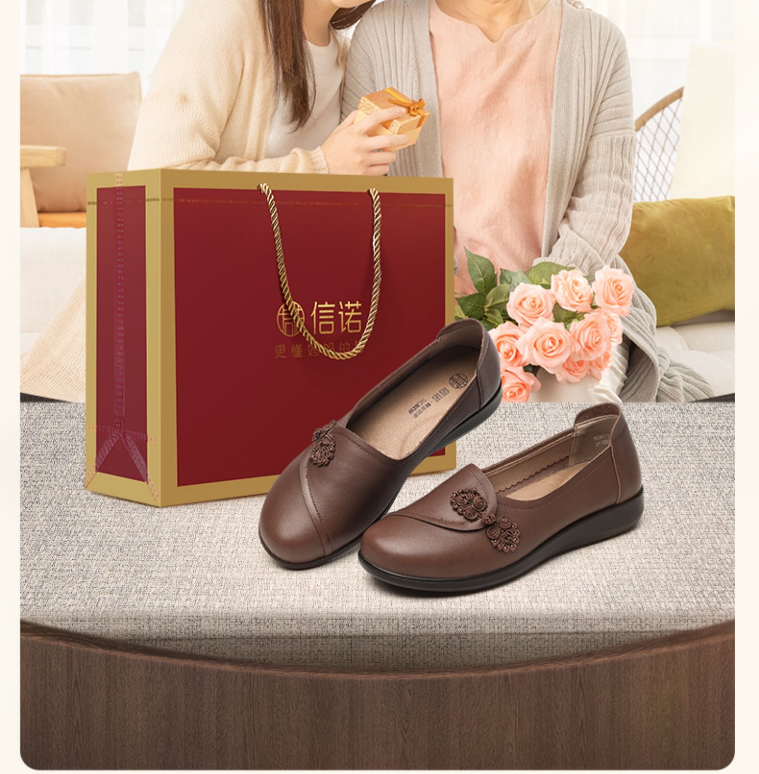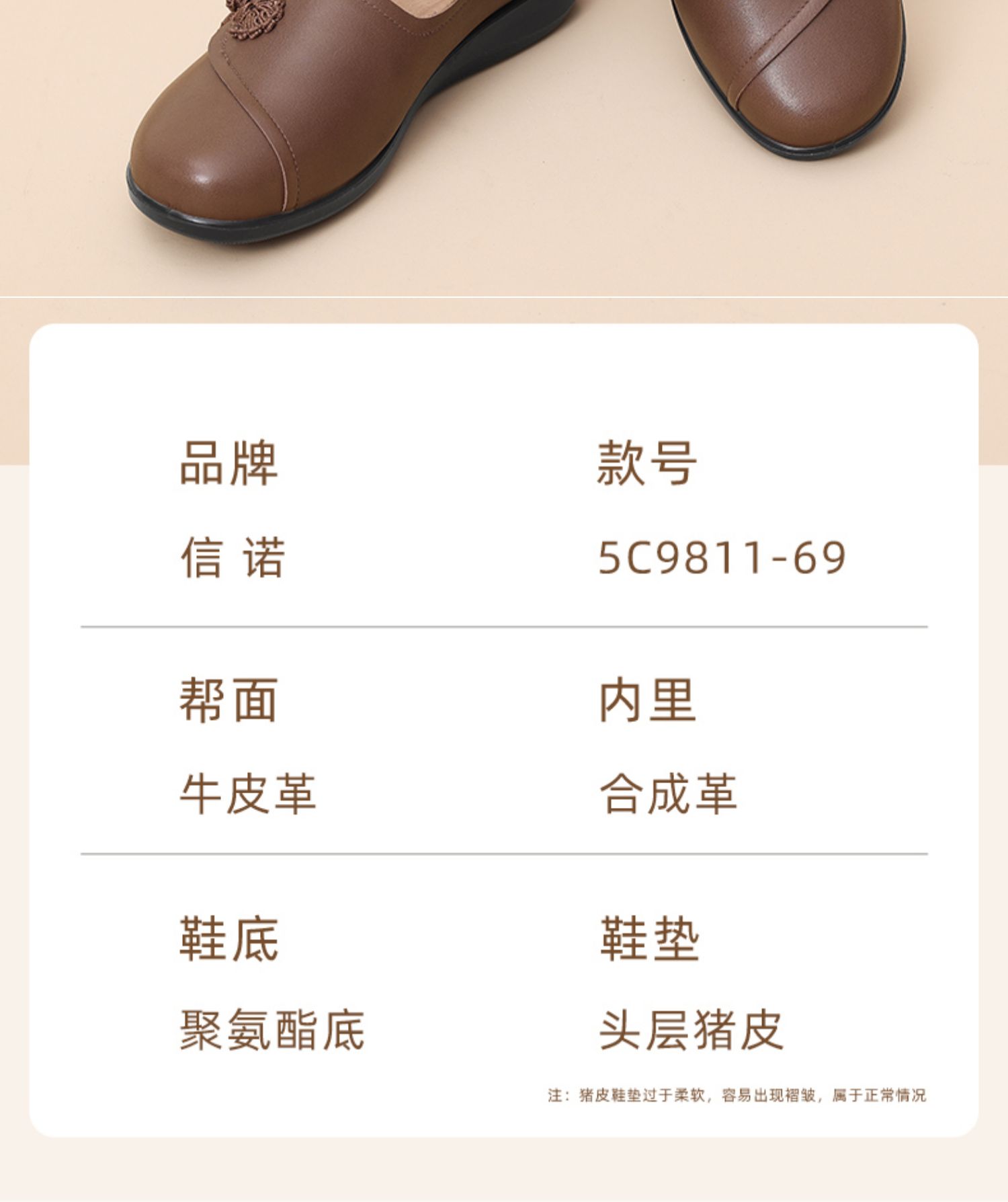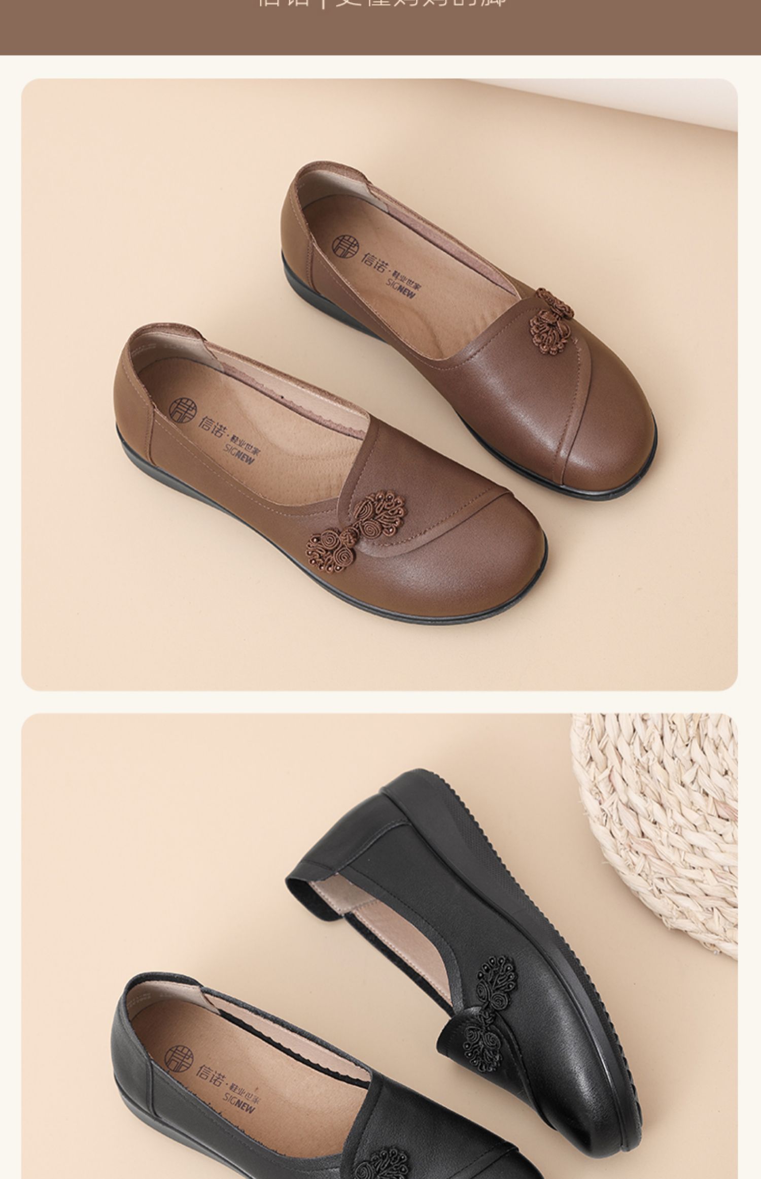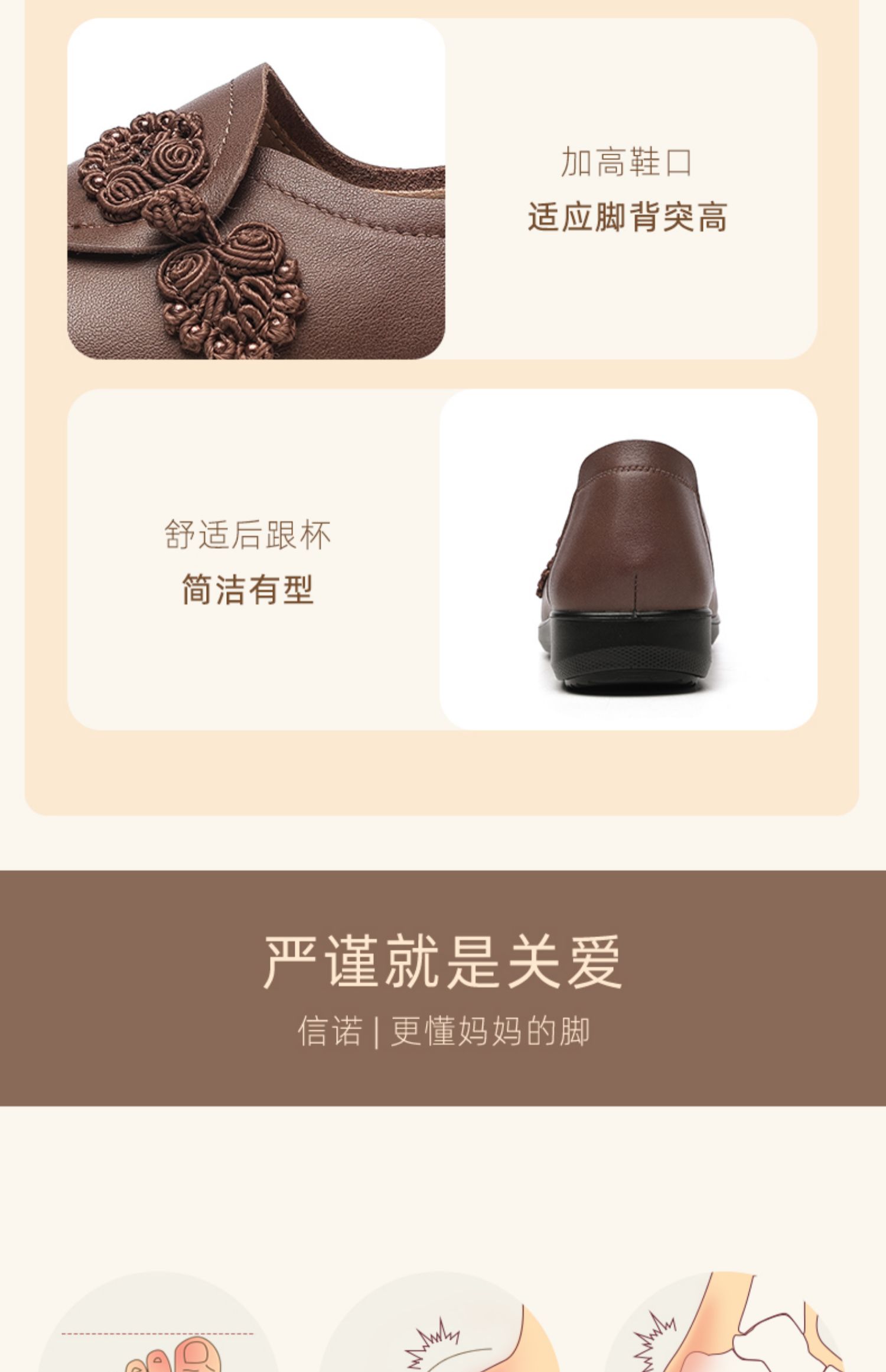 信诺真皮妈妈鞋一脚蹬单鞋女2025春季新款中老年皮鞋软底奶奶鞋子5C9811-69