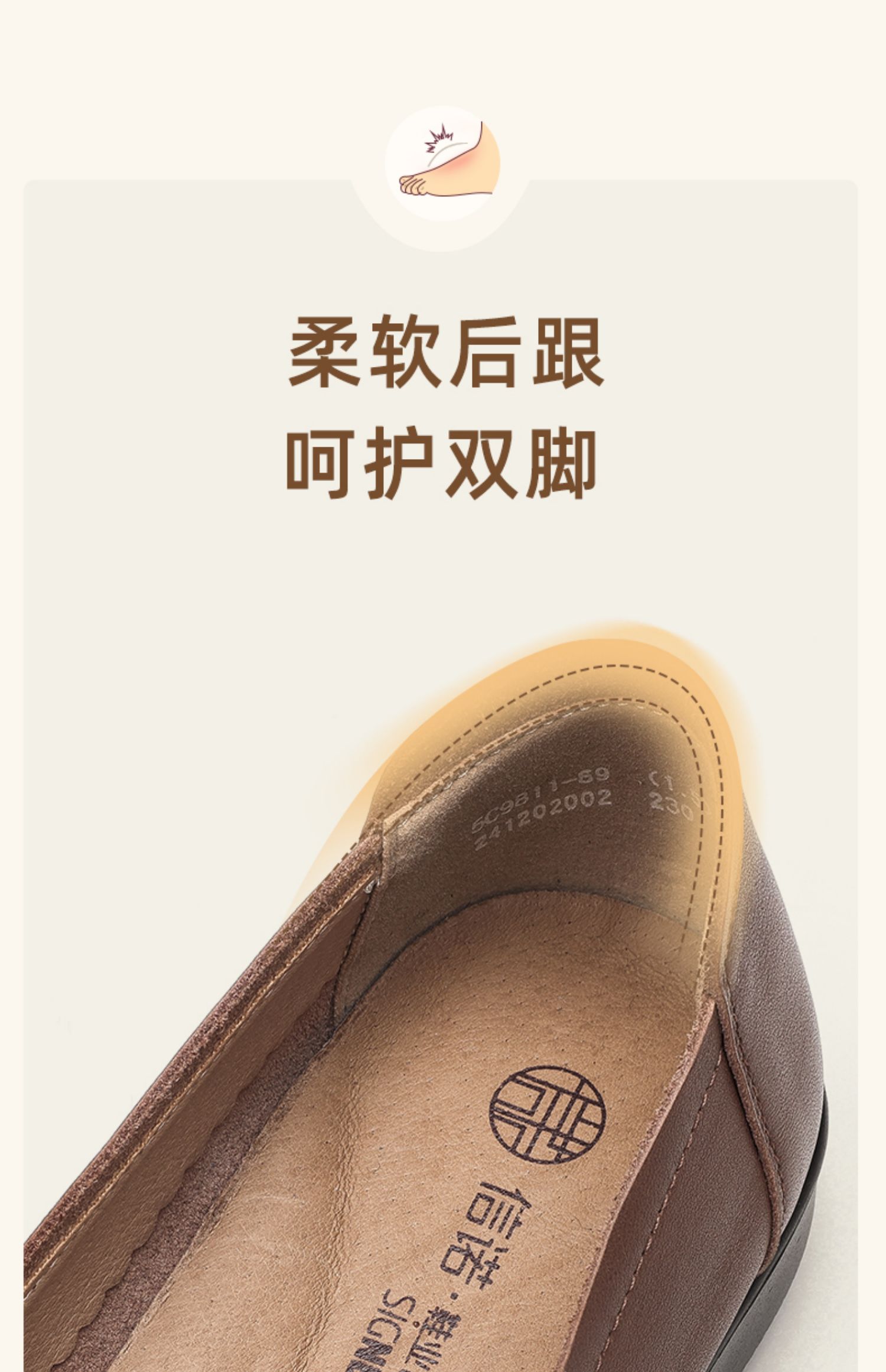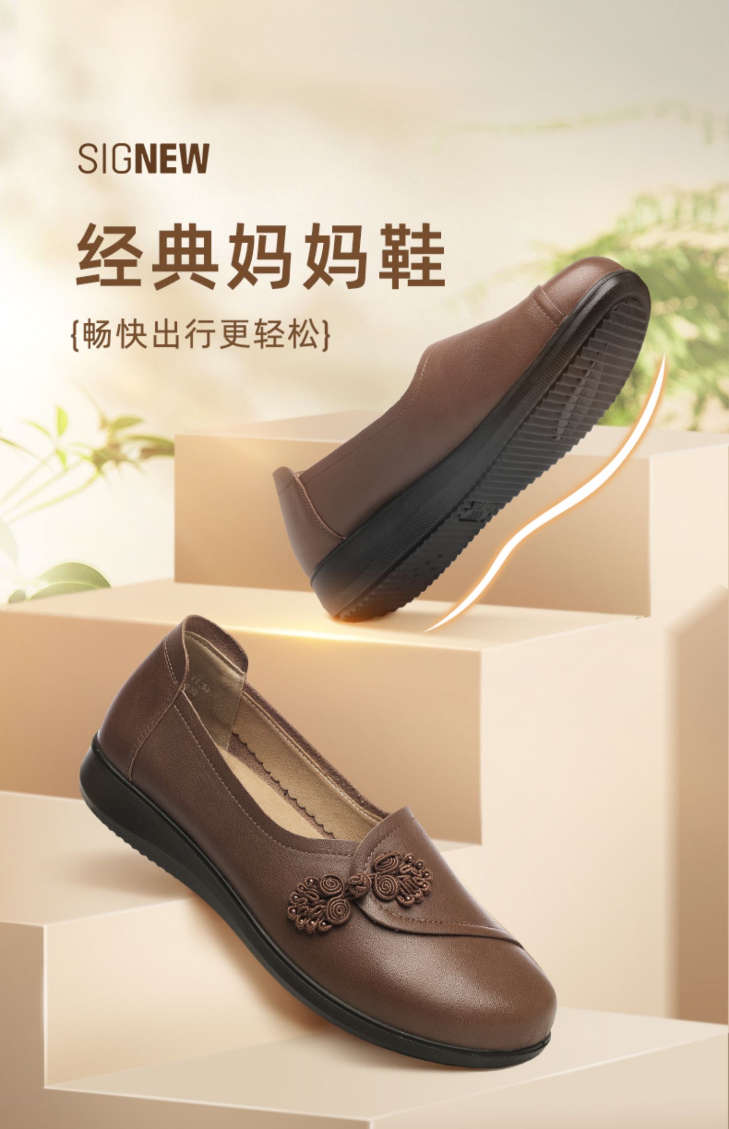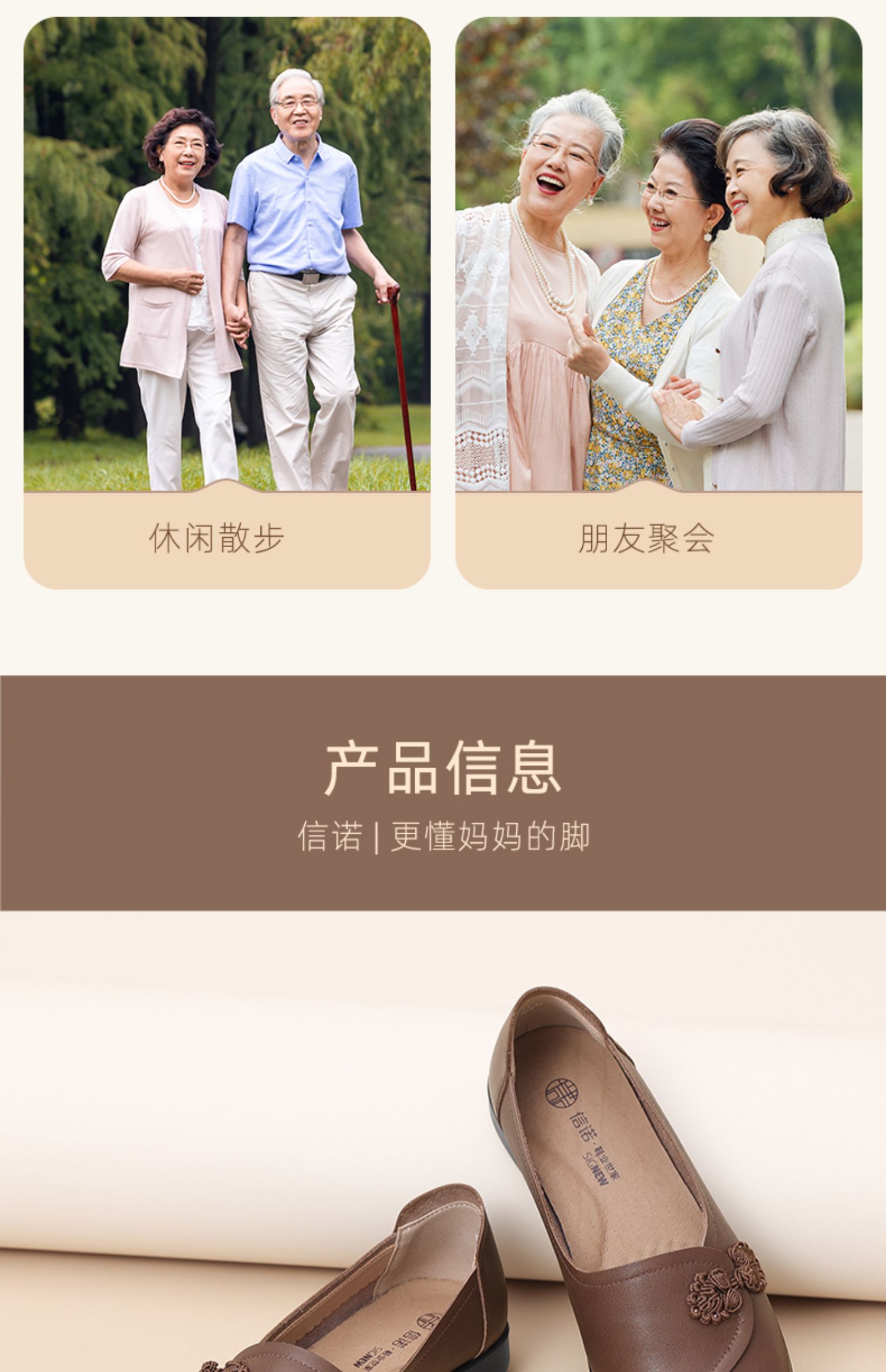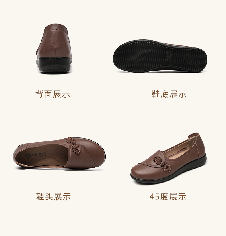 信诺真皮妈妈鞋一脚蹬单鞋女2025春季新款中老年皮鞋软底奶奶鞋子5C9811-69