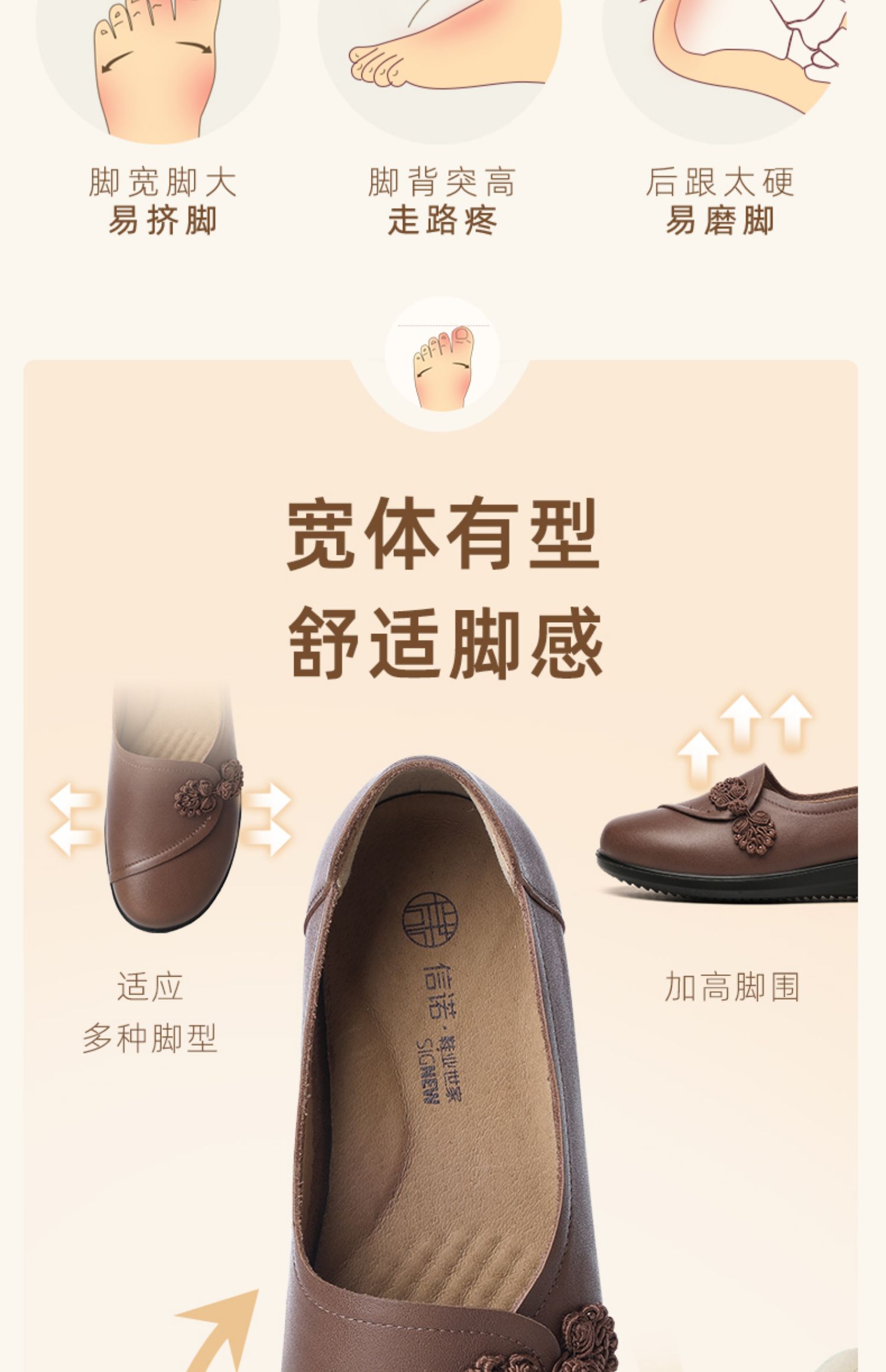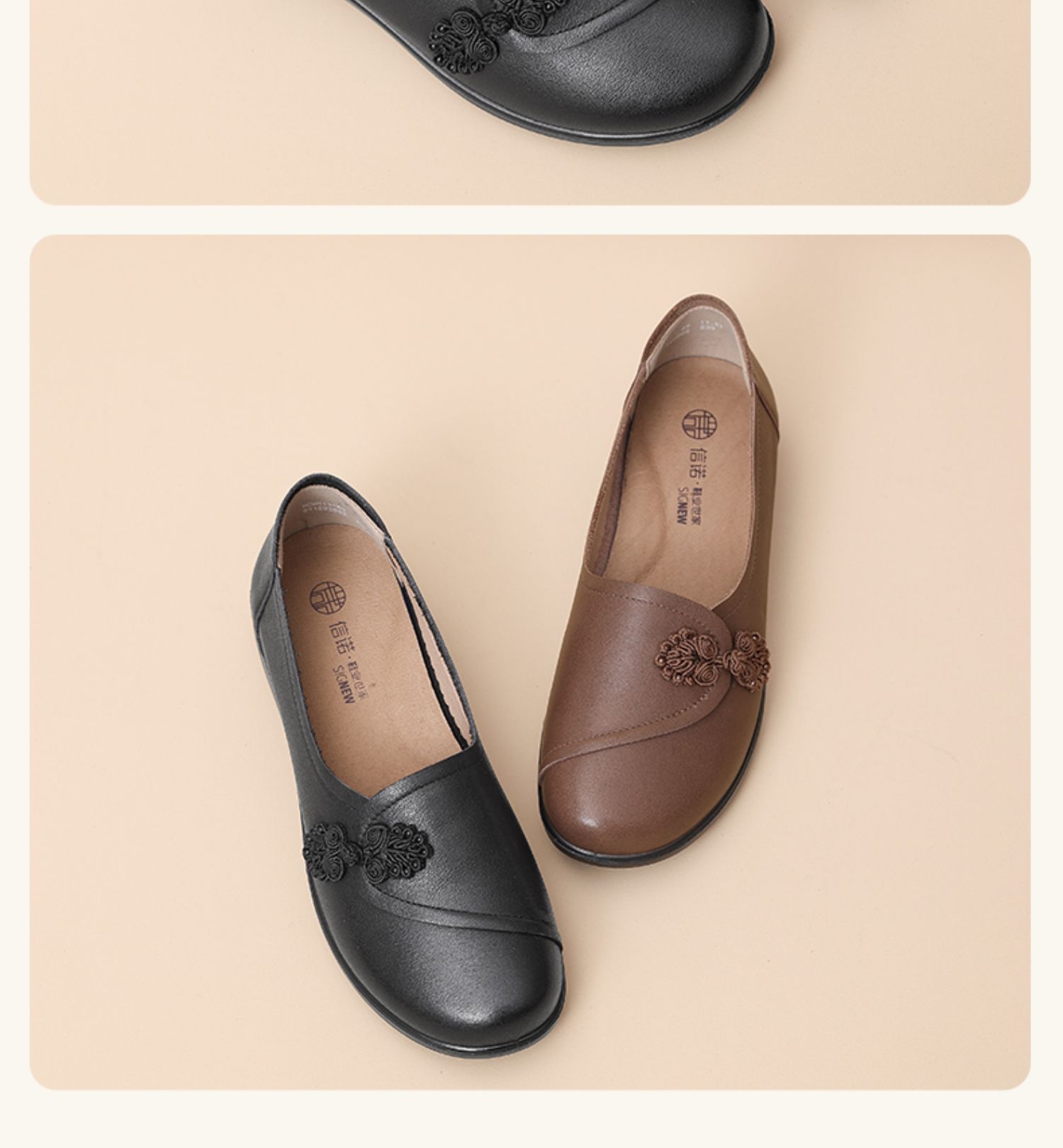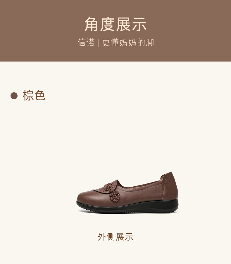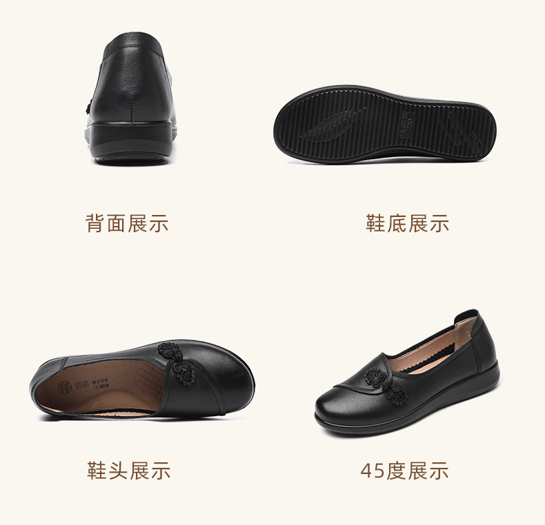 信诺真皮妈妈鞋一脚蹬单鞋女2025春季新款中老年皮鞋软底奶奶鞋子5C9811-69