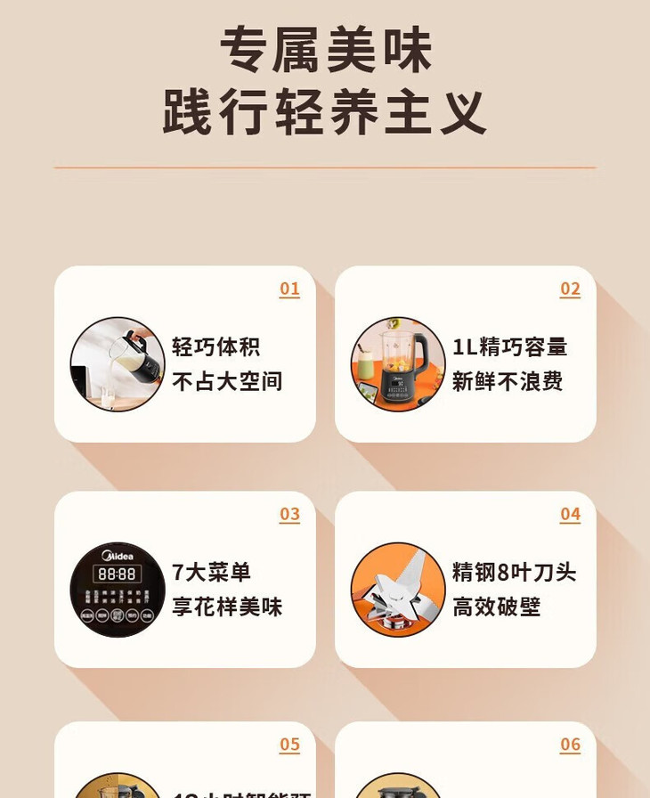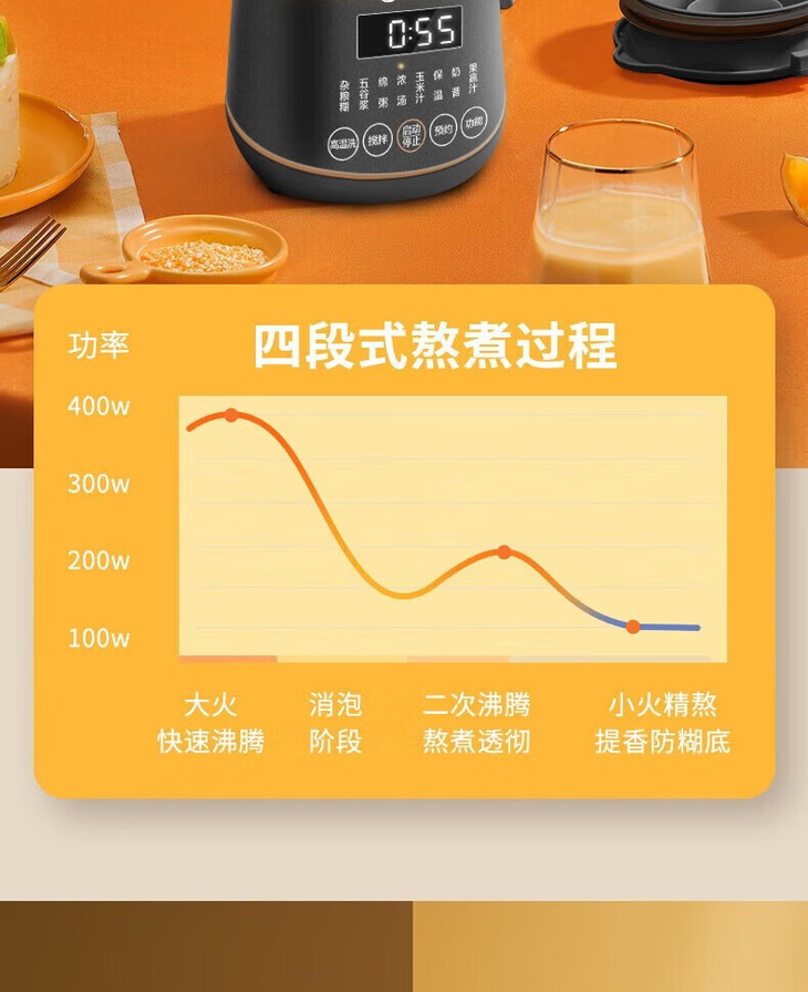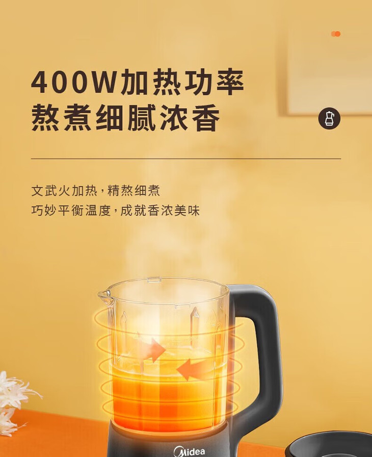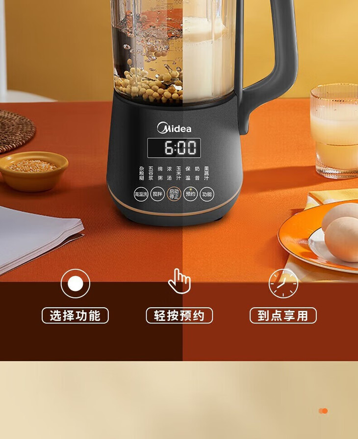 美的(509934)PB40X2-701A破壁机家用智能预约多功能自动小型料理机触控豆浆机