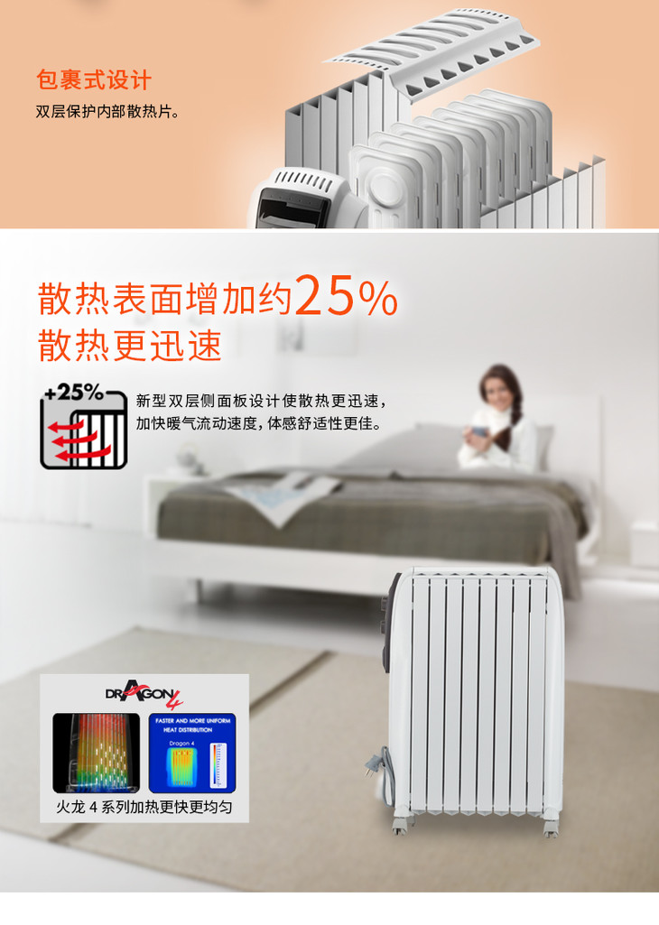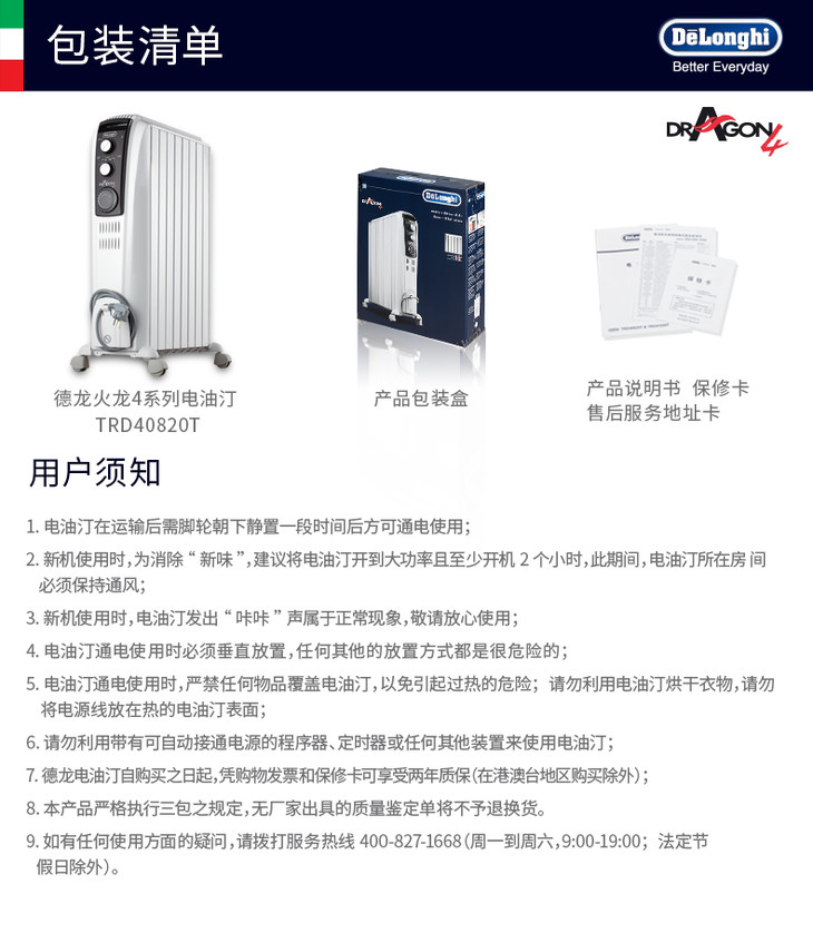 Delonghi/ 德龙火龙4系列电油汀8片 TRD40820T