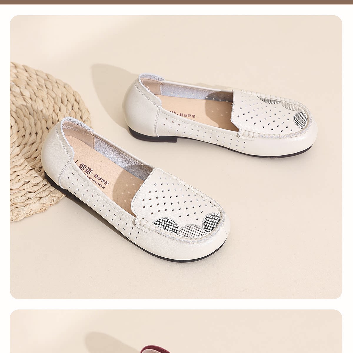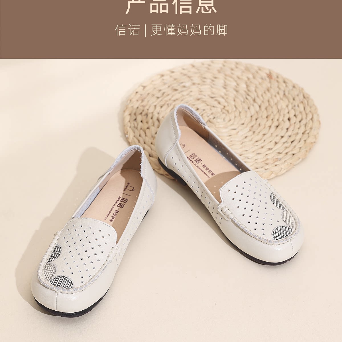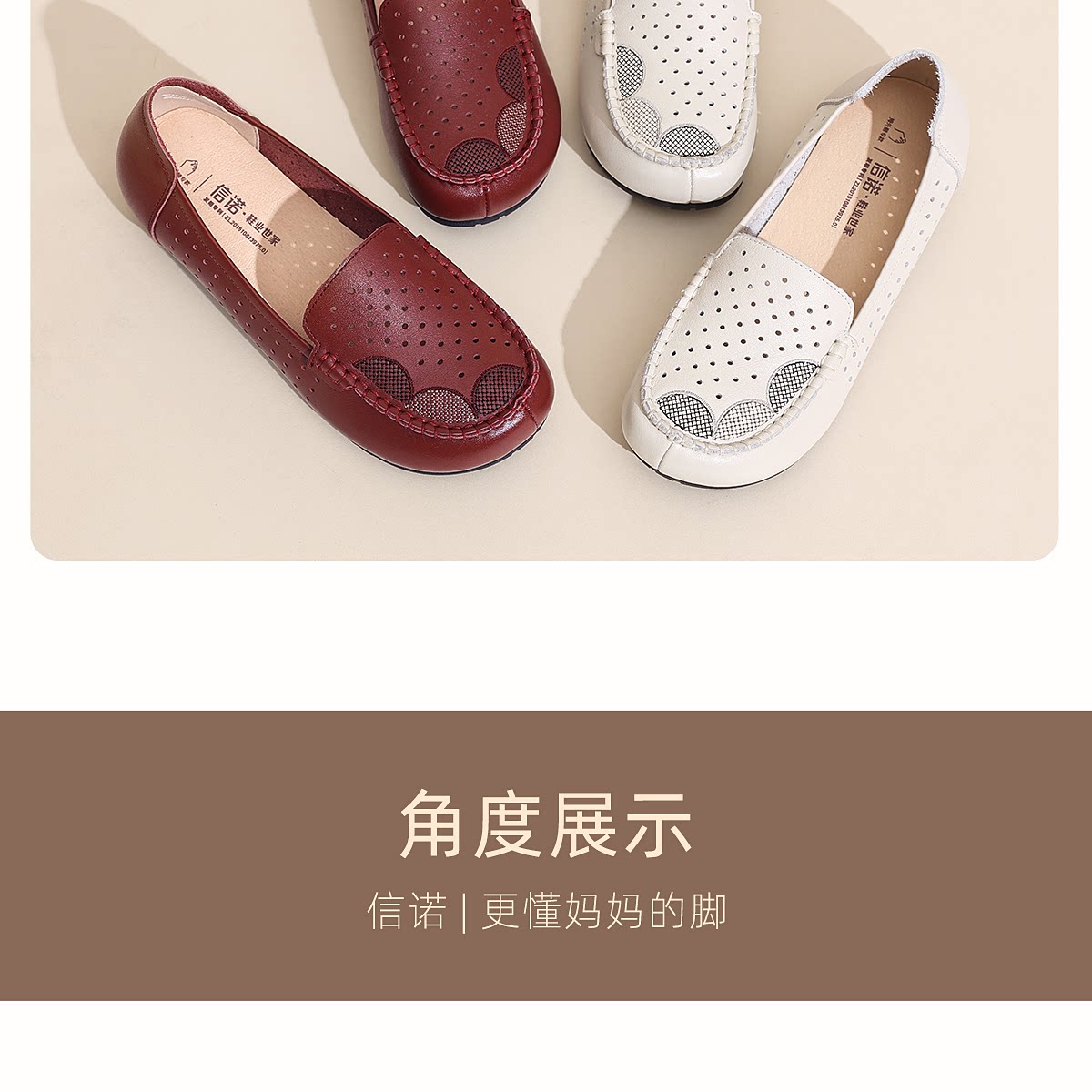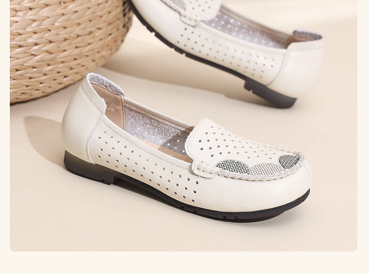 信诺真皮妈妈鞋女一脚蹬镂空洞洞鞋中老年拇外翻皮鞋2026夏季新款6C1980-023