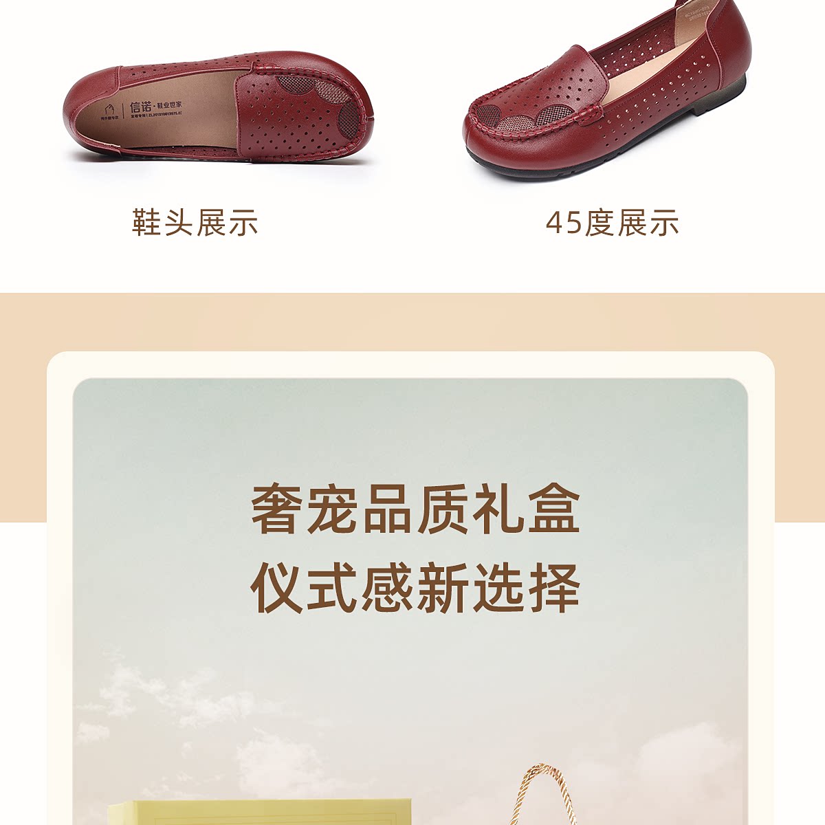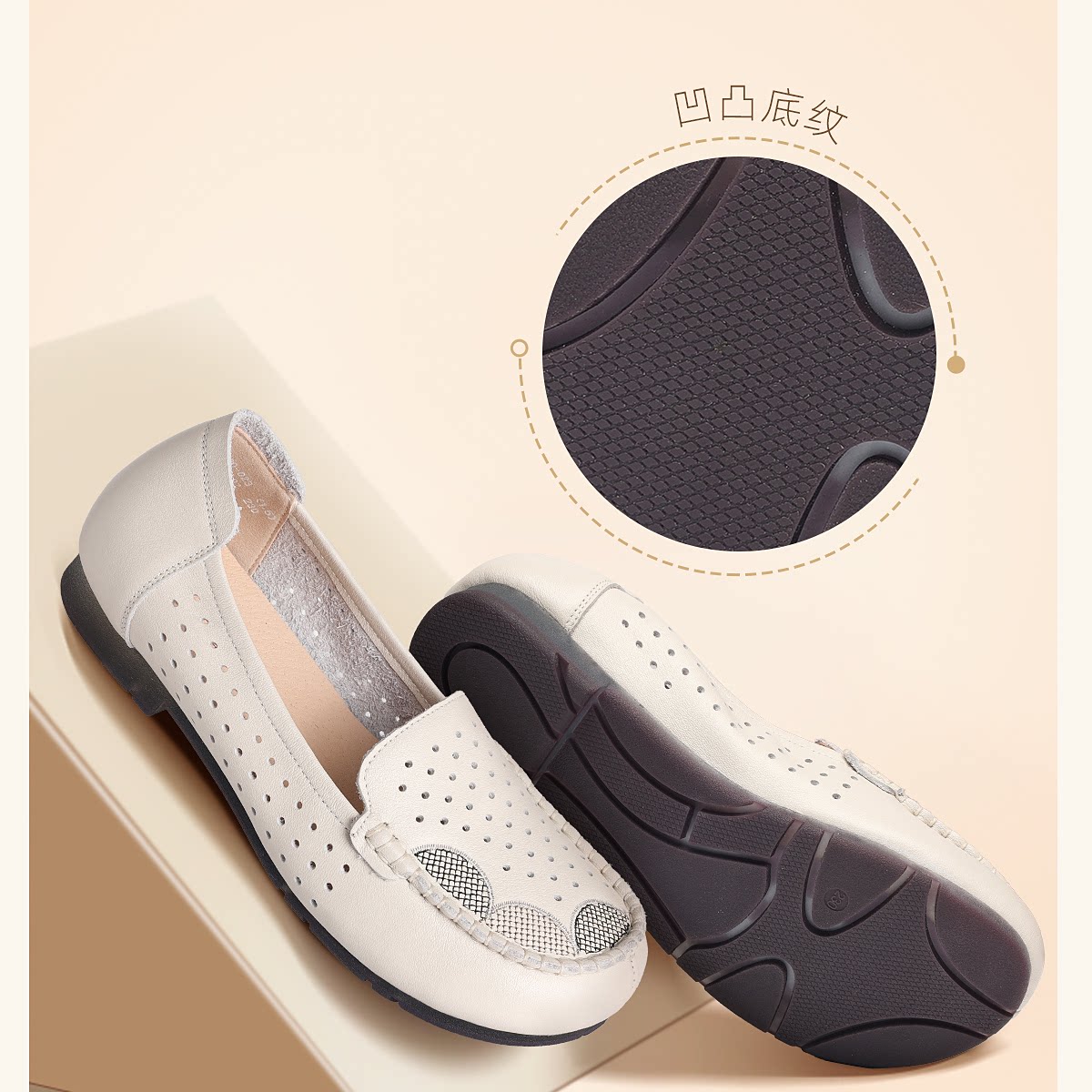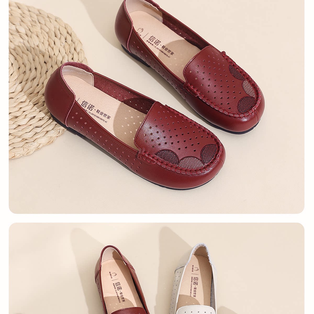 信诺真皮妈妈鞋女一脚蹬镂空洞洞鞋中老年拇外翻皮鞋2026夏季新款6C1980-023