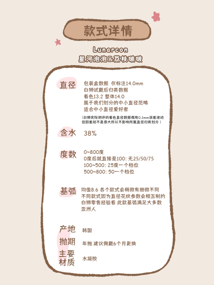 Lunarcon旗下 · 星河泡泡&荔枝啵啵|14.0mm白狮参考着色中小直径 年抛美瞳【顺丰包邮】