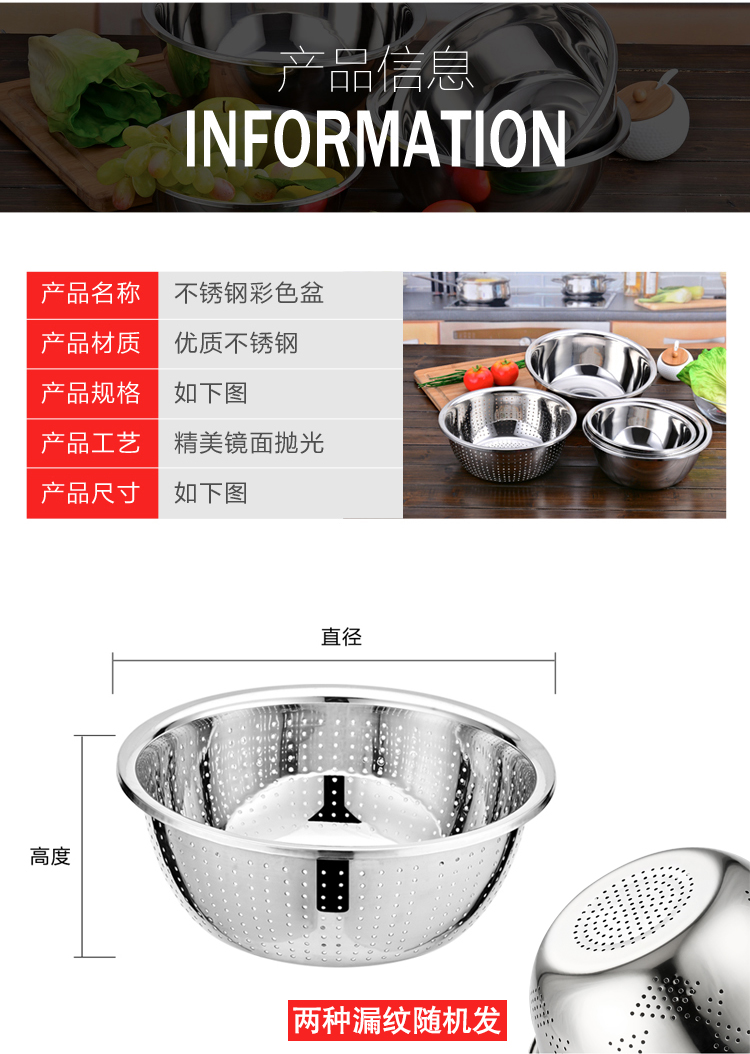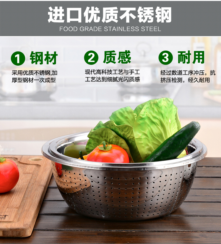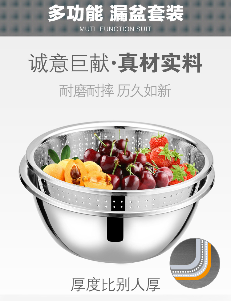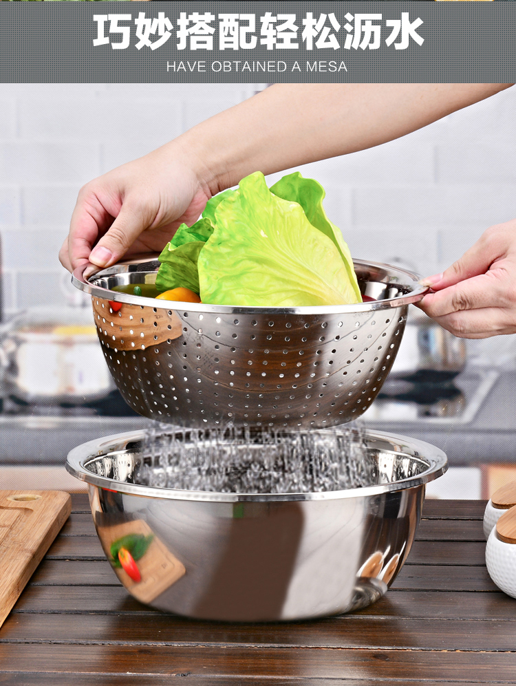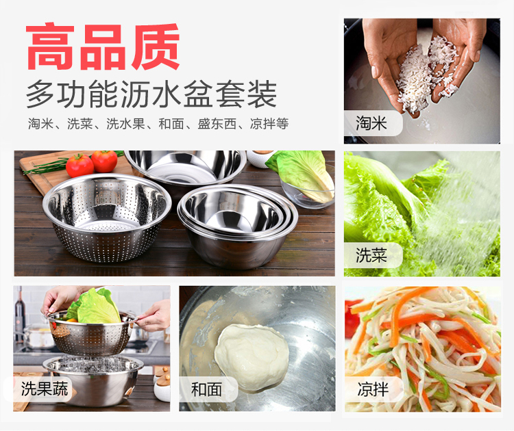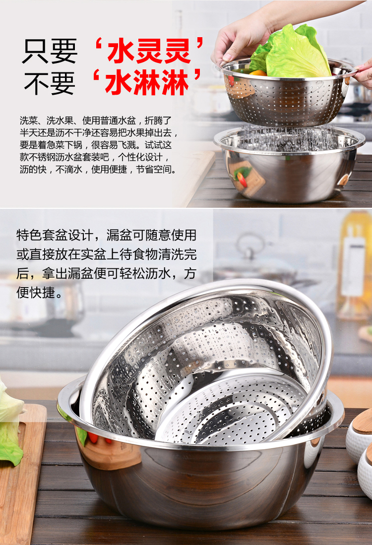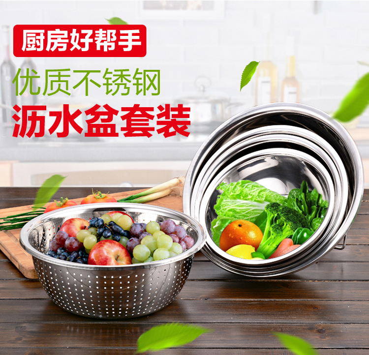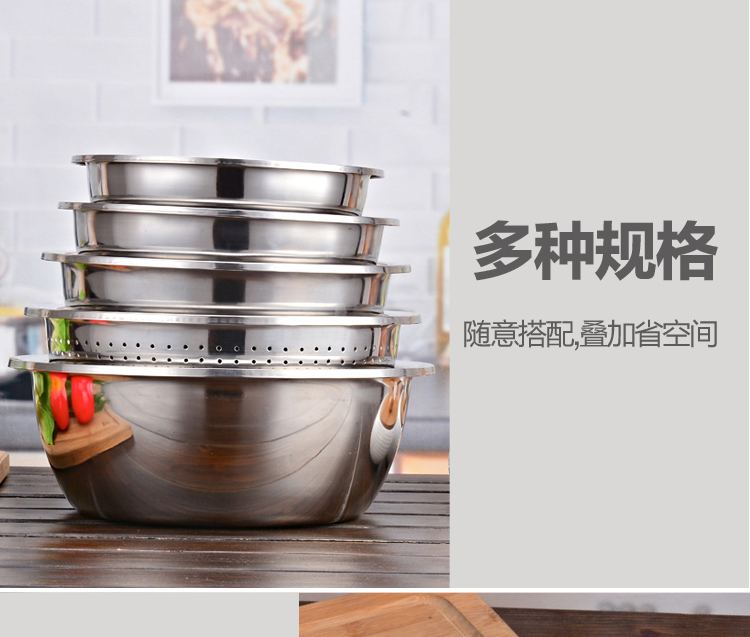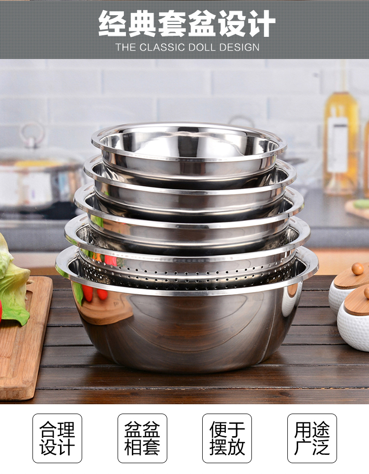 【不锈钢材质 5件套】不锈钢盆加厚调料缸菜盆漏盆洗菜盆厨房用品餐饮用具
