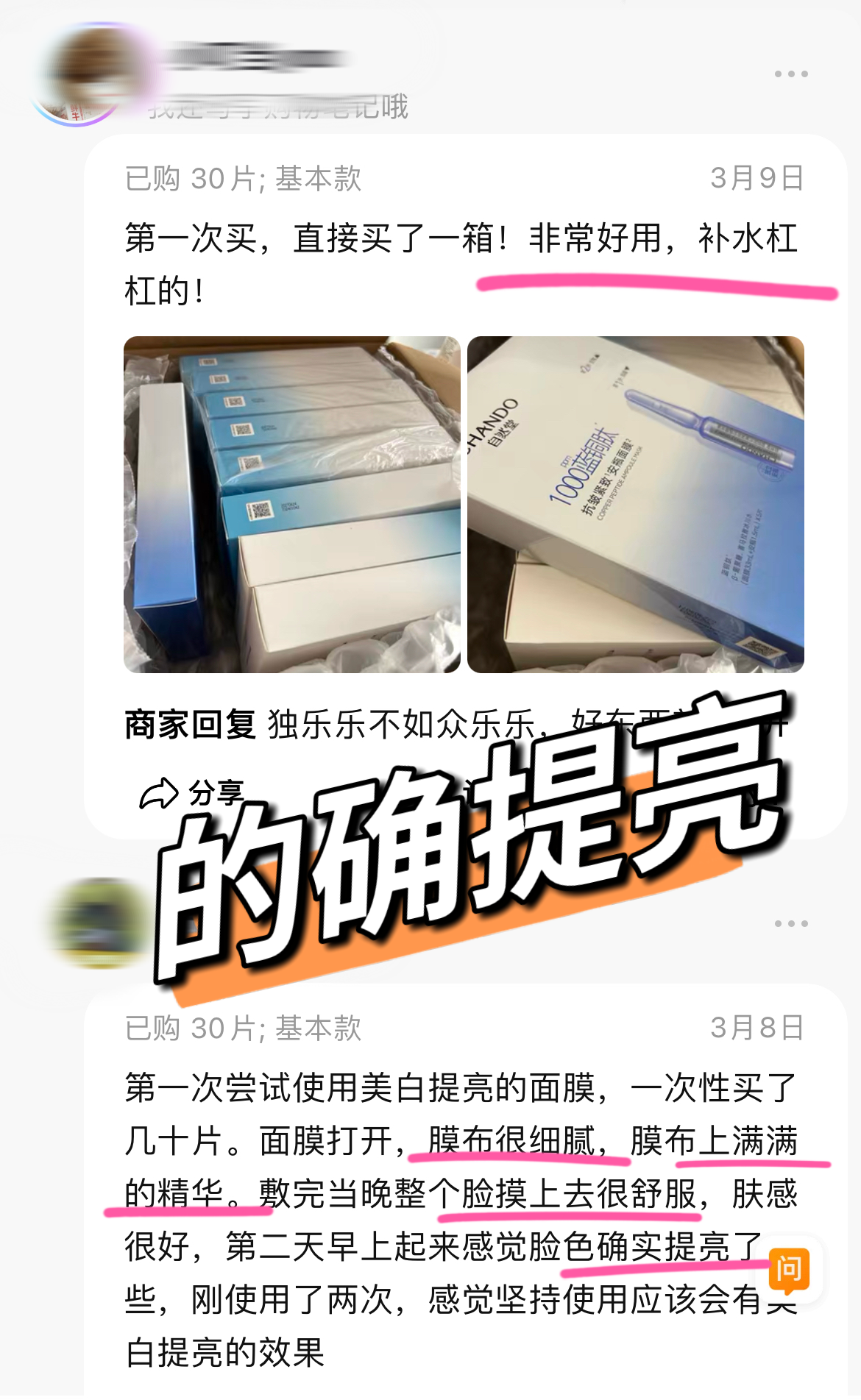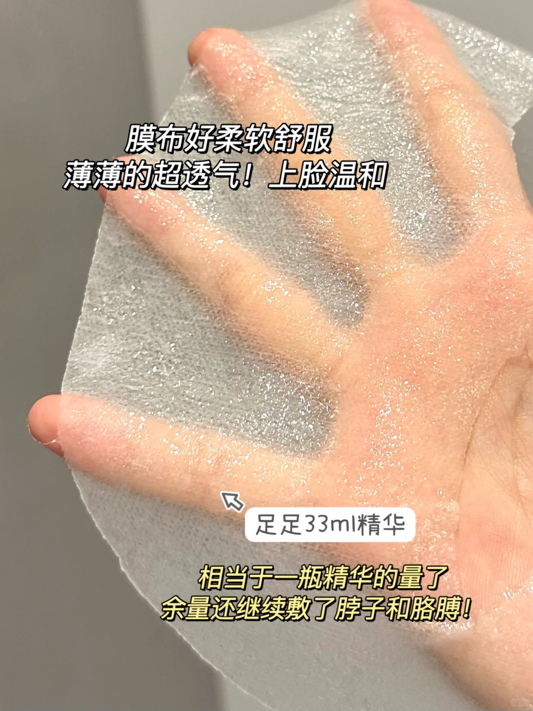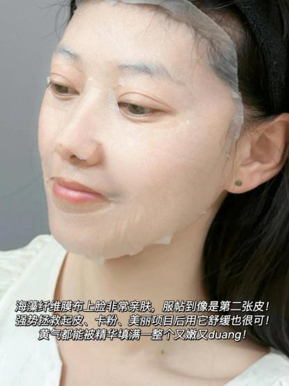 面膜是海藻纤维膜布,柔软贴肤,敷上之后砰砰弹弹!