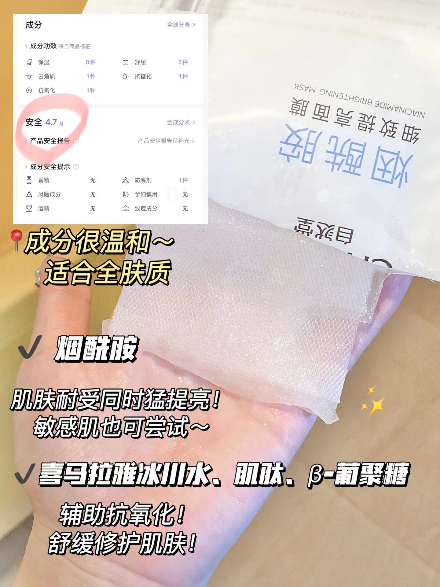 ✔烟酰胺面膜--去黄提亮、熬夜必备款