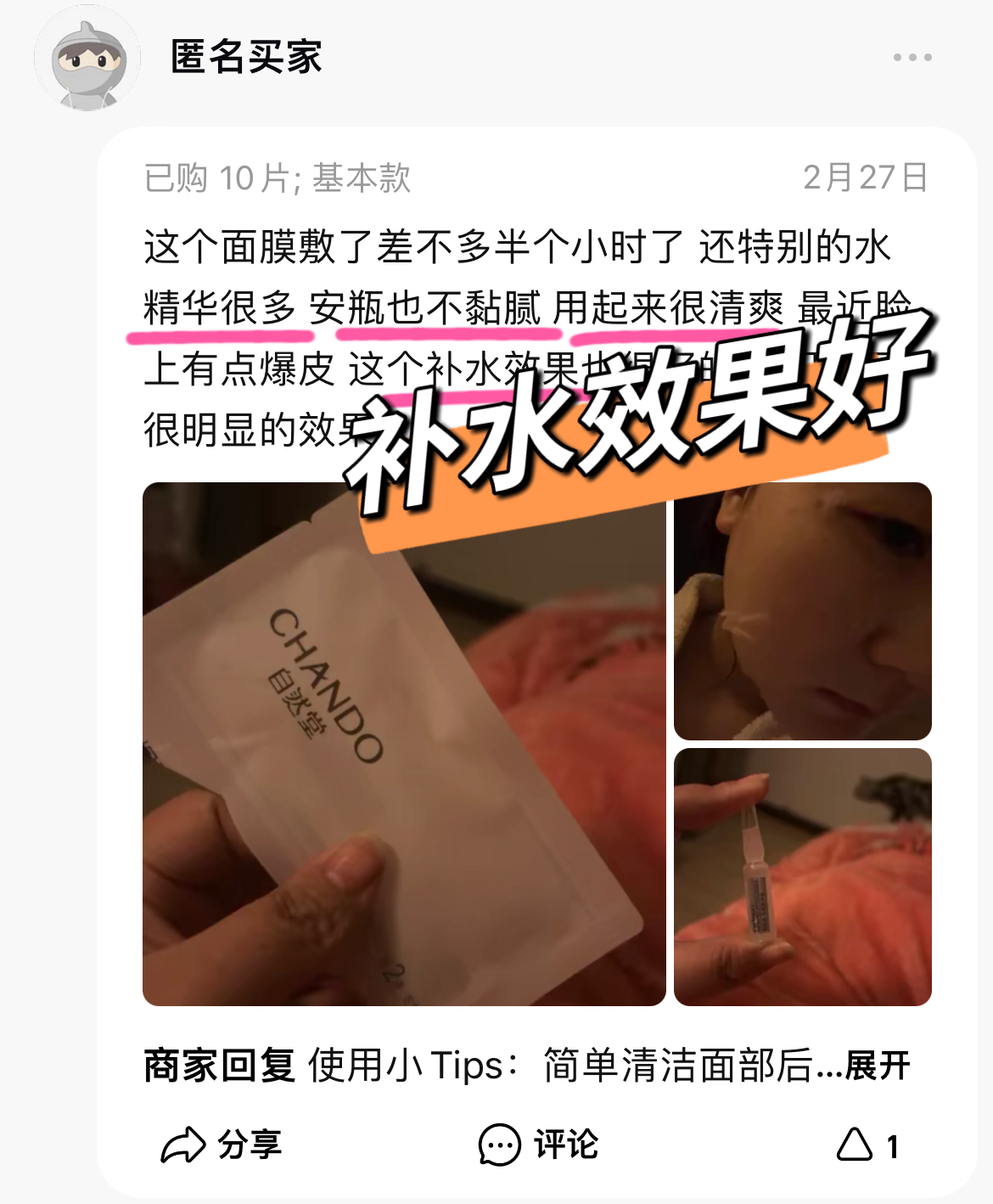 一片面膜能够直接满足美白、抗氧化和补水保湿三种需求