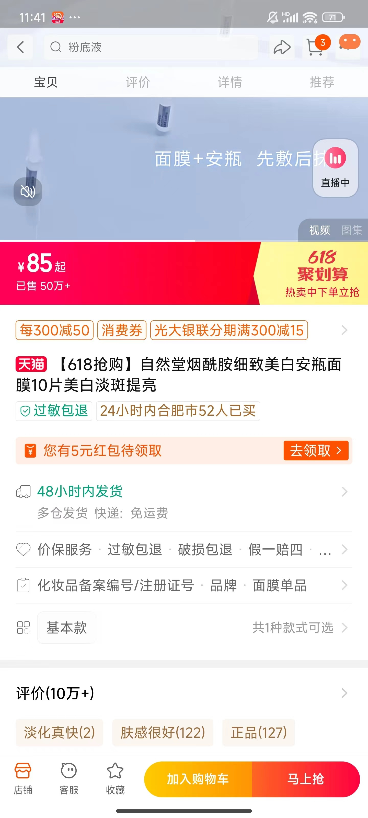 自然堂烟酰胺面膜+自然堂虾青素面膜 携手来袭❥