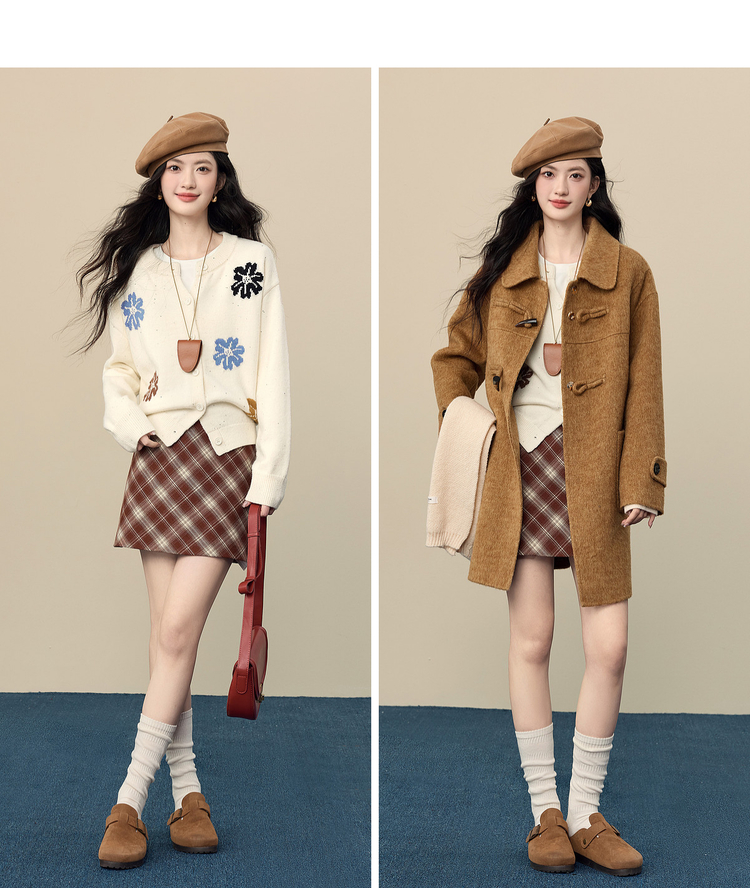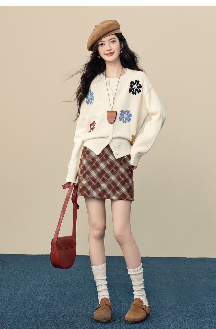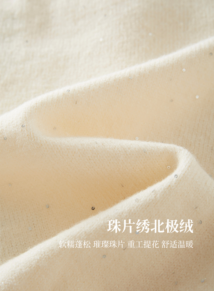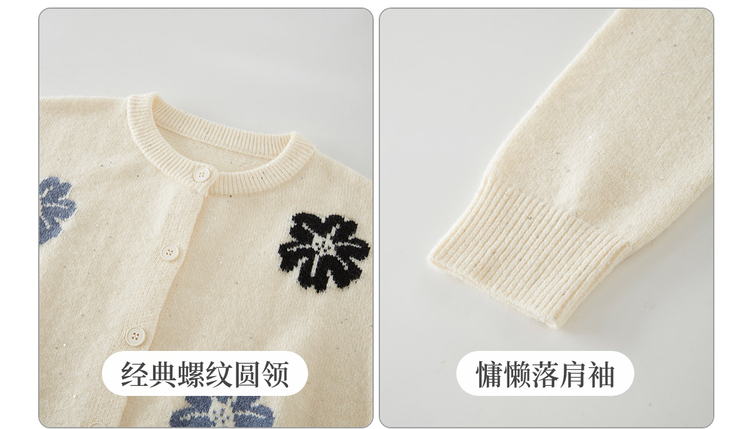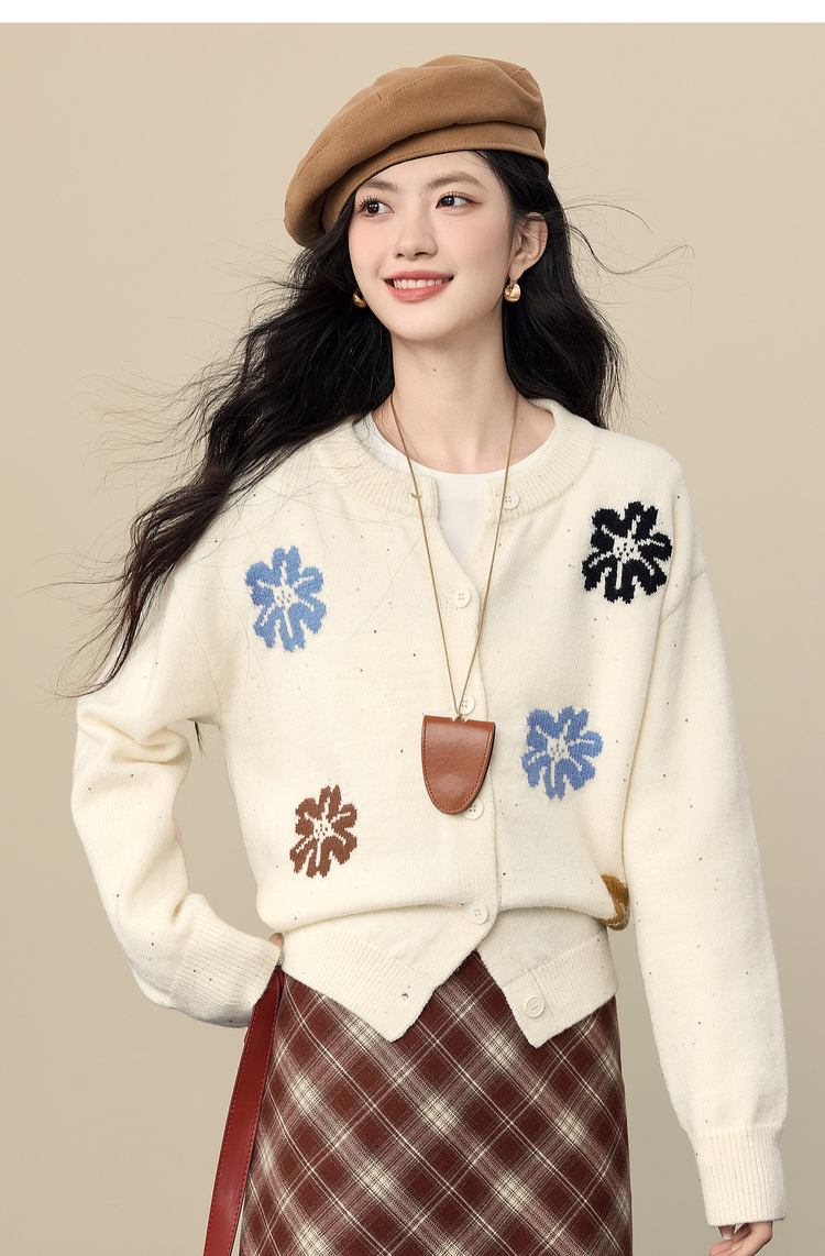 【12/17新品】熙世界独特漂亮珠片绣花朵毛衣女短外套秋冬圆领长袖软糯针织开衫