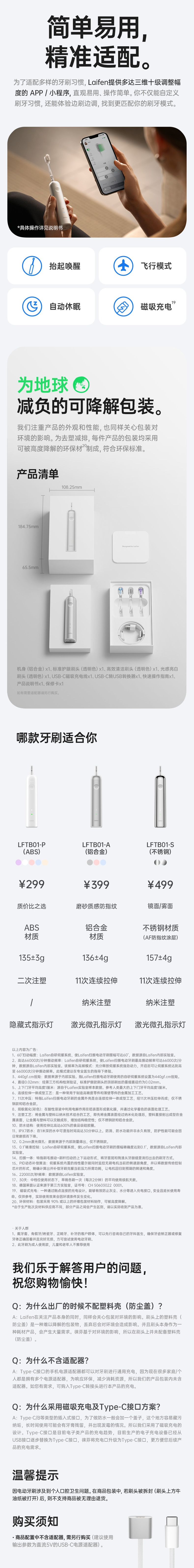 Laifen徕芬扫振电动牙刷 1代 铝合金款 LFTBO1-A 深度清洁护龈牙刷