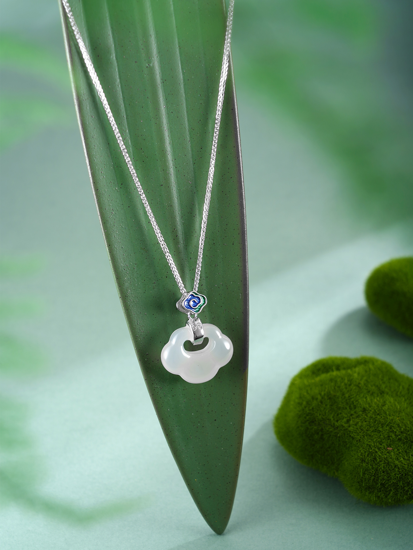 【寓意】:祥云锁吊坠,融合珐琅祥云图案,成就平静温和的一幅疗愈之境。整体温润耐看,寓意不染尘埃,纳吉呈祥。