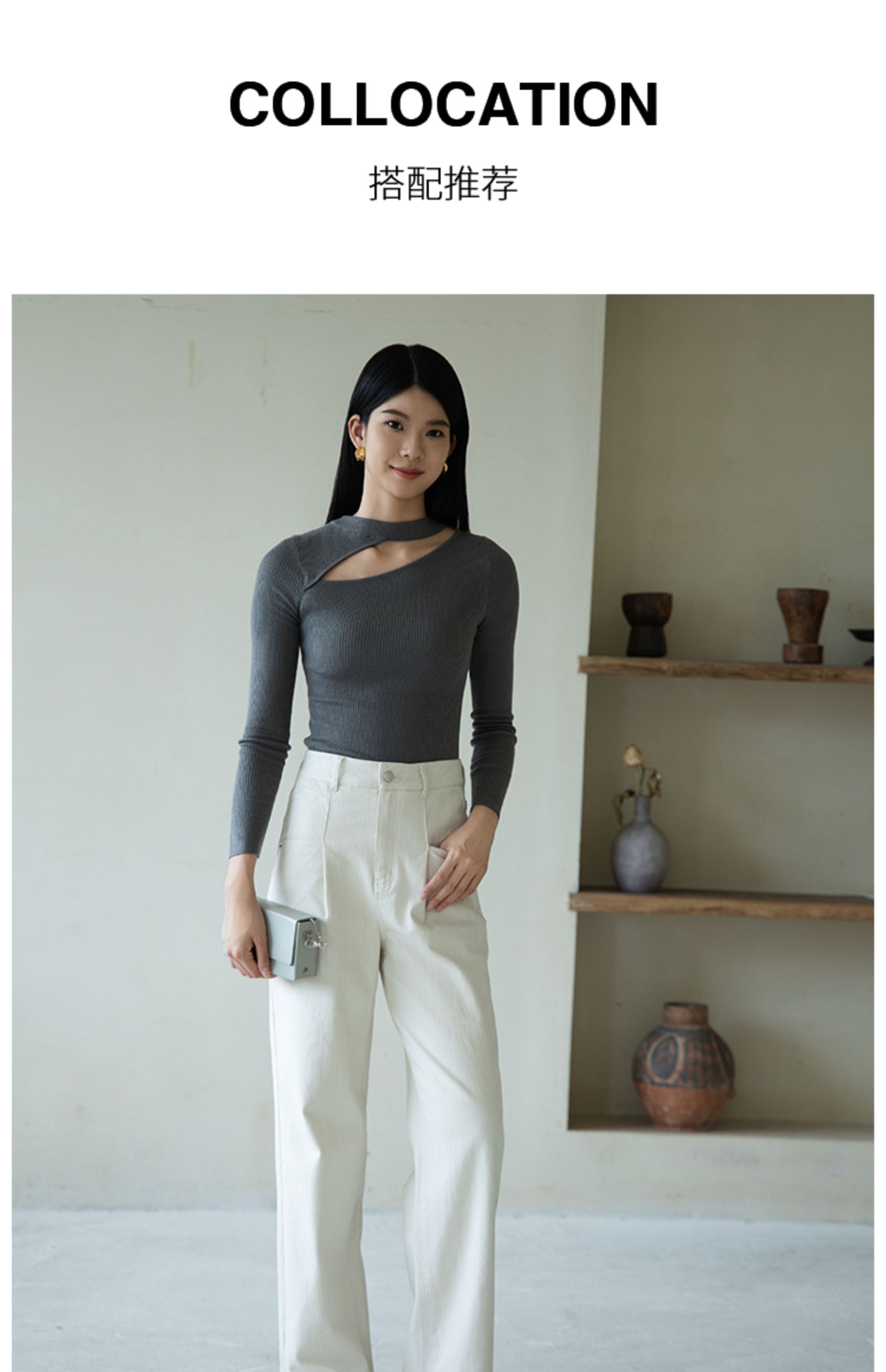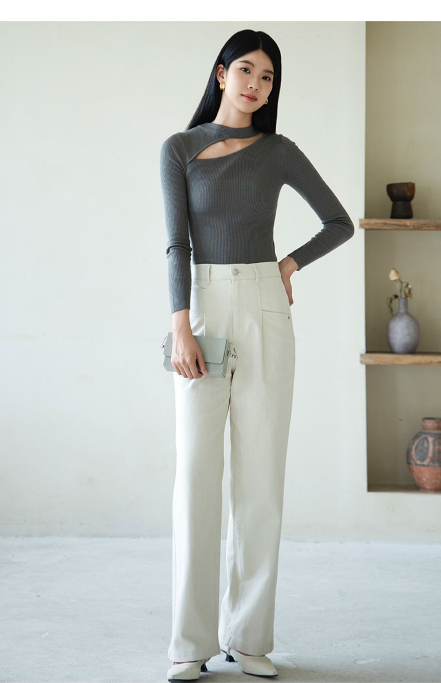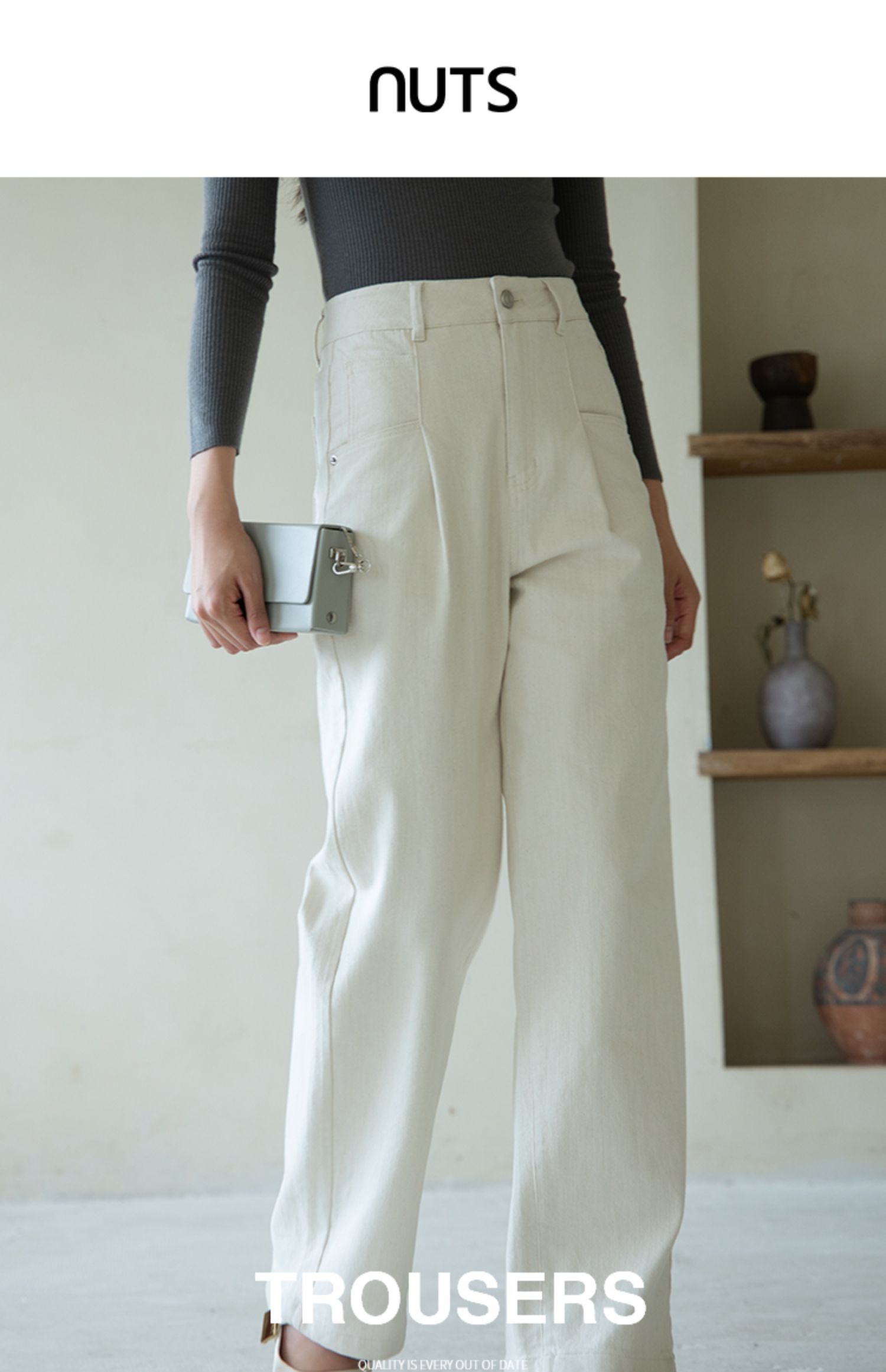 NUTS2023春秋季新款复古休闲直筒长裤女简约设计感宽松4340705A1