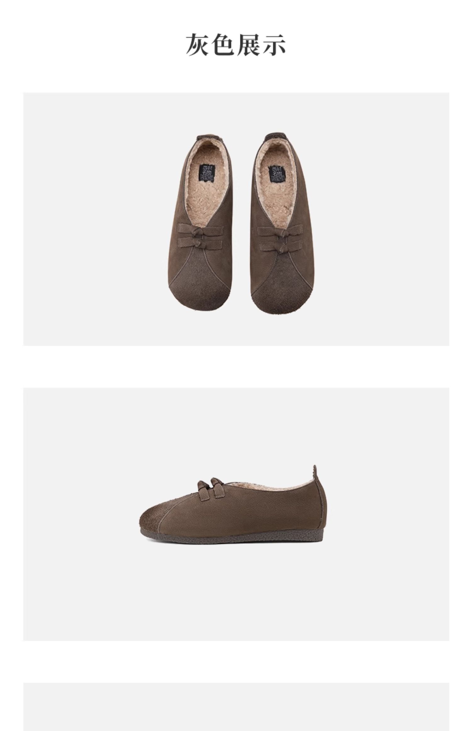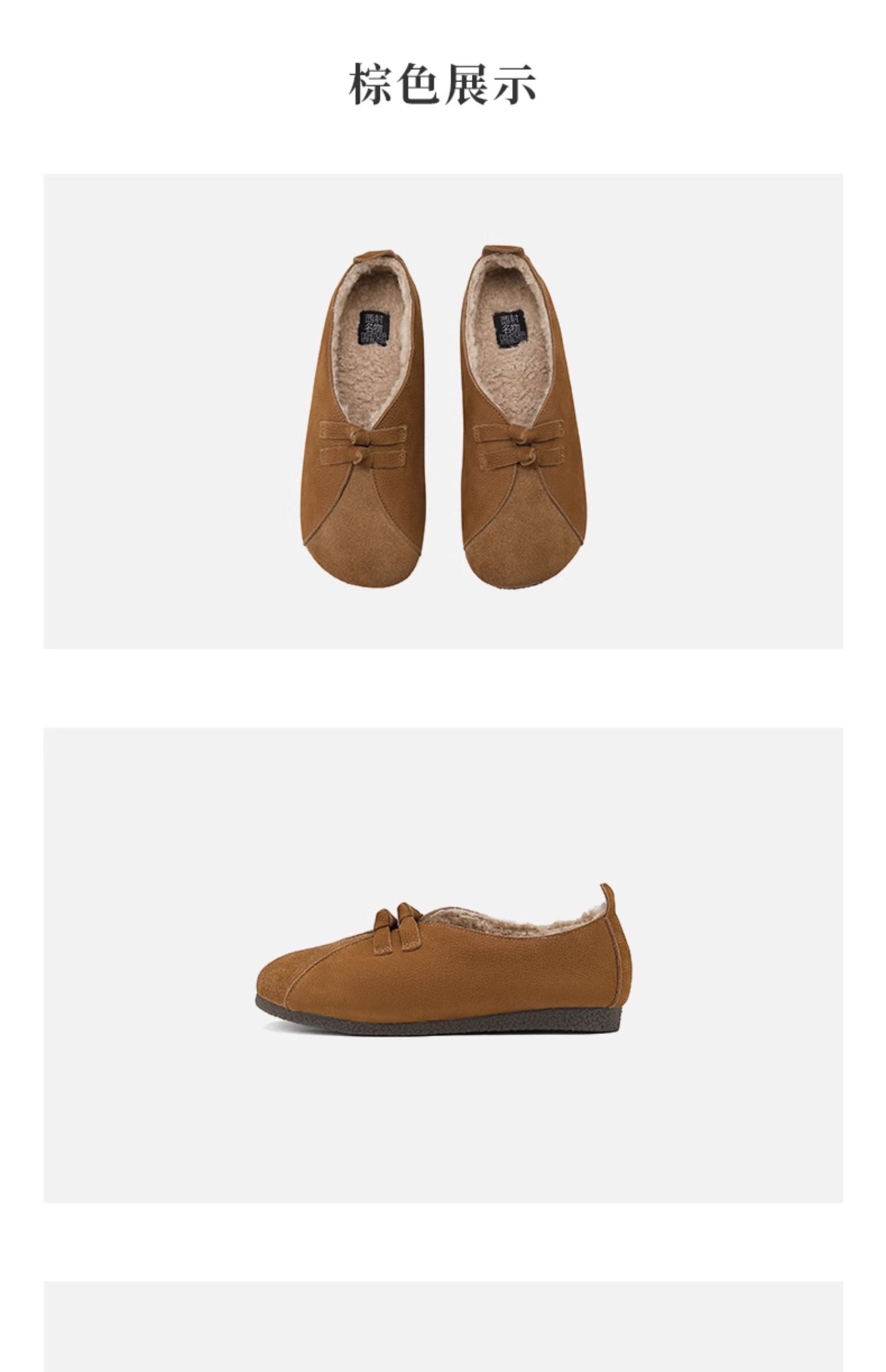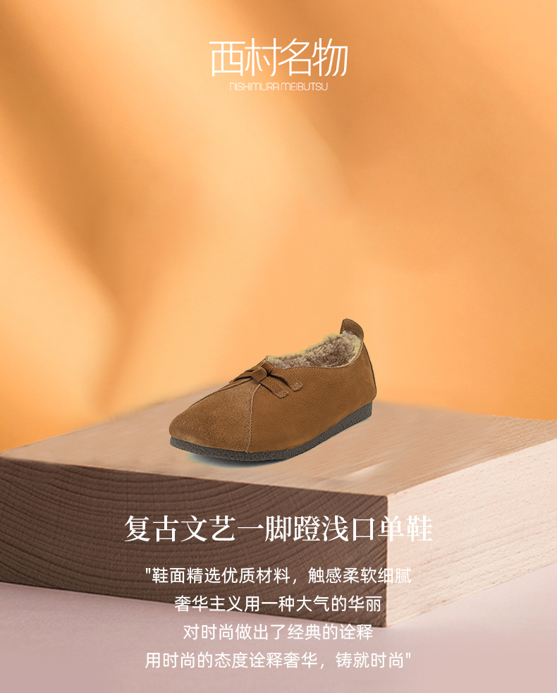 西村名物2024冬季新款复古真皮文艺软底加绒一脚蹬毛毛鞋女X24DM47161