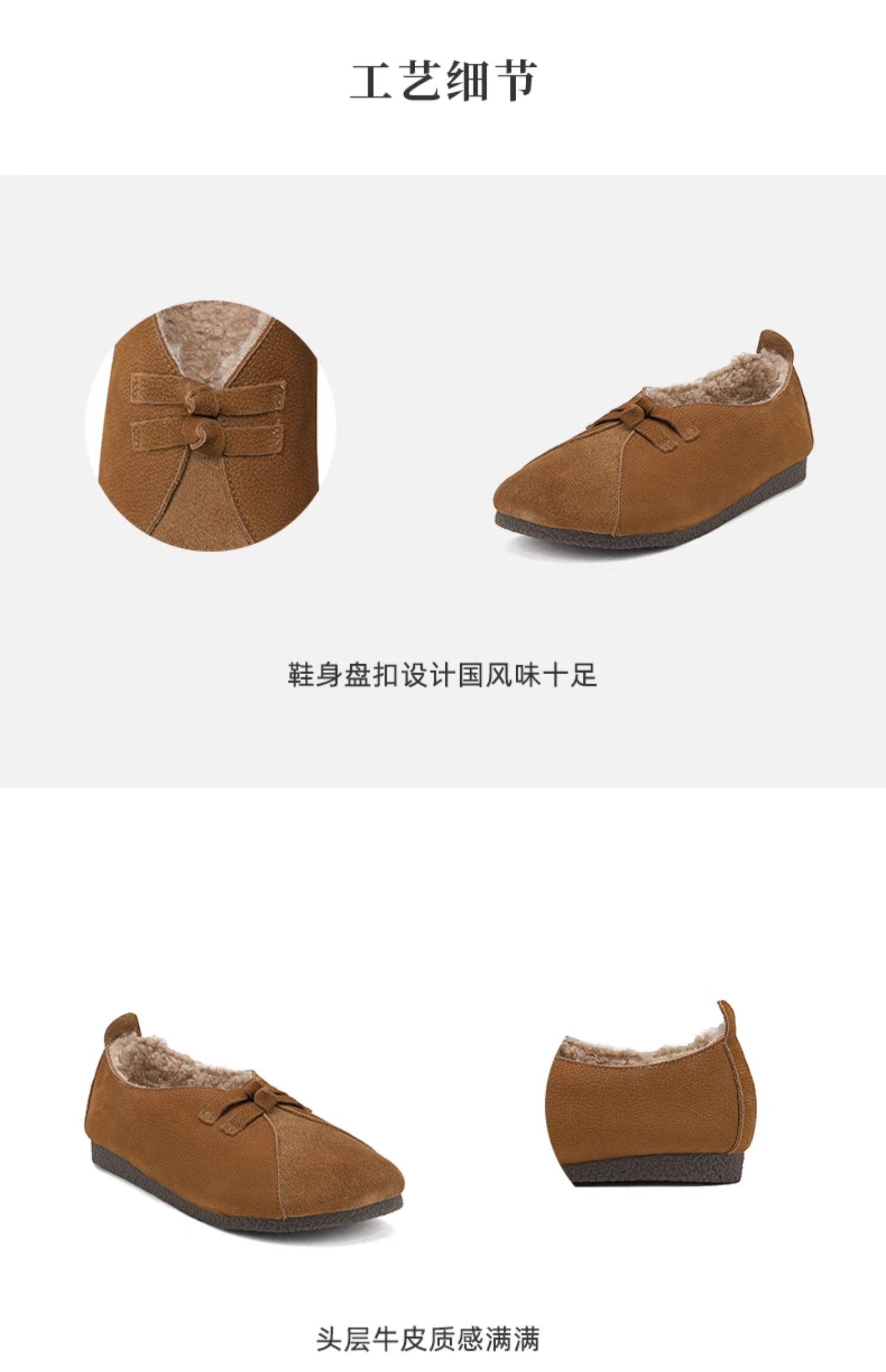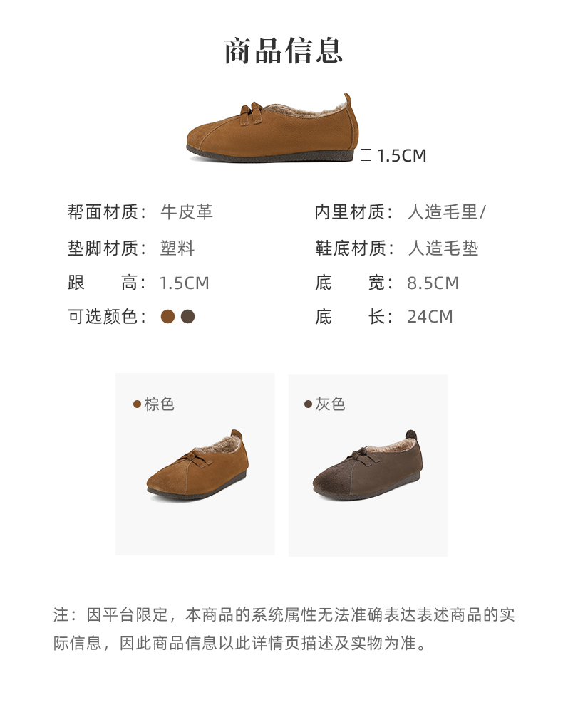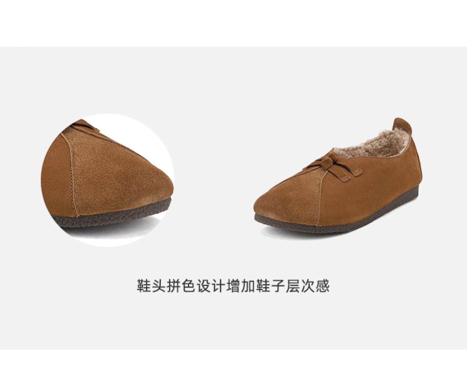 西村名物2024冬季新款复古真皮文艺软底加绒一脚蹬毛毛鞋女X24DM47161